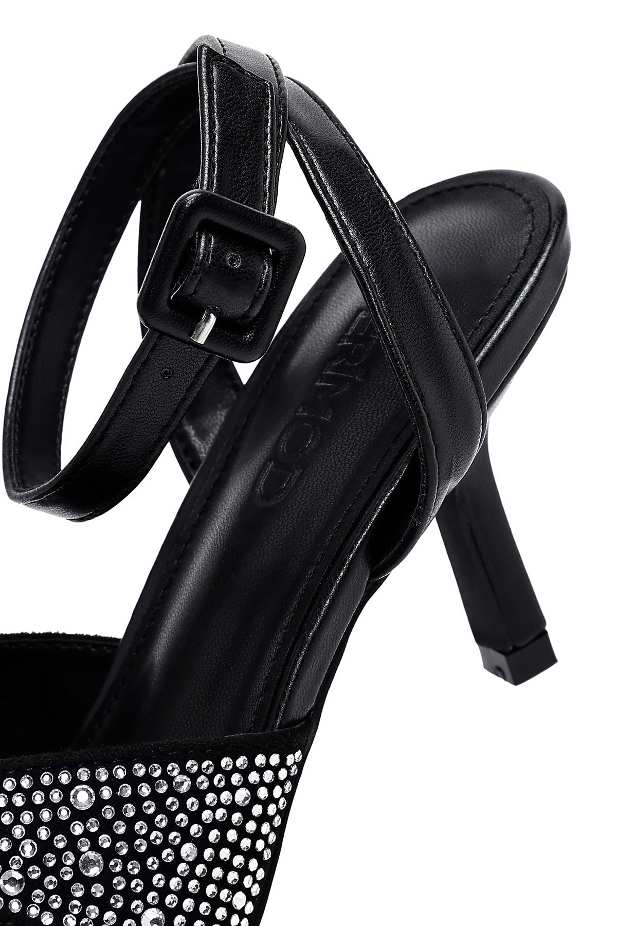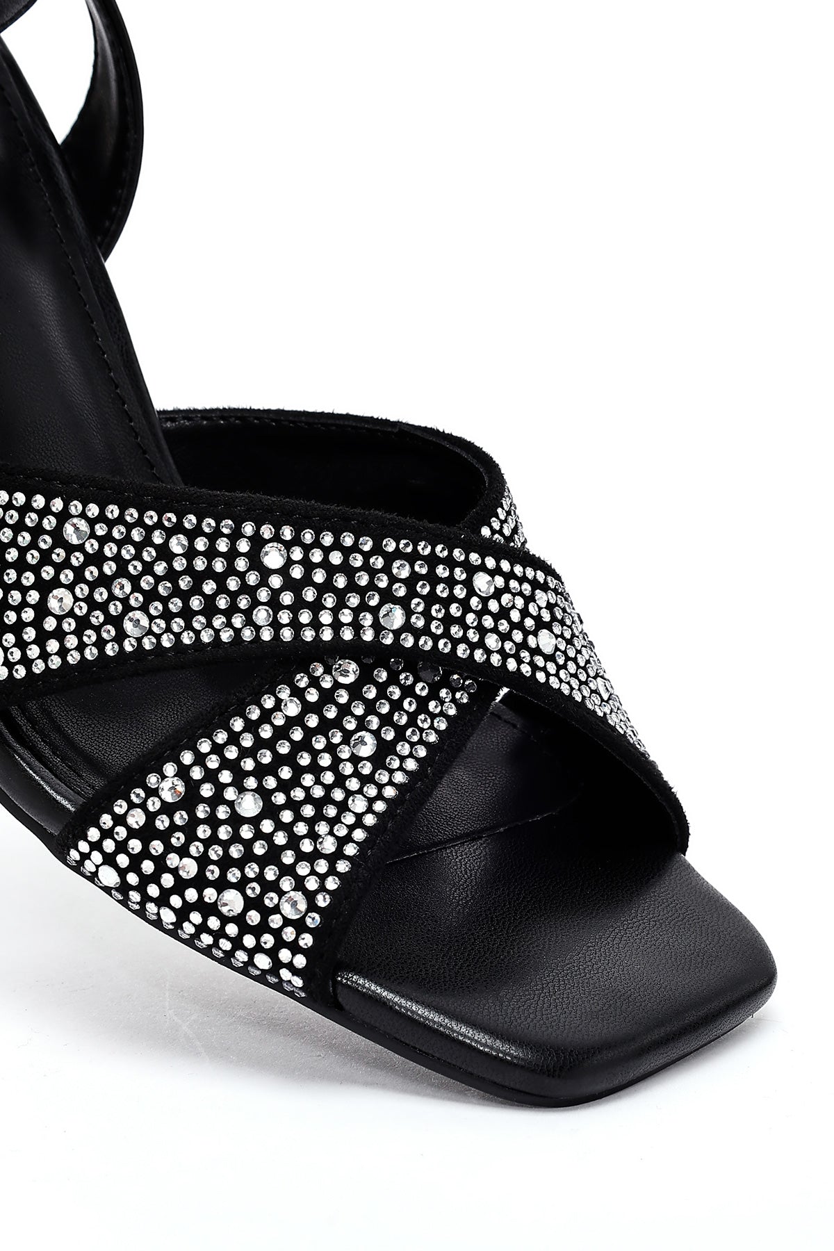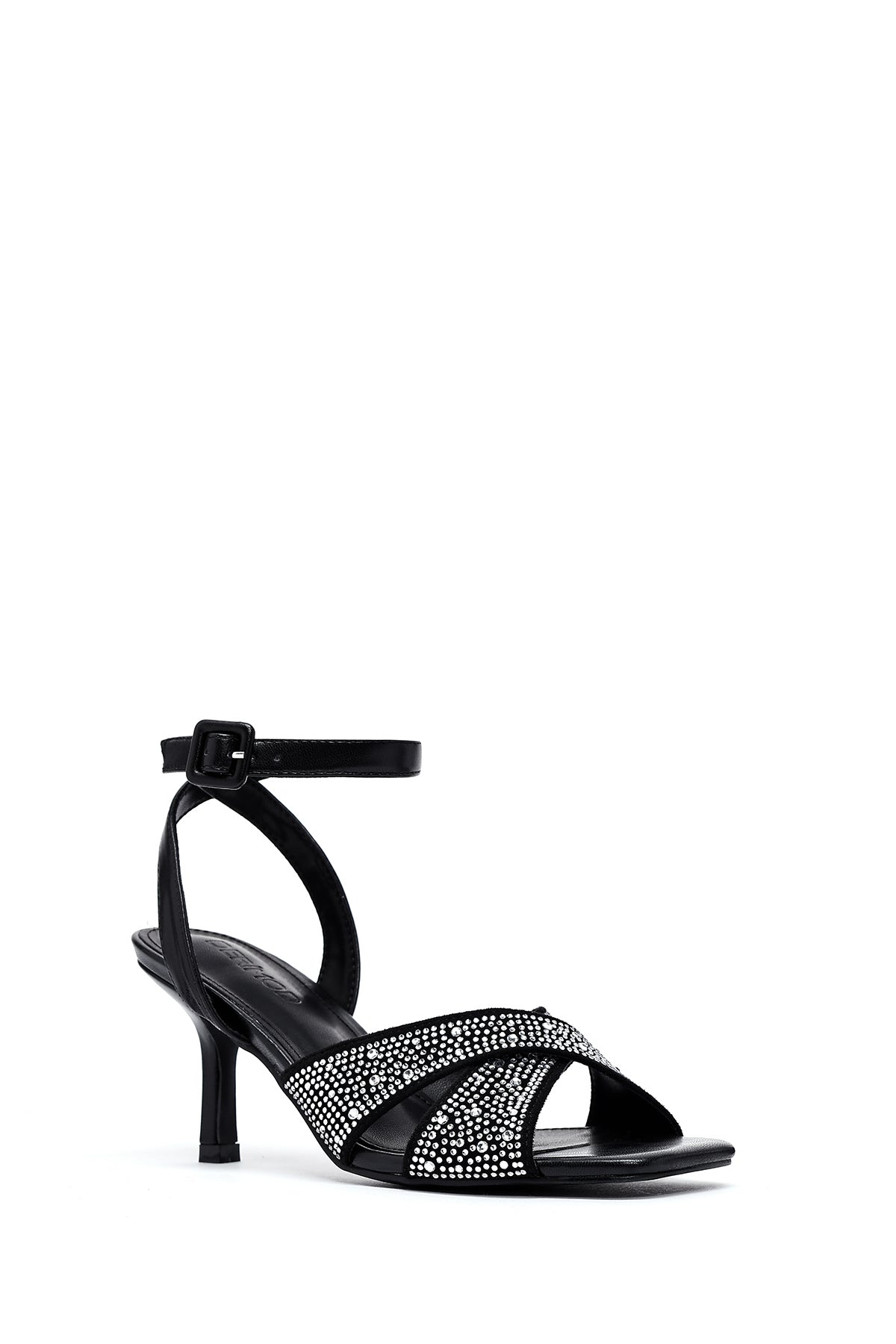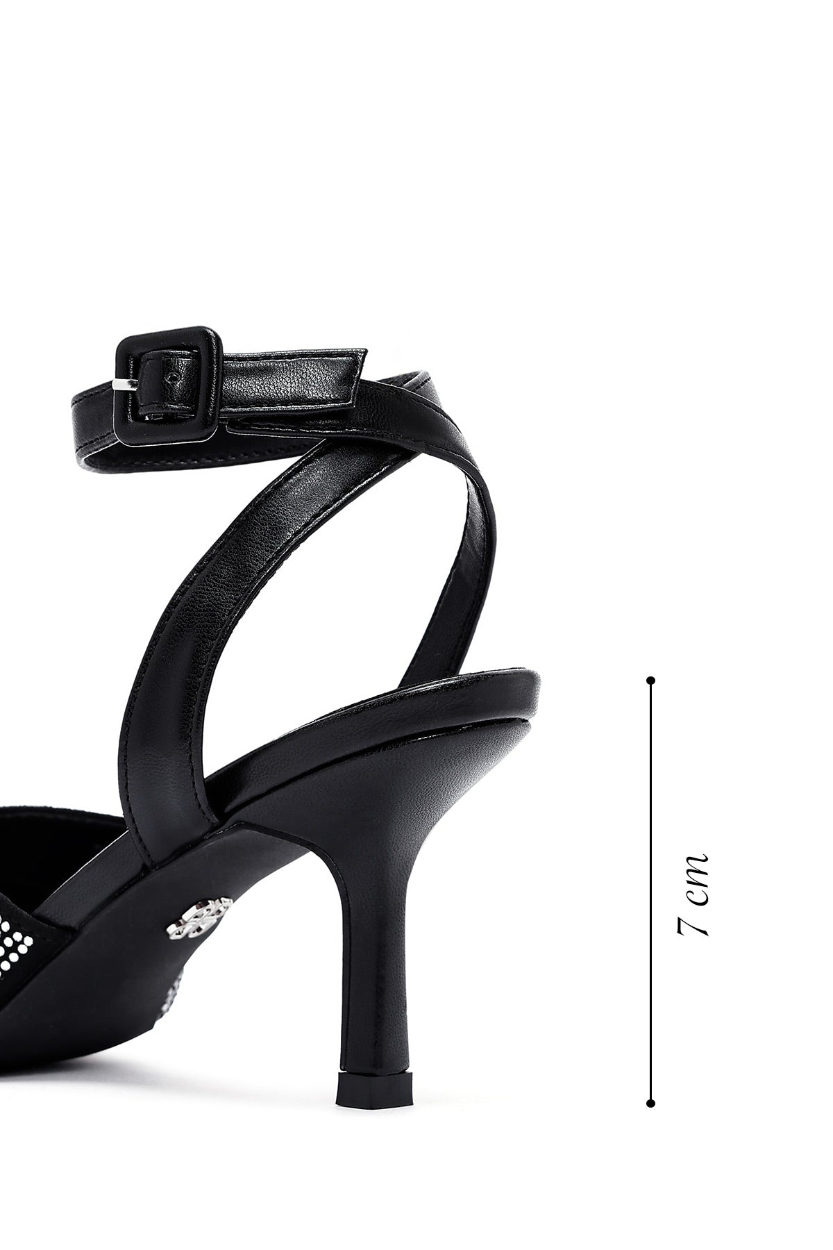 Kadın Siyah Bilekten Tokalı Taşlı İnce Topuklu Sandalet
