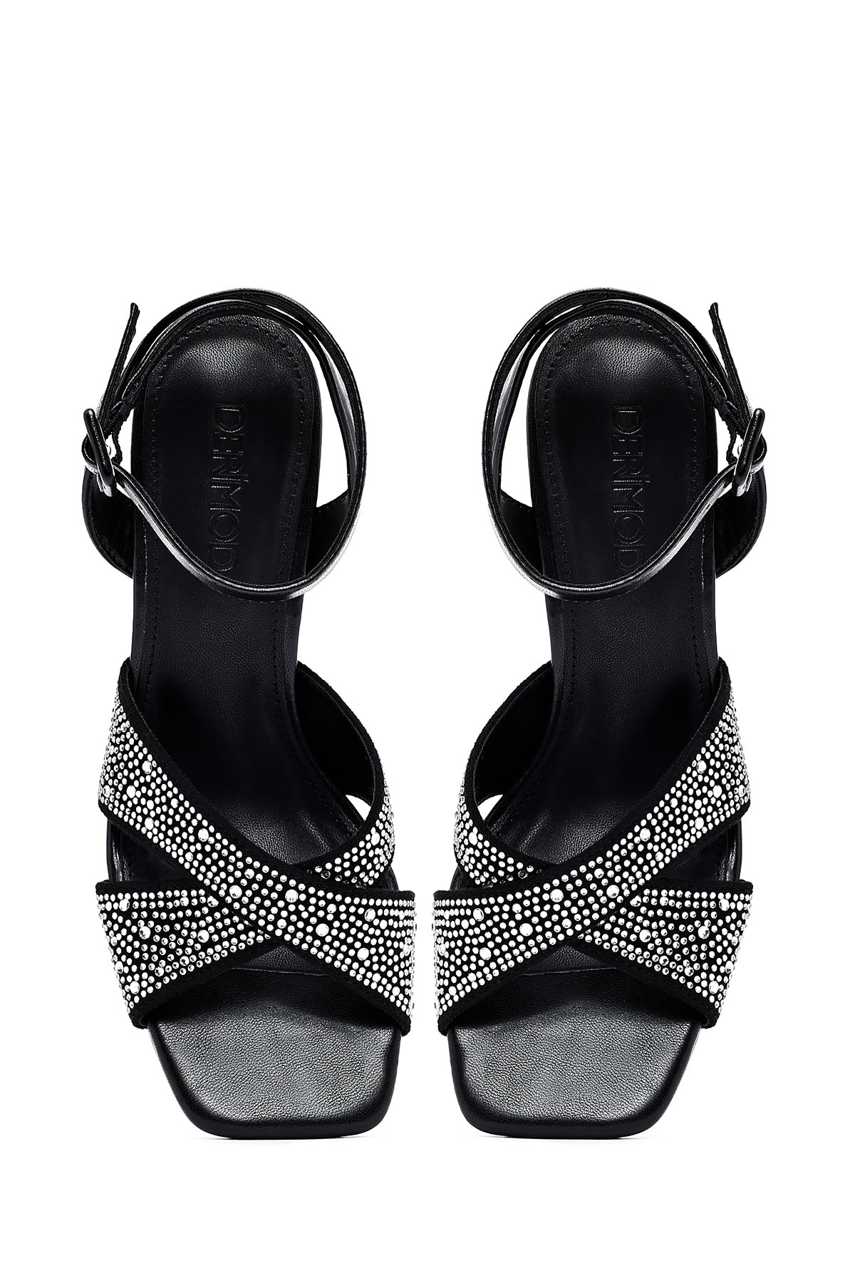 صندل زنانه مشکی نگیندار پاشنهنازک بنددار دری مد