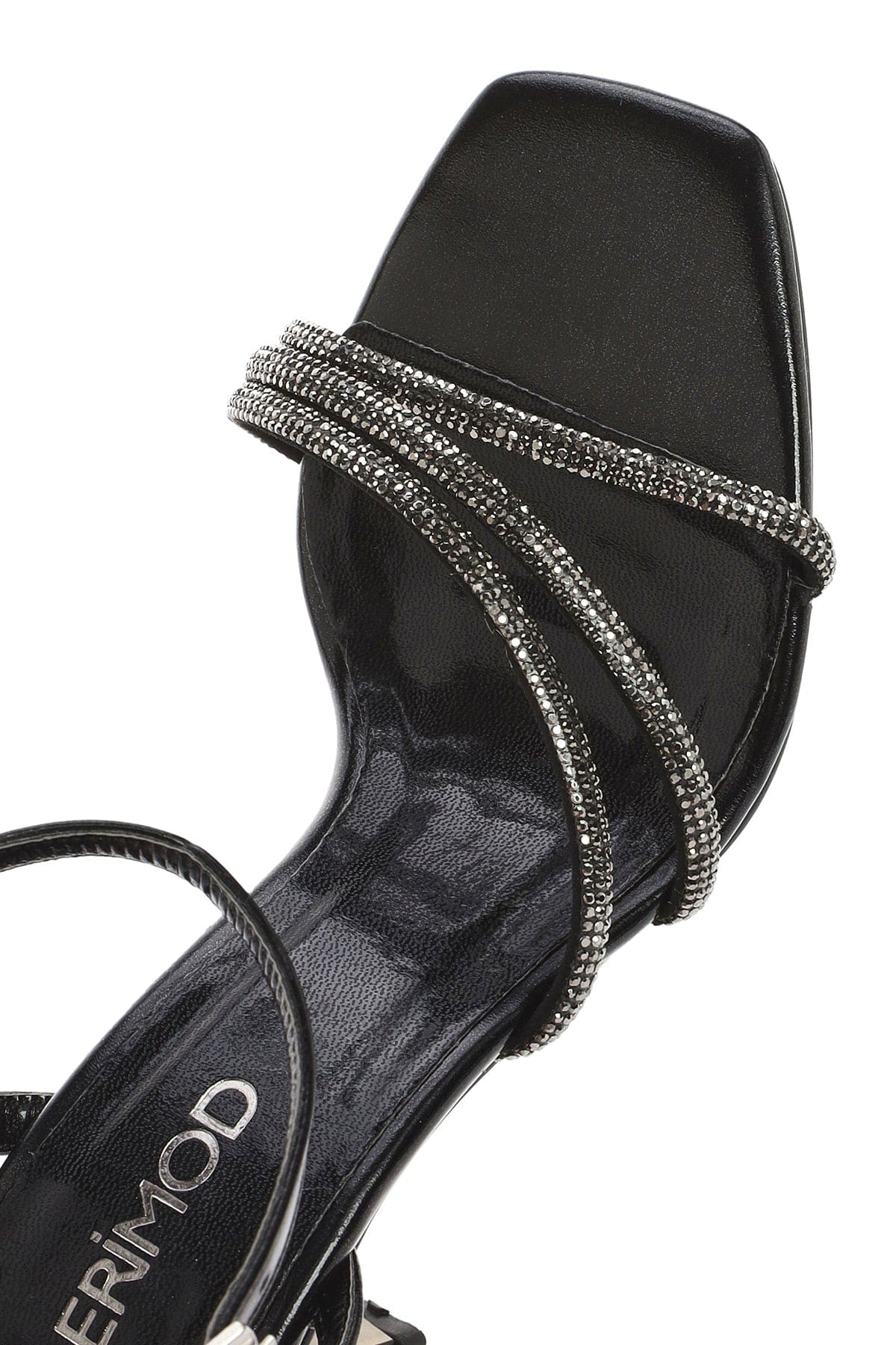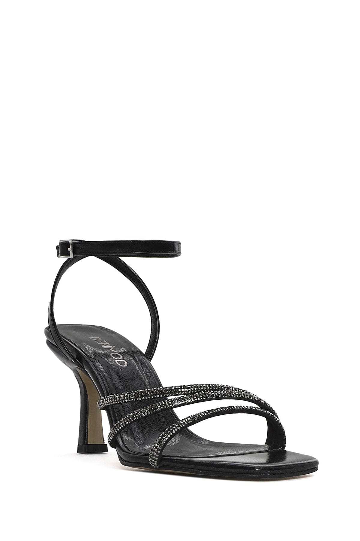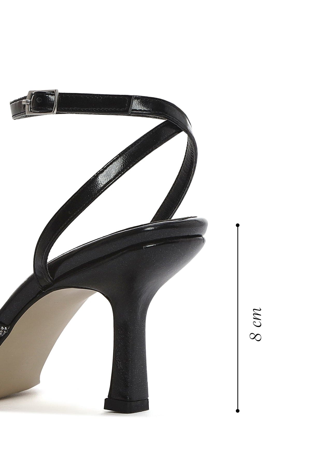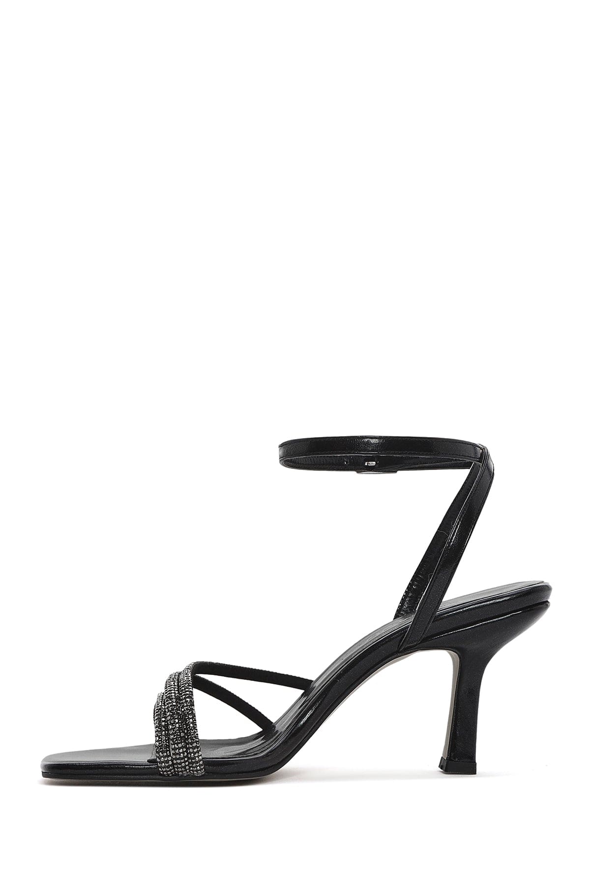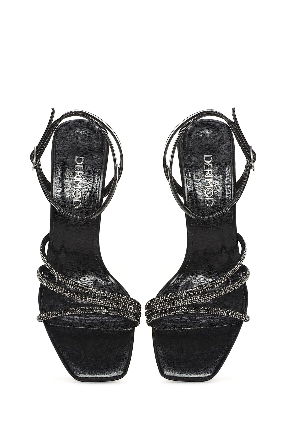 Kadın Siyah Bilekten Bantlı Taşlı İnce Topuklu Sandalet
