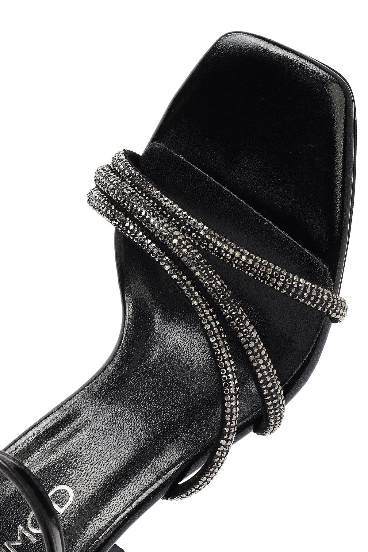 صندل زنانه مشکی نگیندار بنددار پاشنهنازک دری مد