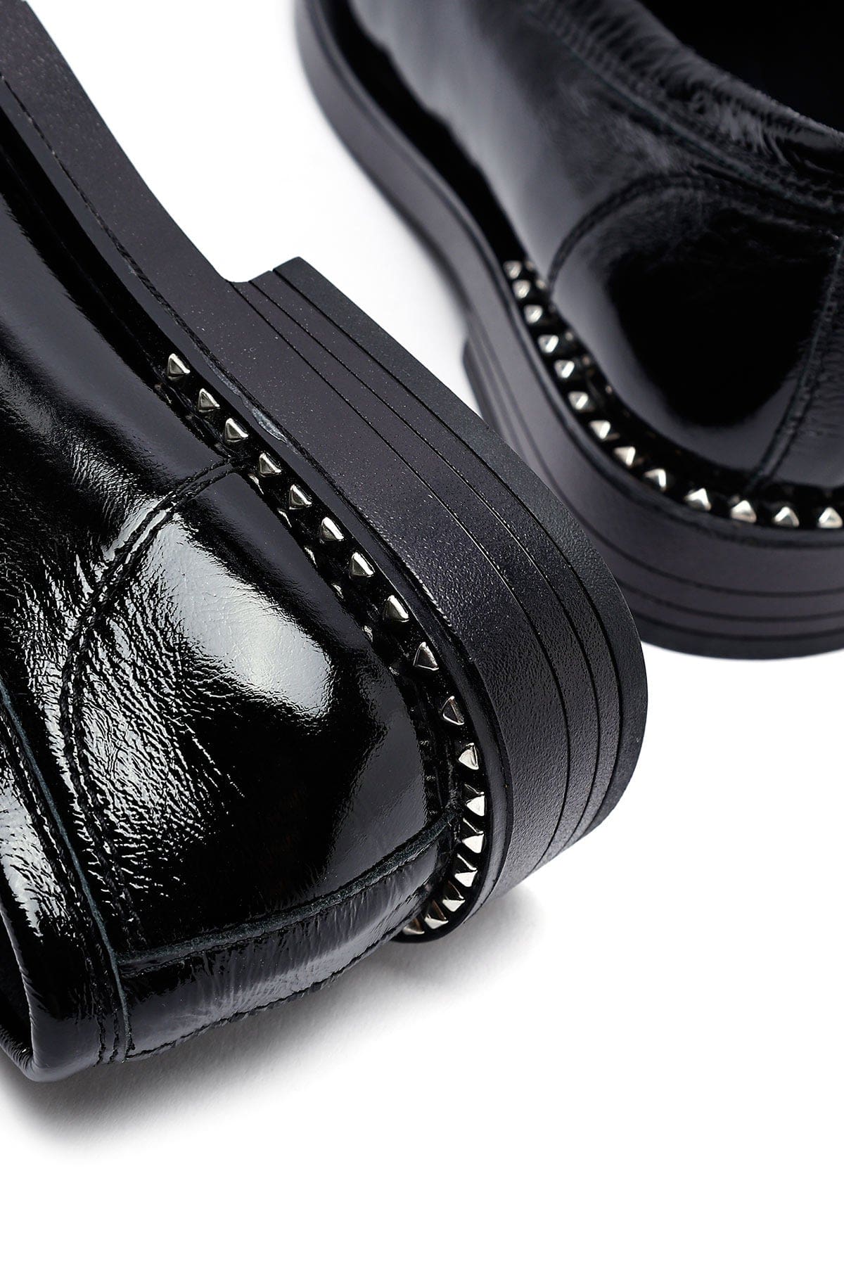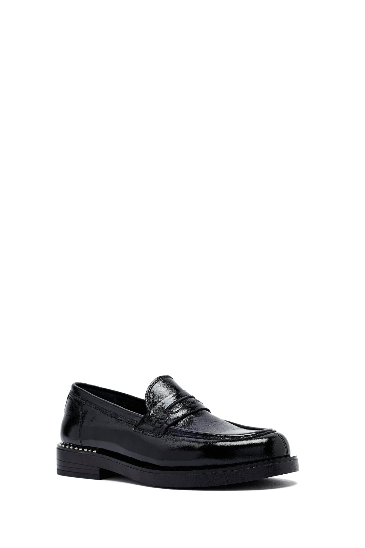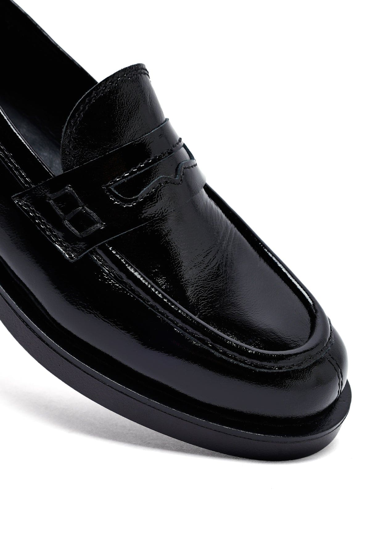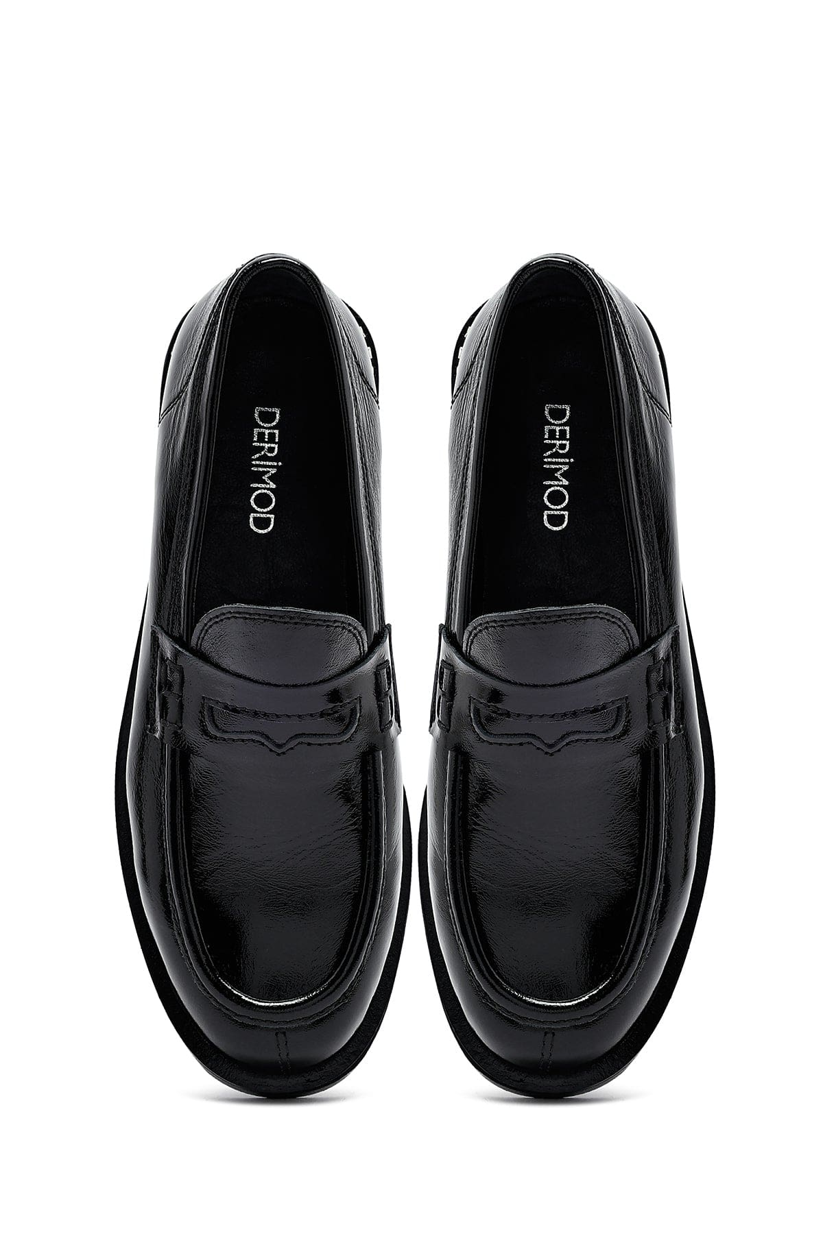 Kadın Siyah Rugan Deri Maskülen Loafer