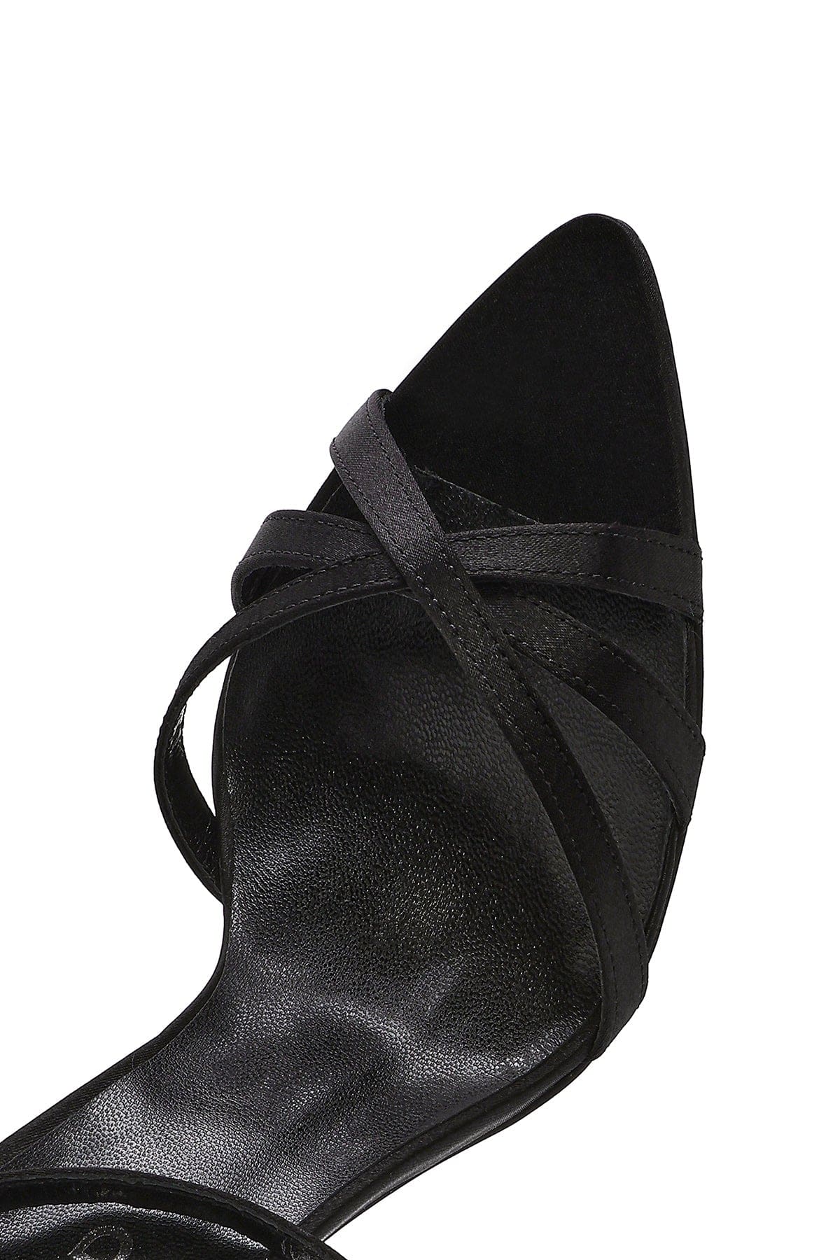 صندل زنانه مشکی چرم و ساتن زنجیردار پاشنهنازک بلند بنددار دری مد