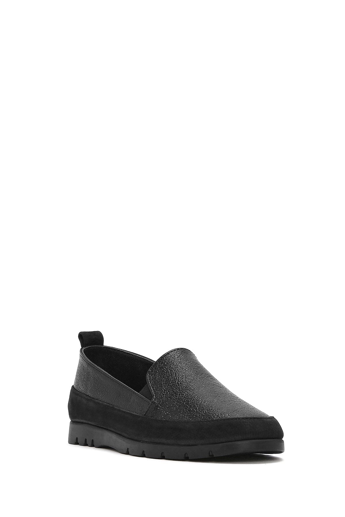 کفش لوفر زنانه چرم مشکی براق راحتی دری مد
