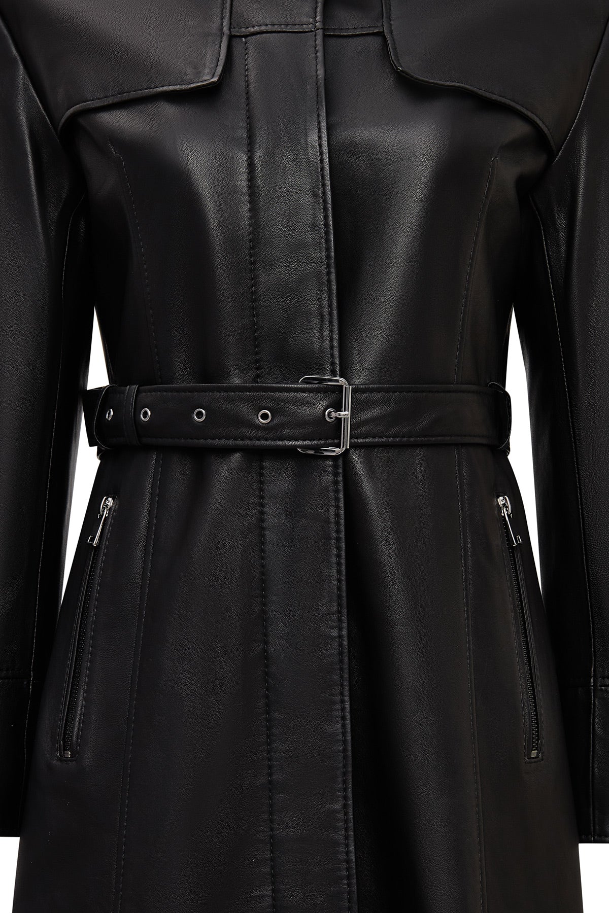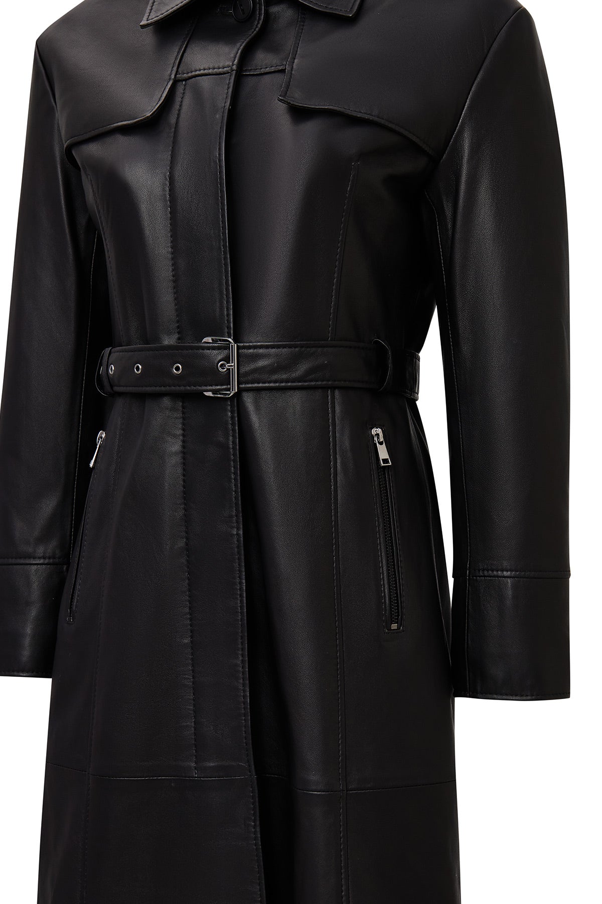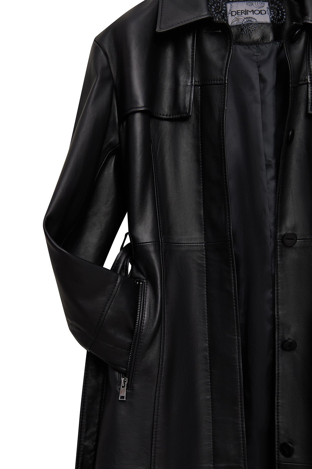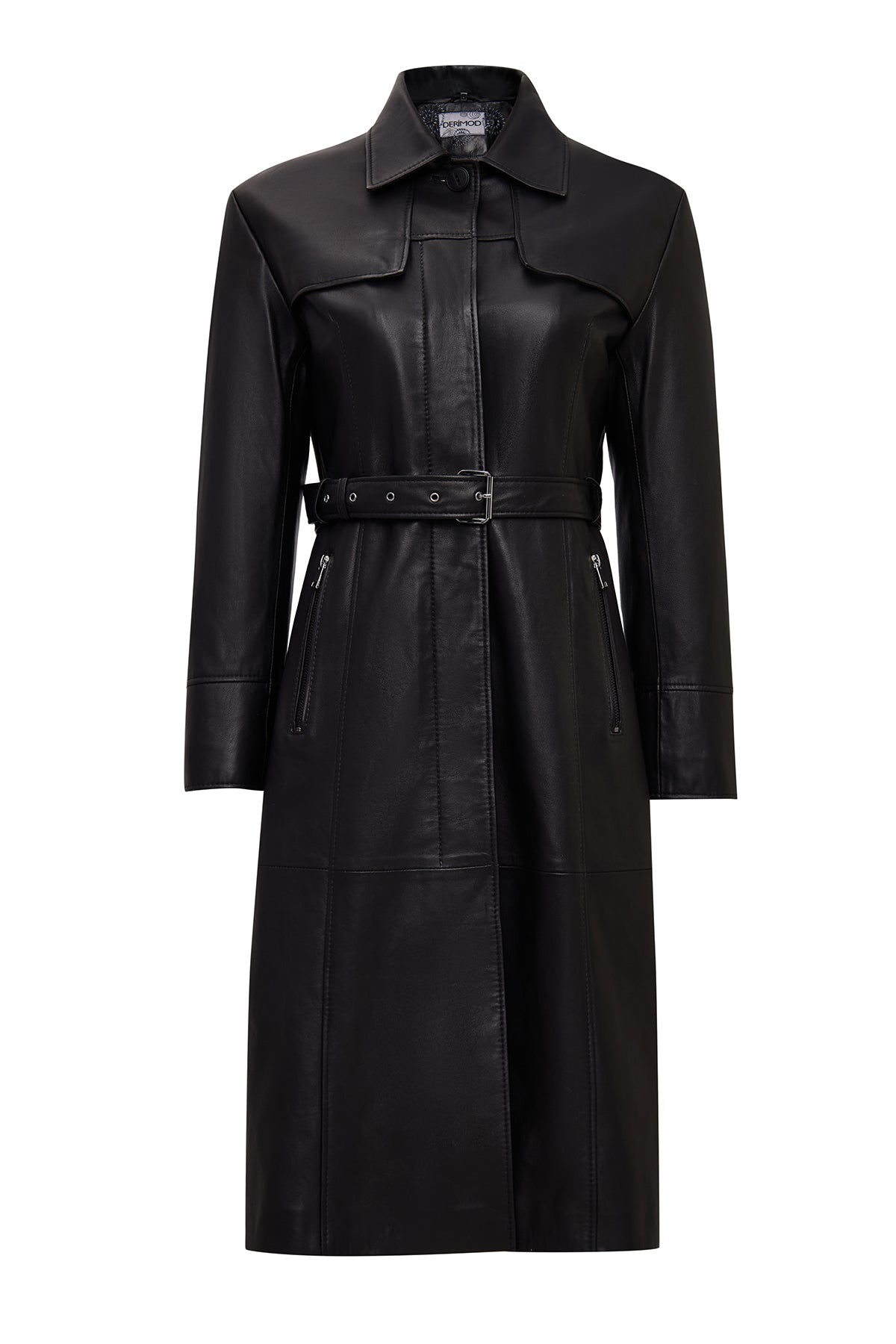 پالتو چرمی زنانه مشکی یقه پیراهنی Betina دری مد