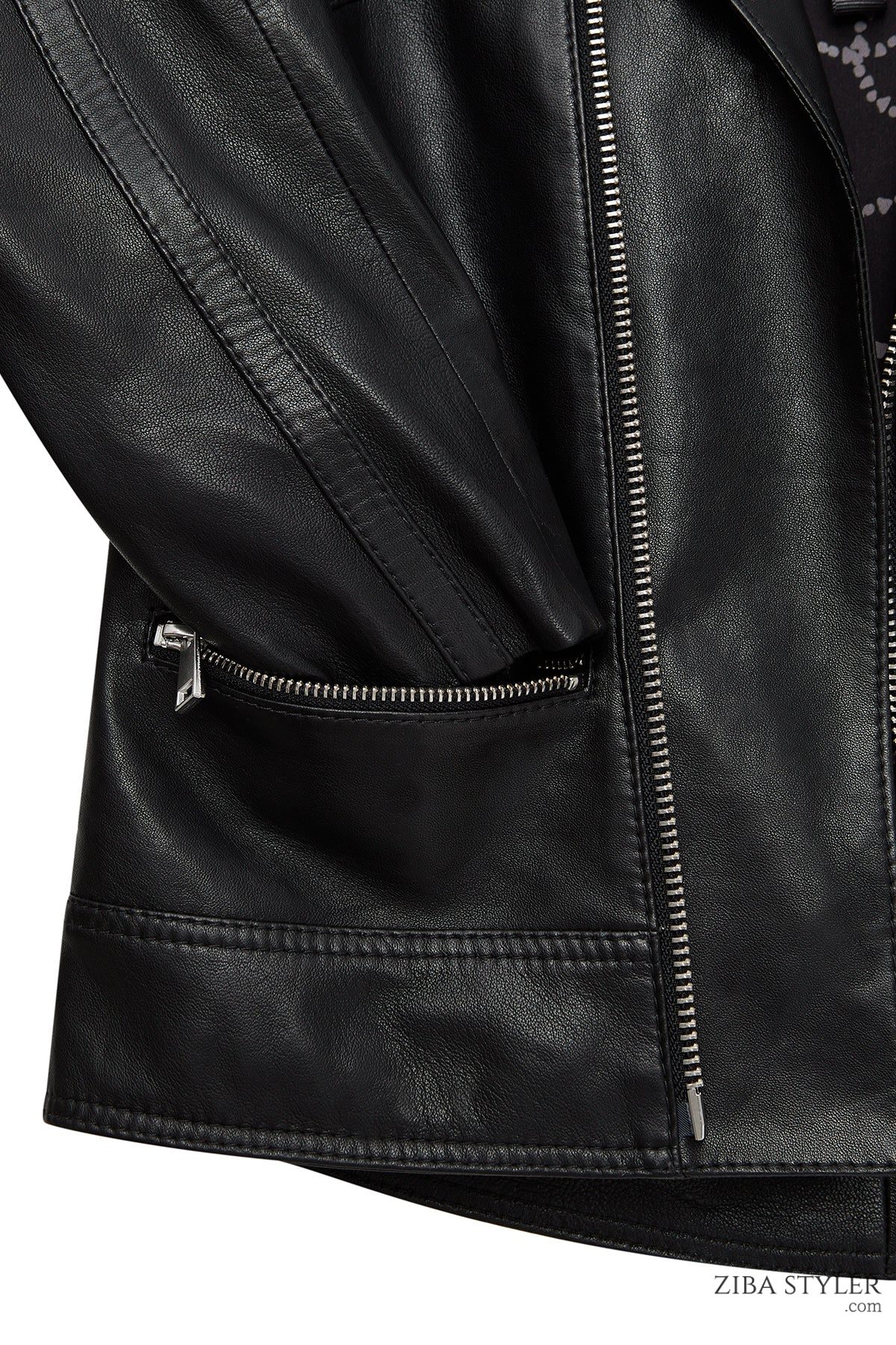 کت چرمی زنانه مشکی بایکر کوتاه Nova دری مد