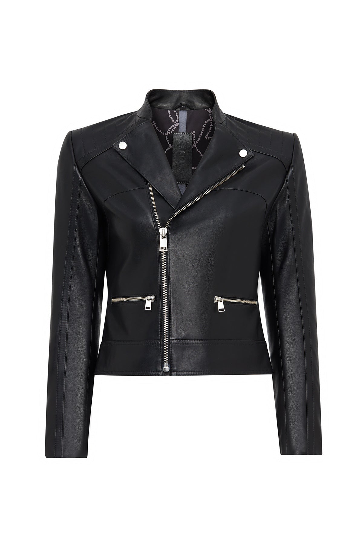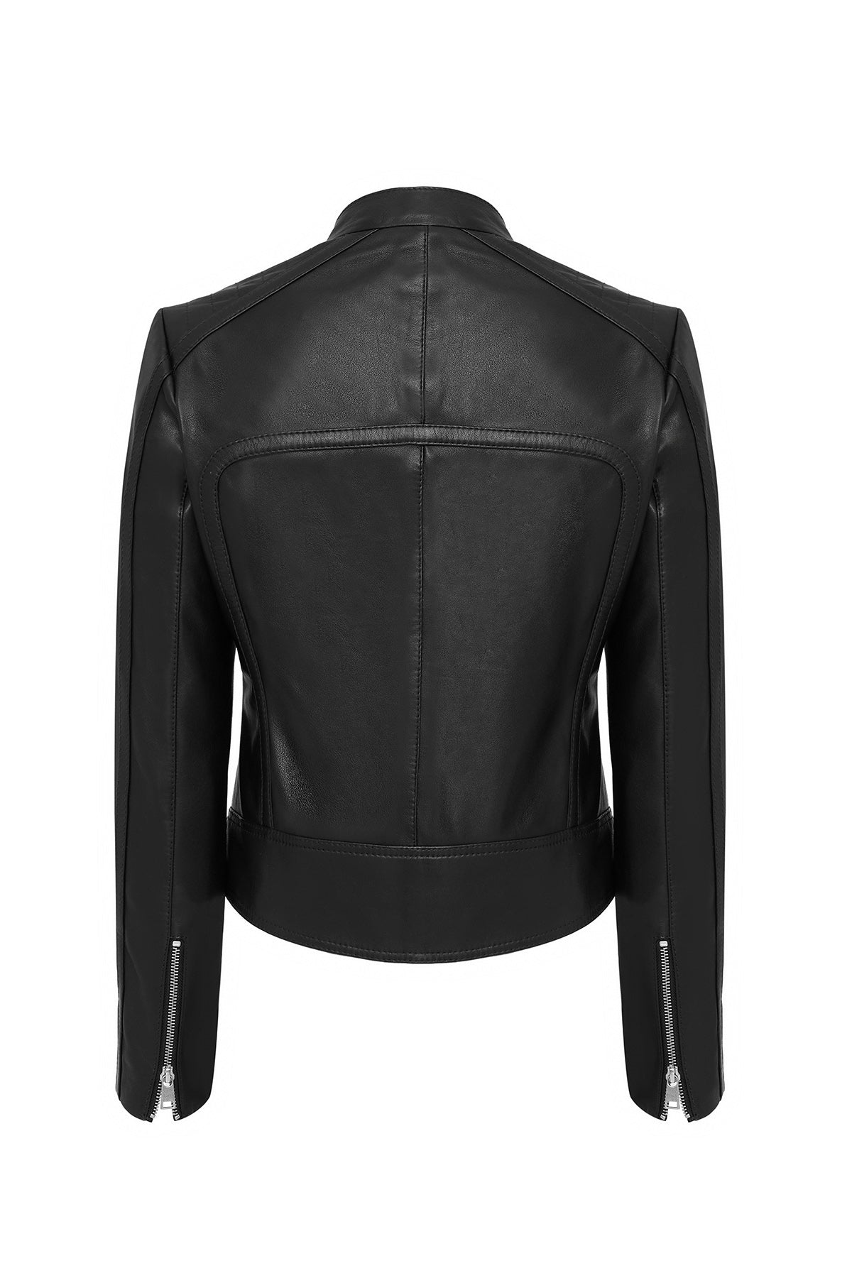 Nova Kadın Siyah Biker Kısa Deri Ceket