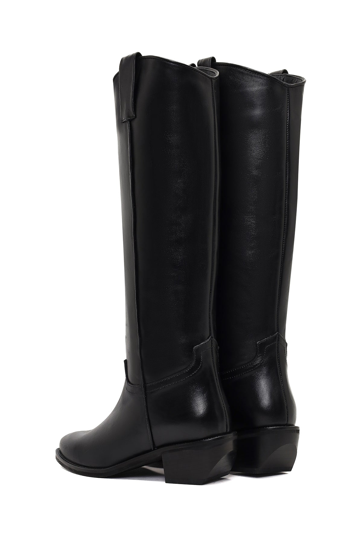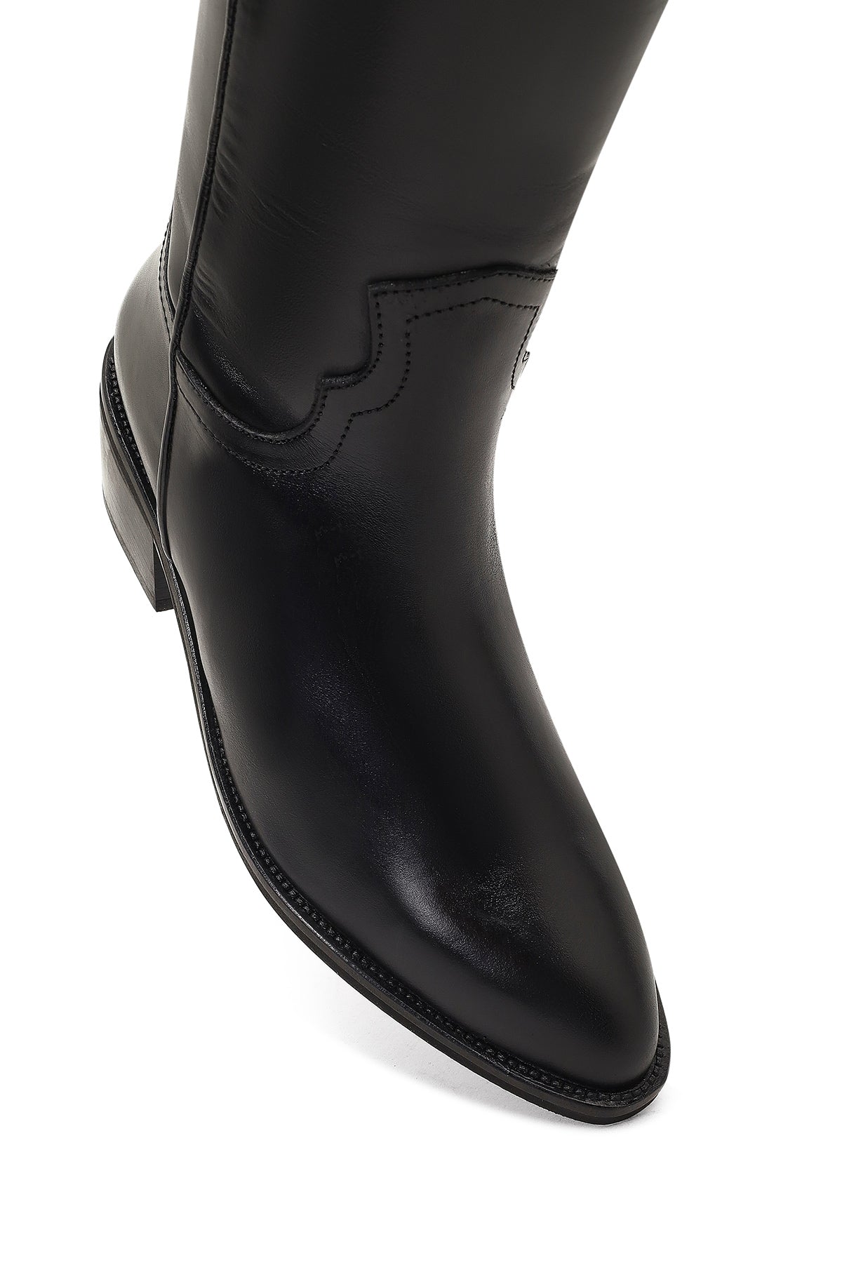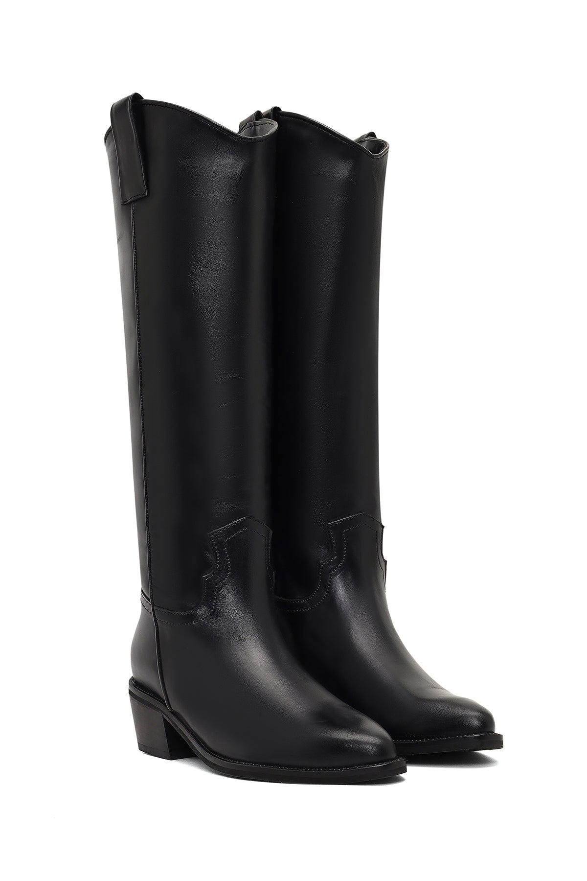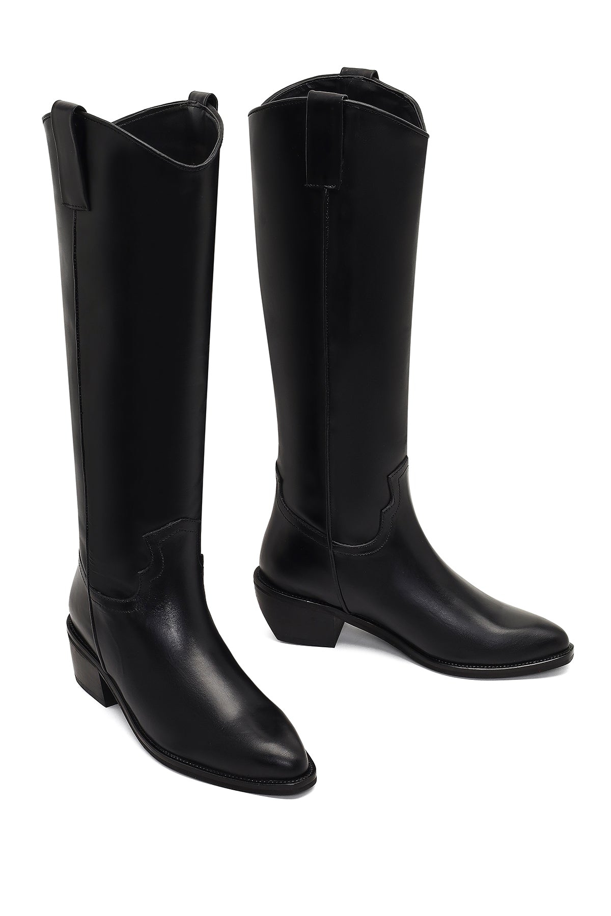 چکمه زنانه کابوی چرم مشکی پاشنهکوتاه دری مد