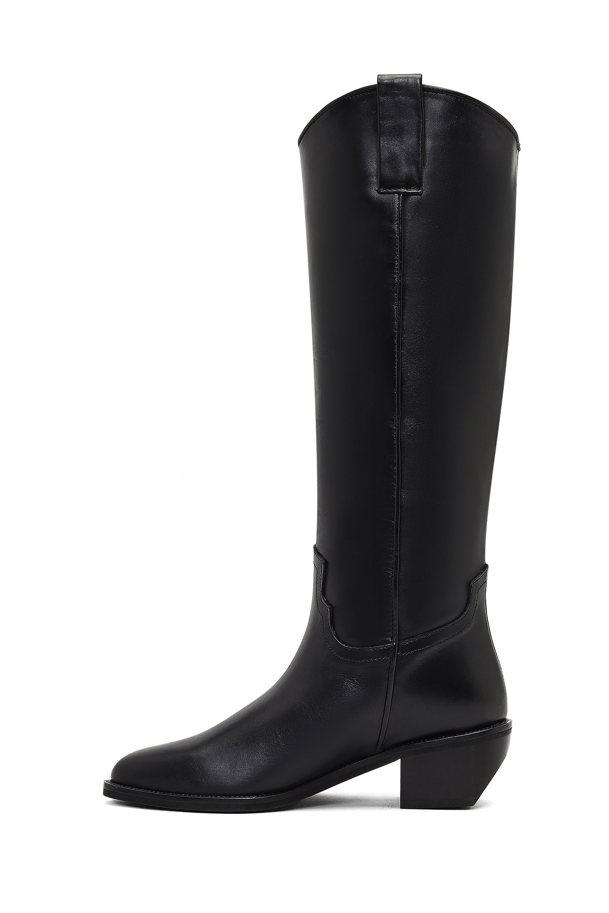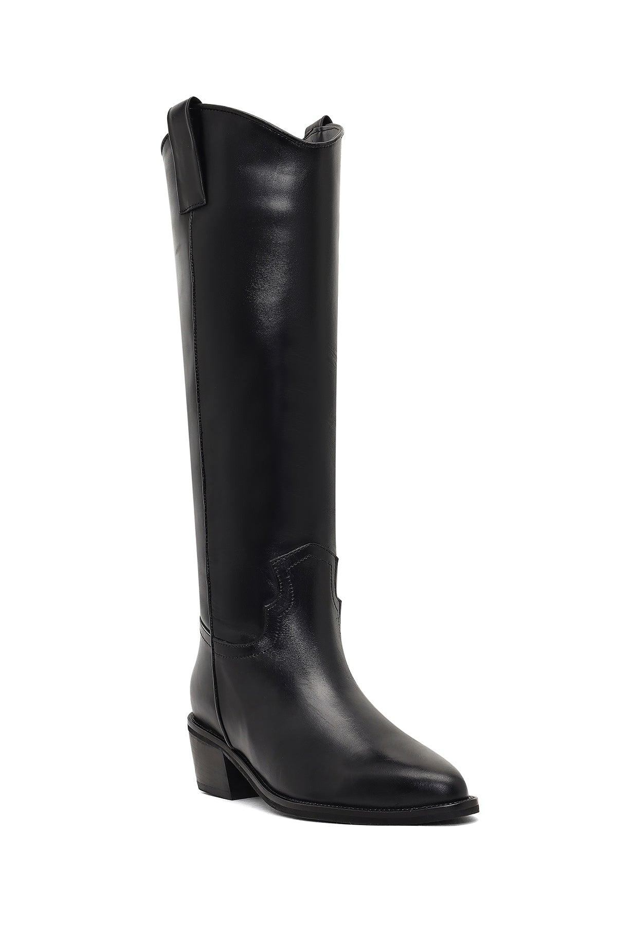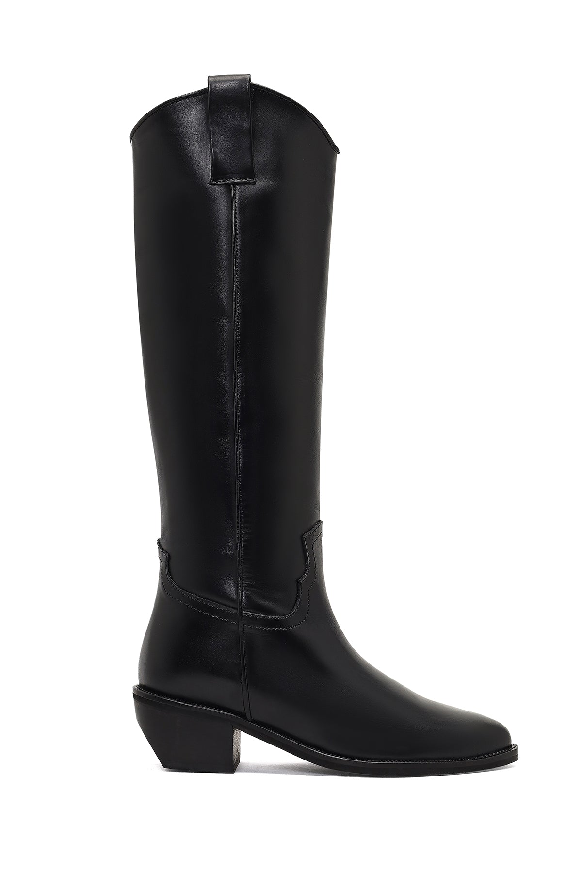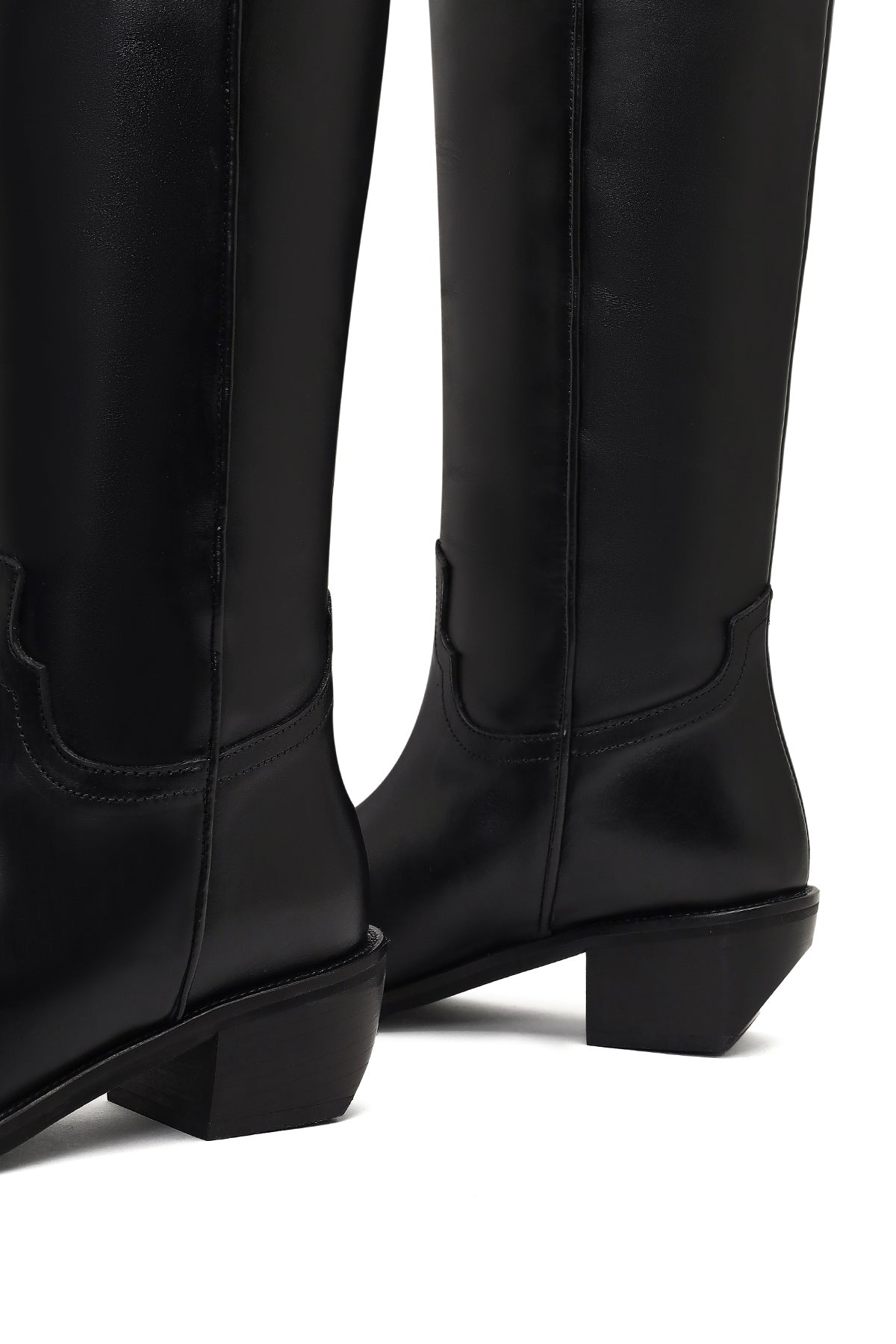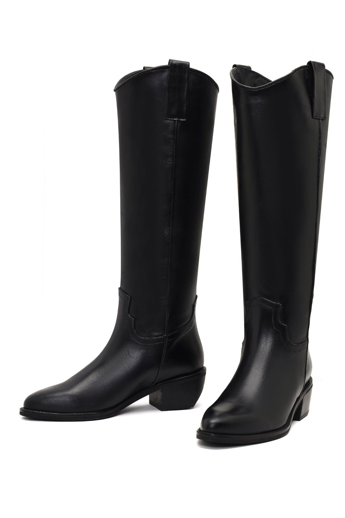 چکمه زنانه کابوی چرم مشکی پاشنهکوتاه دری مد