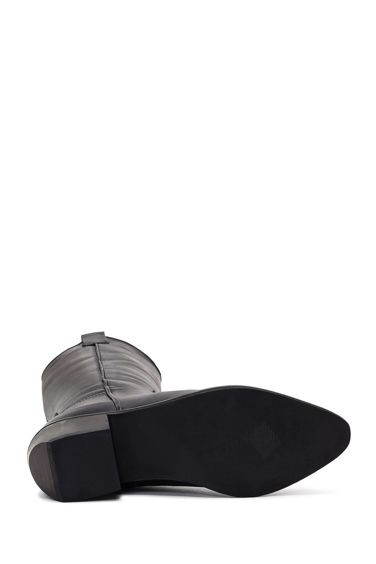 Kadın Siyah Kısa Topuklu Deri Kovboy Çizme