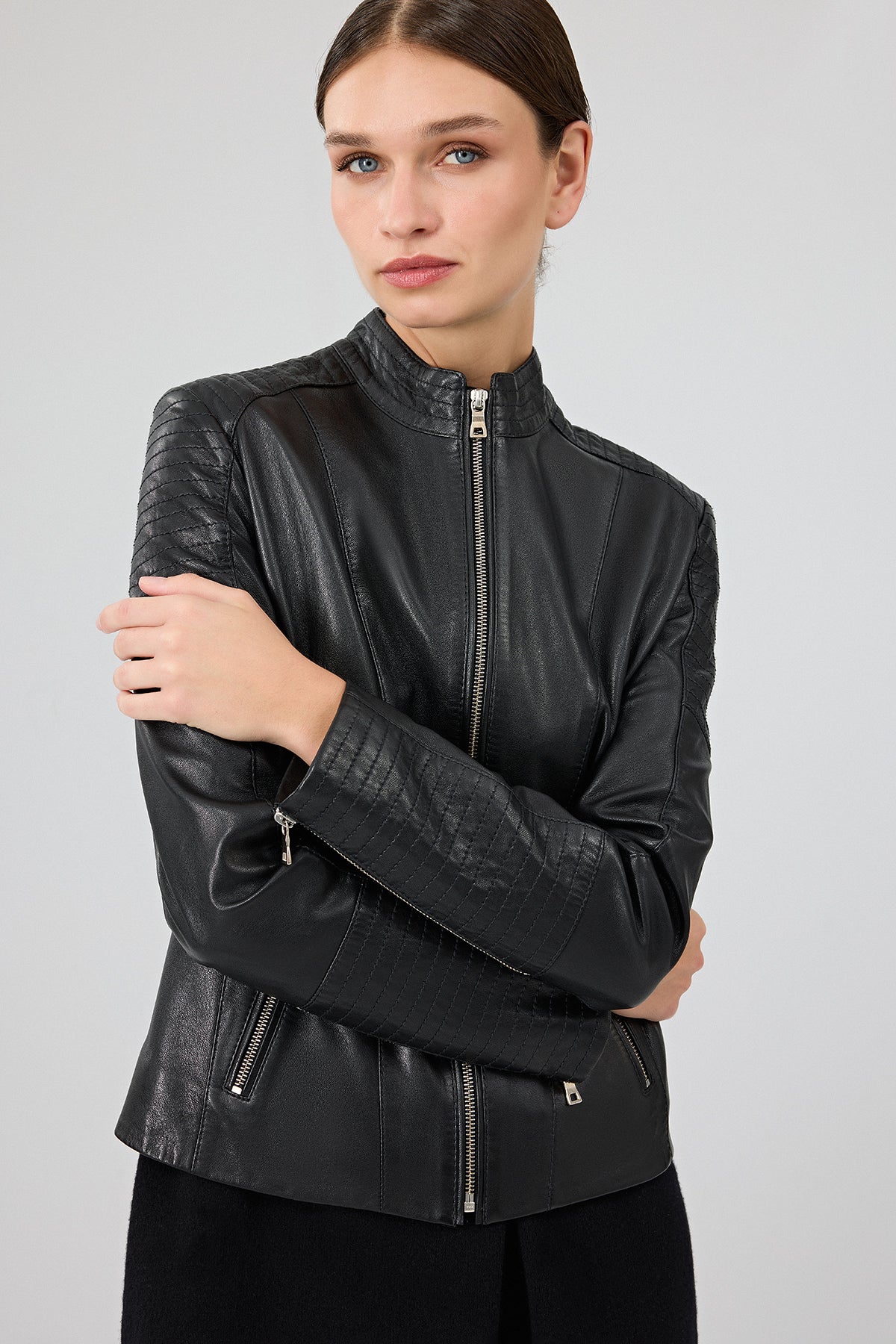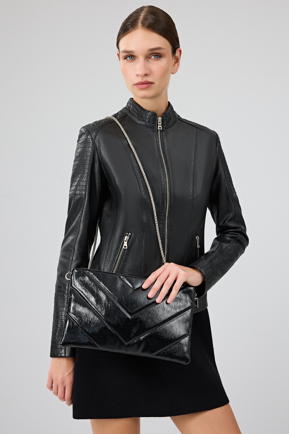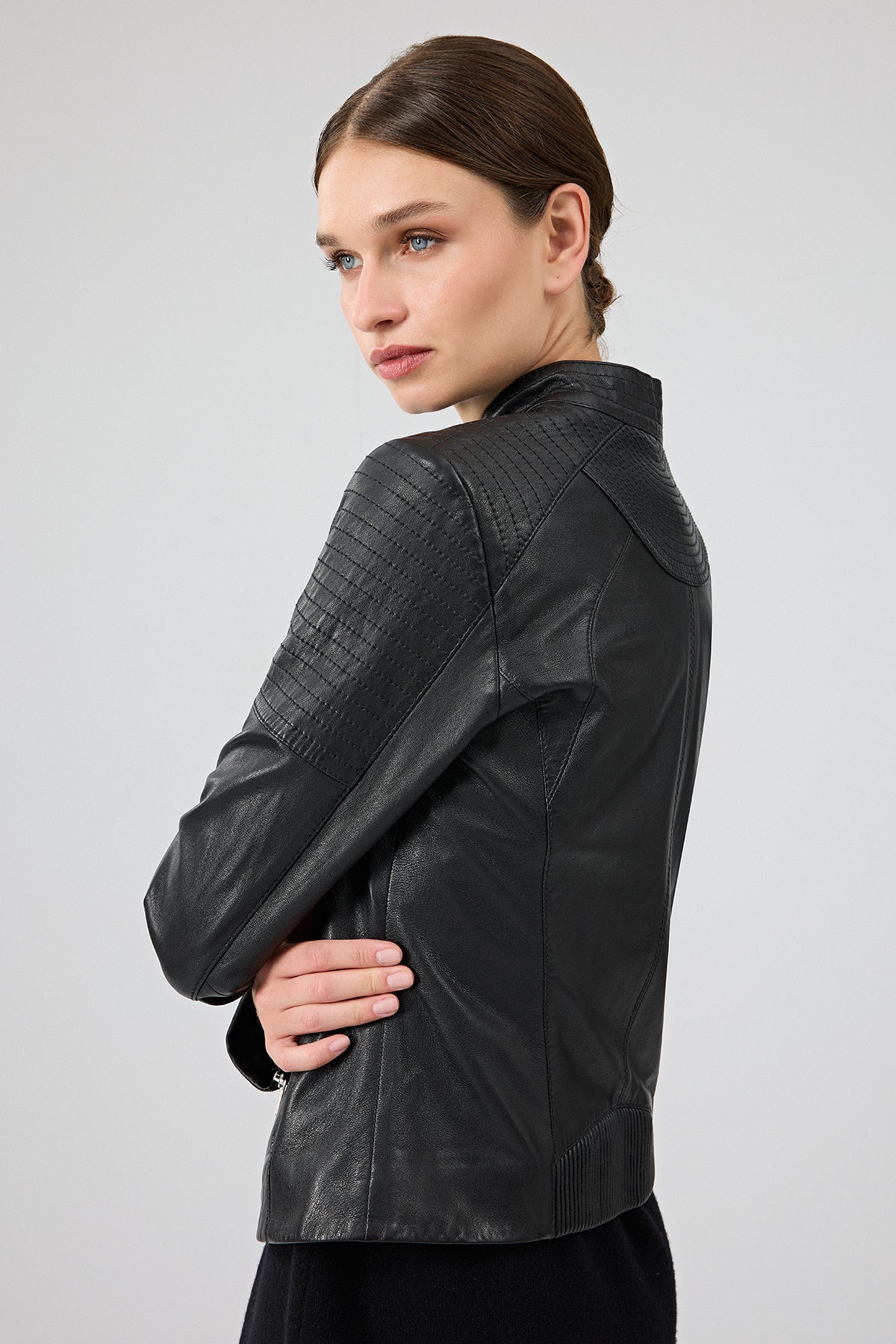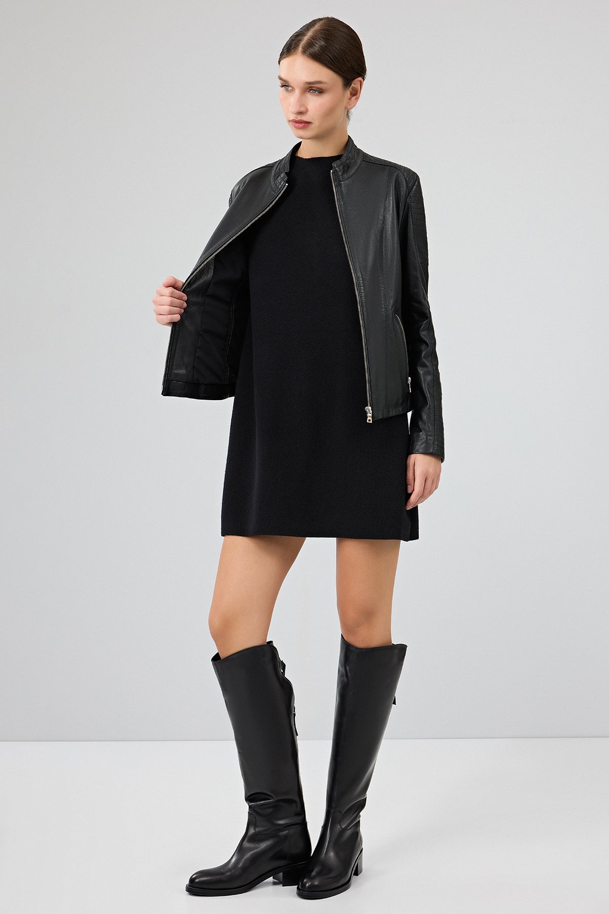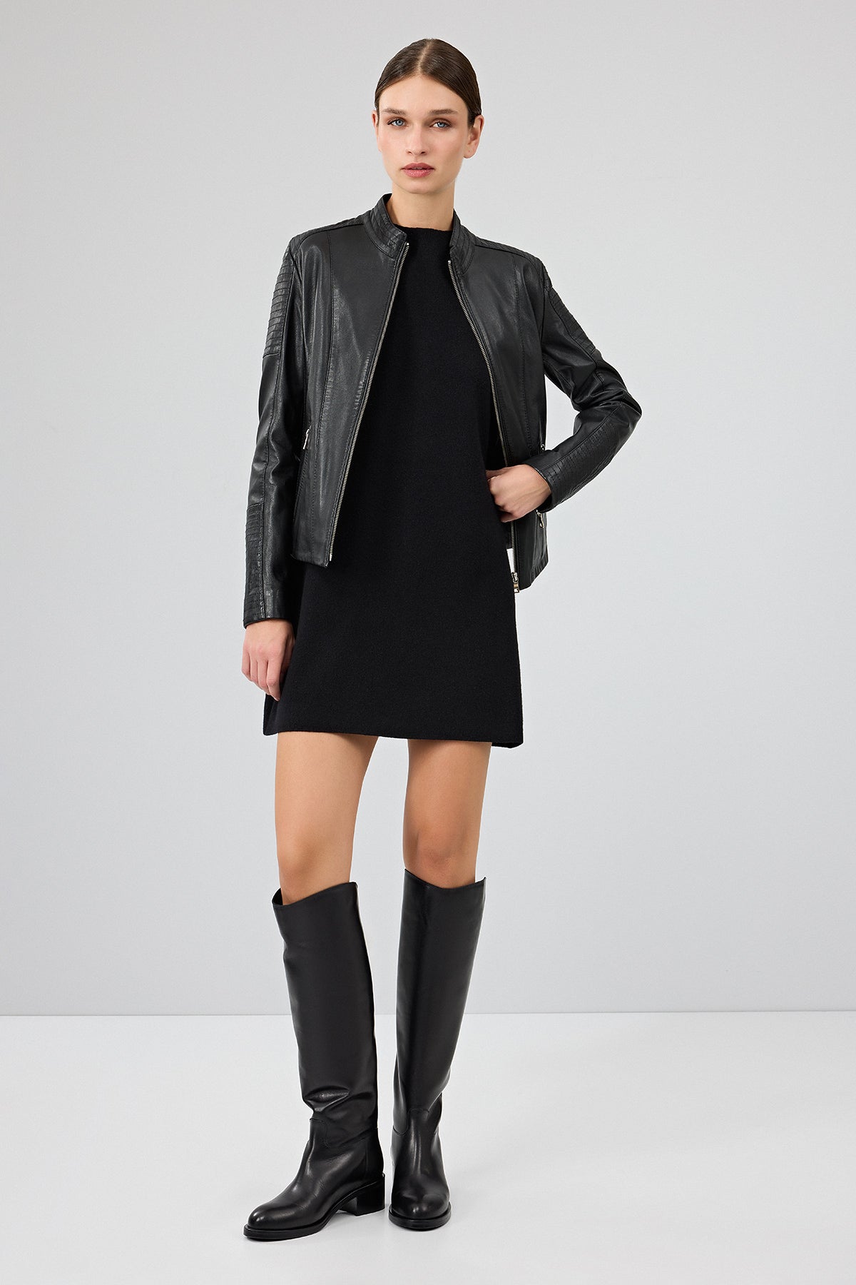 کت چرمی زنانه مشکی کوتاه Delano دری مد