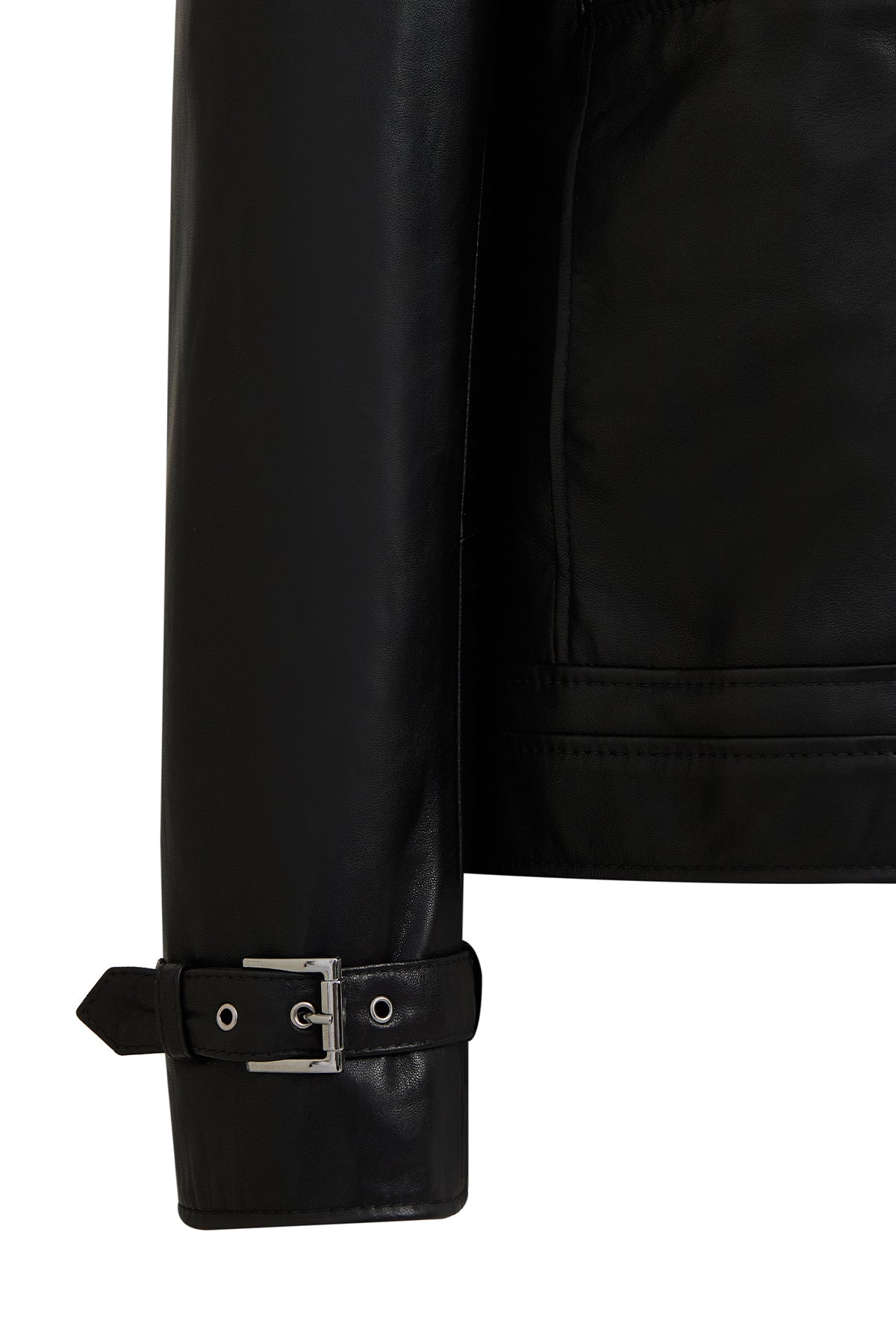 Paloma Kadın Siyah Kısa Oversize Kruvaze Yaka Deri Ceket