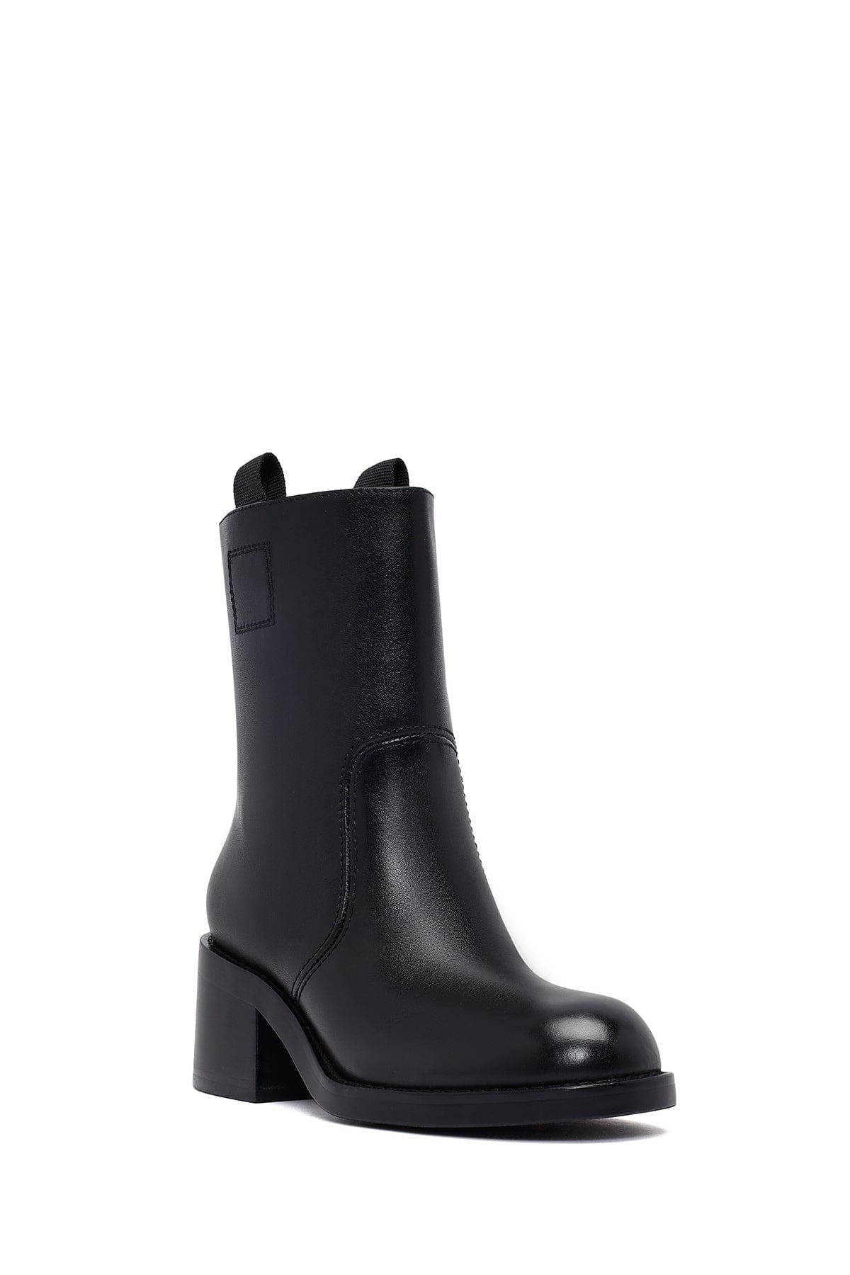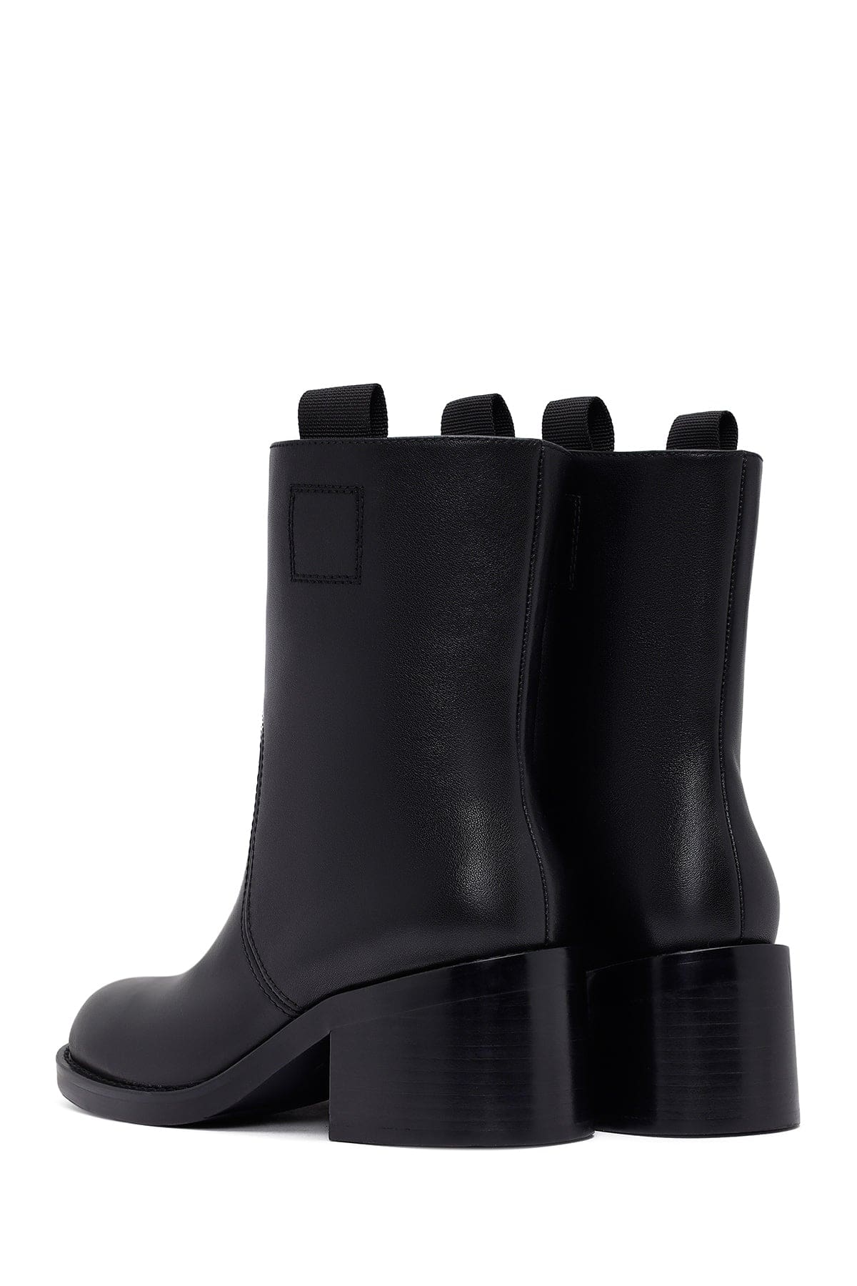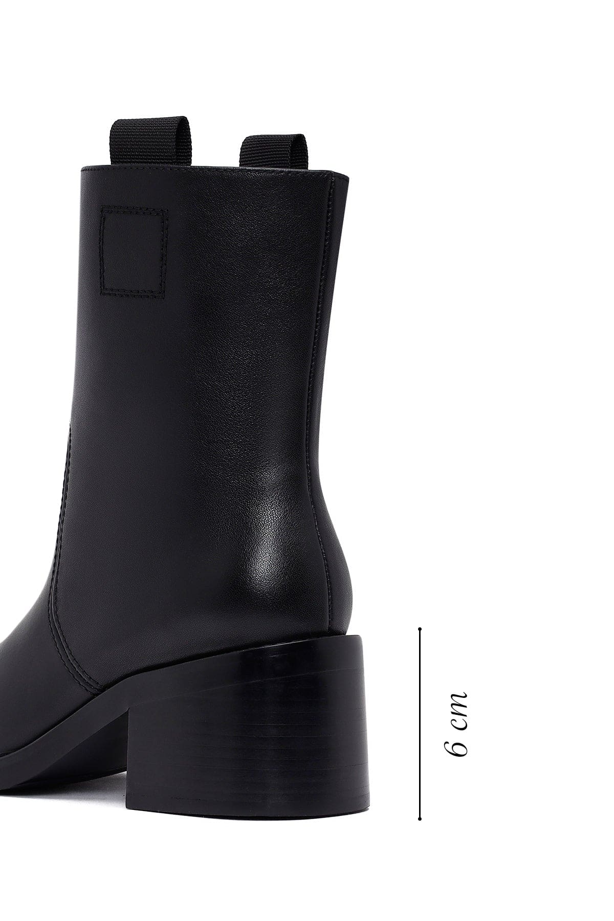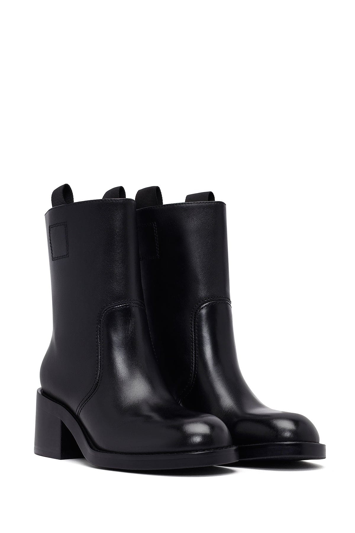 Kadın Siyah Kısa Kalın Topuklu Deri Bot