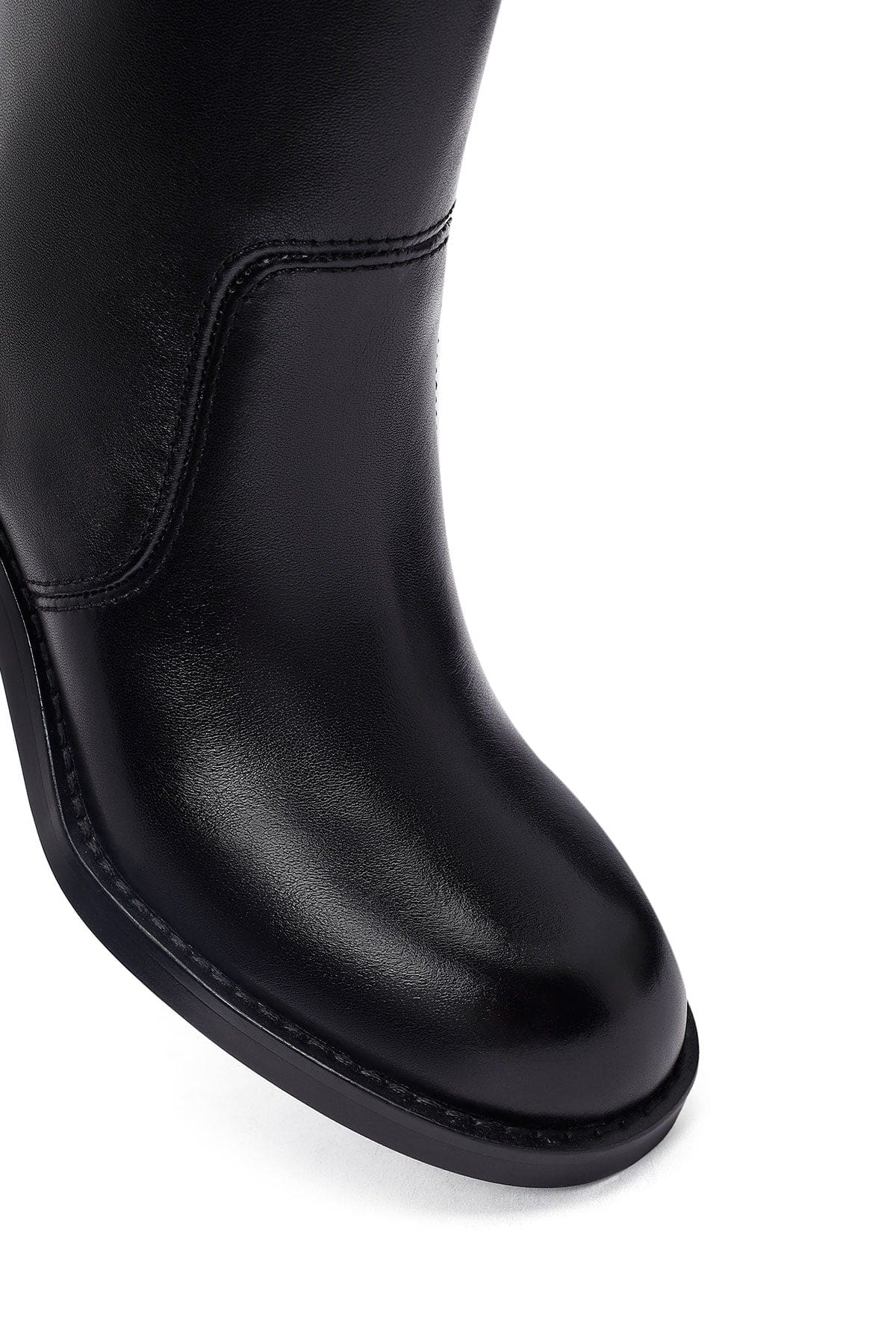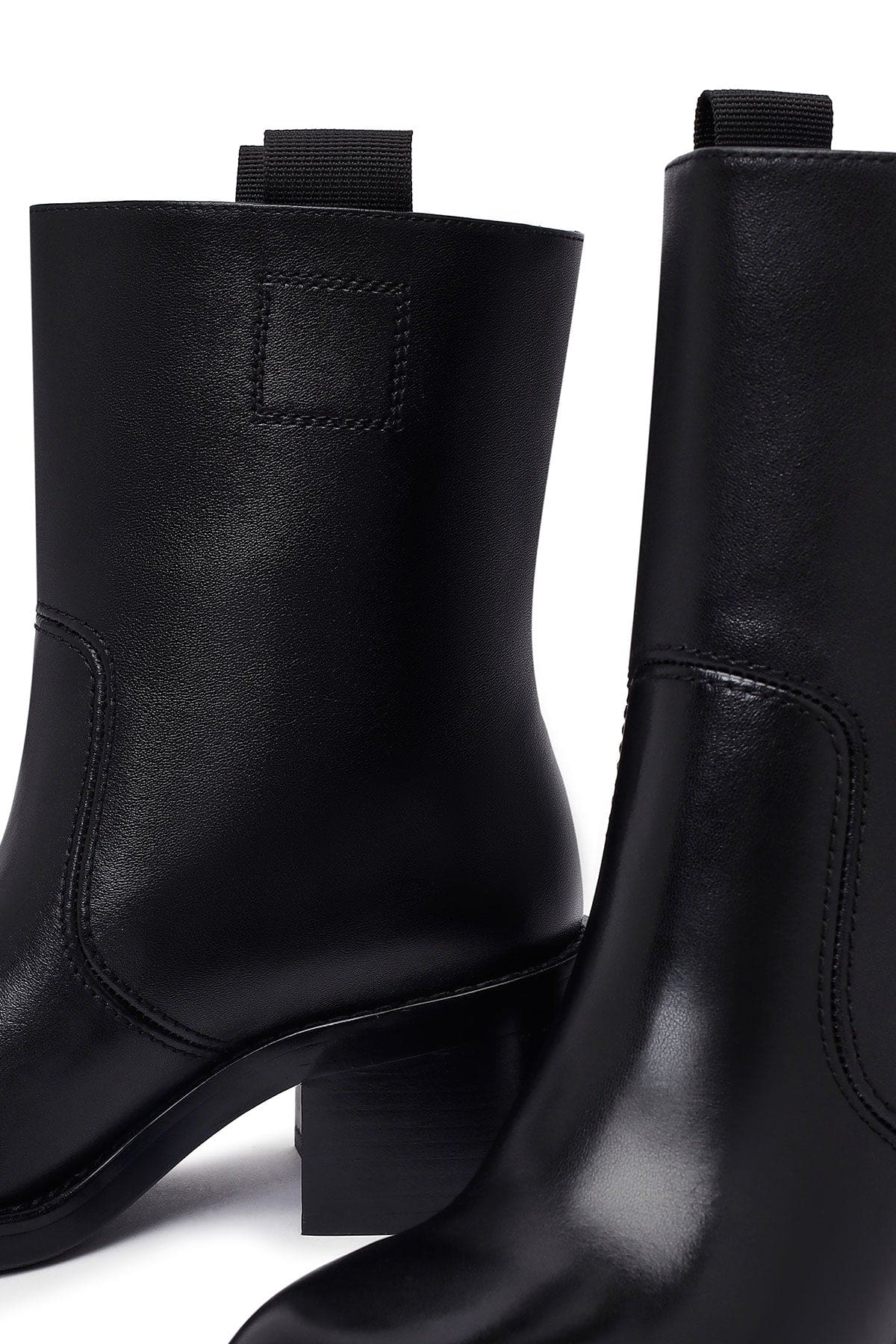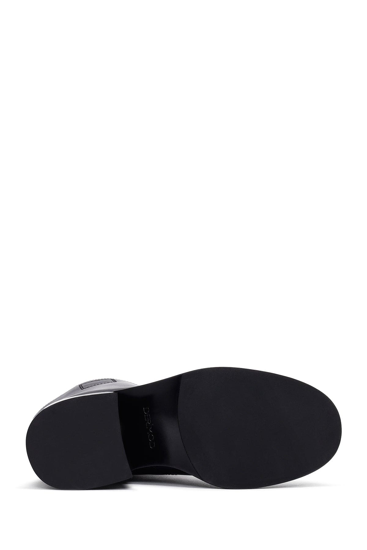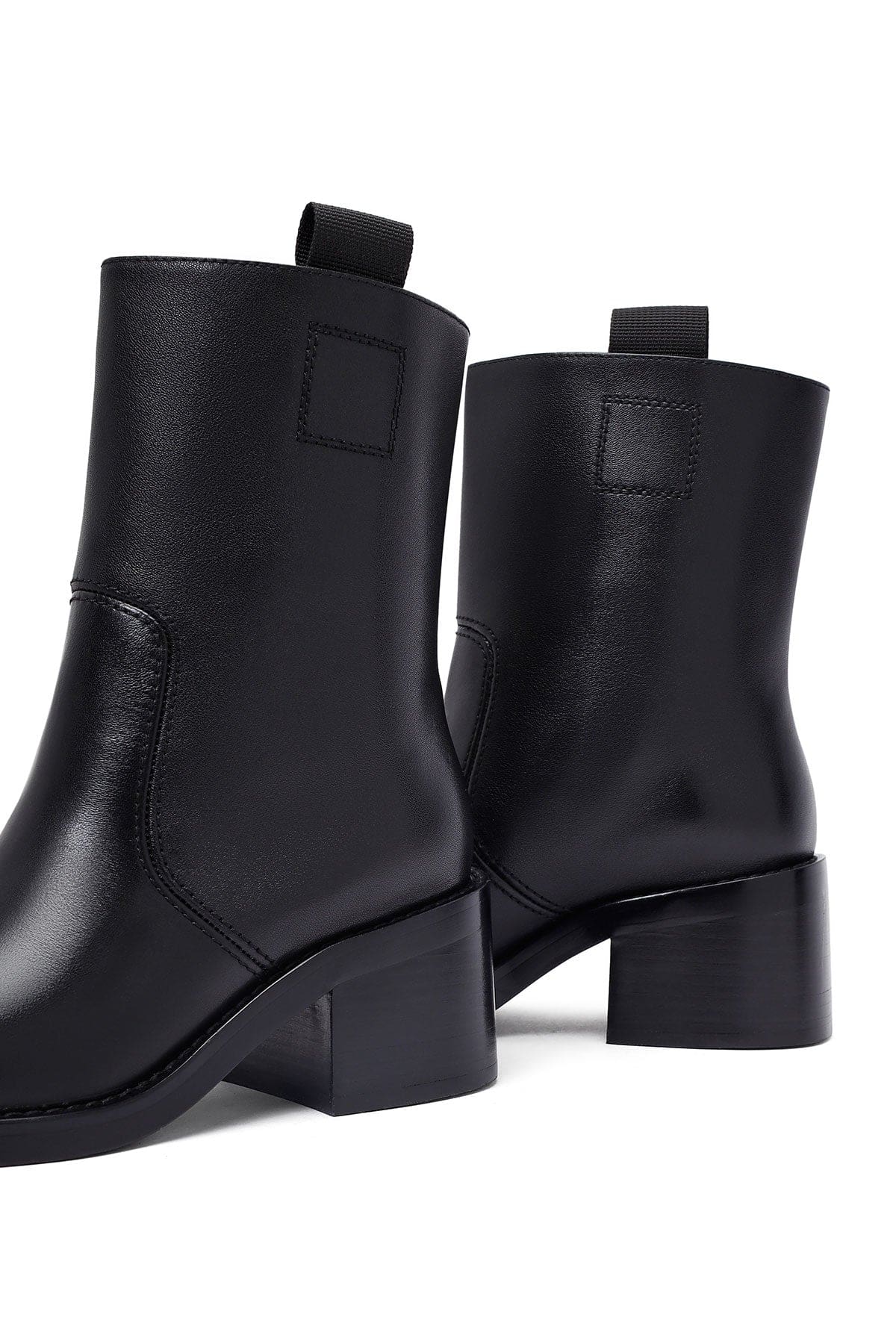 Kadın Siyah Kısa Kalın Topuklu Deri Bot