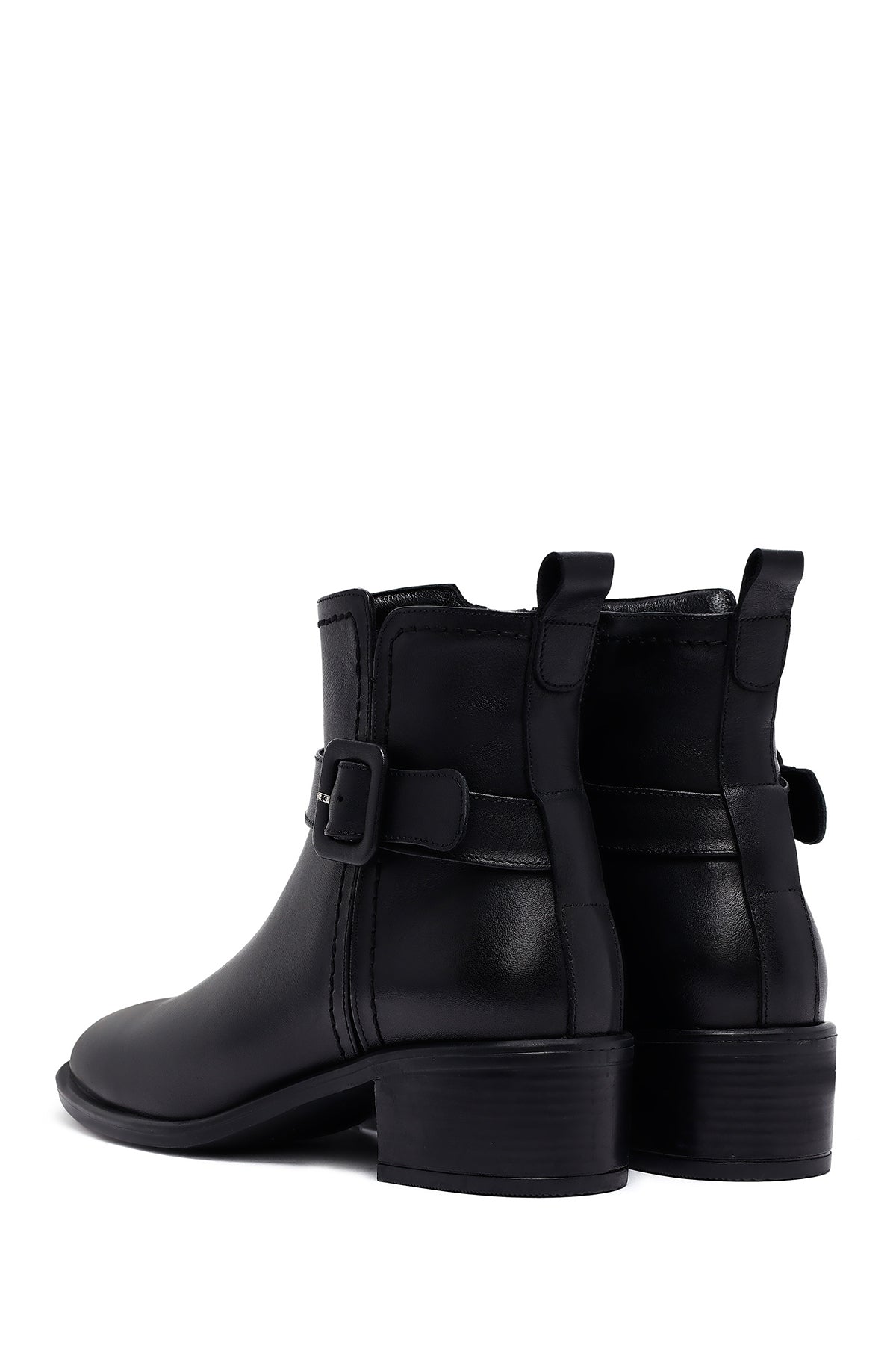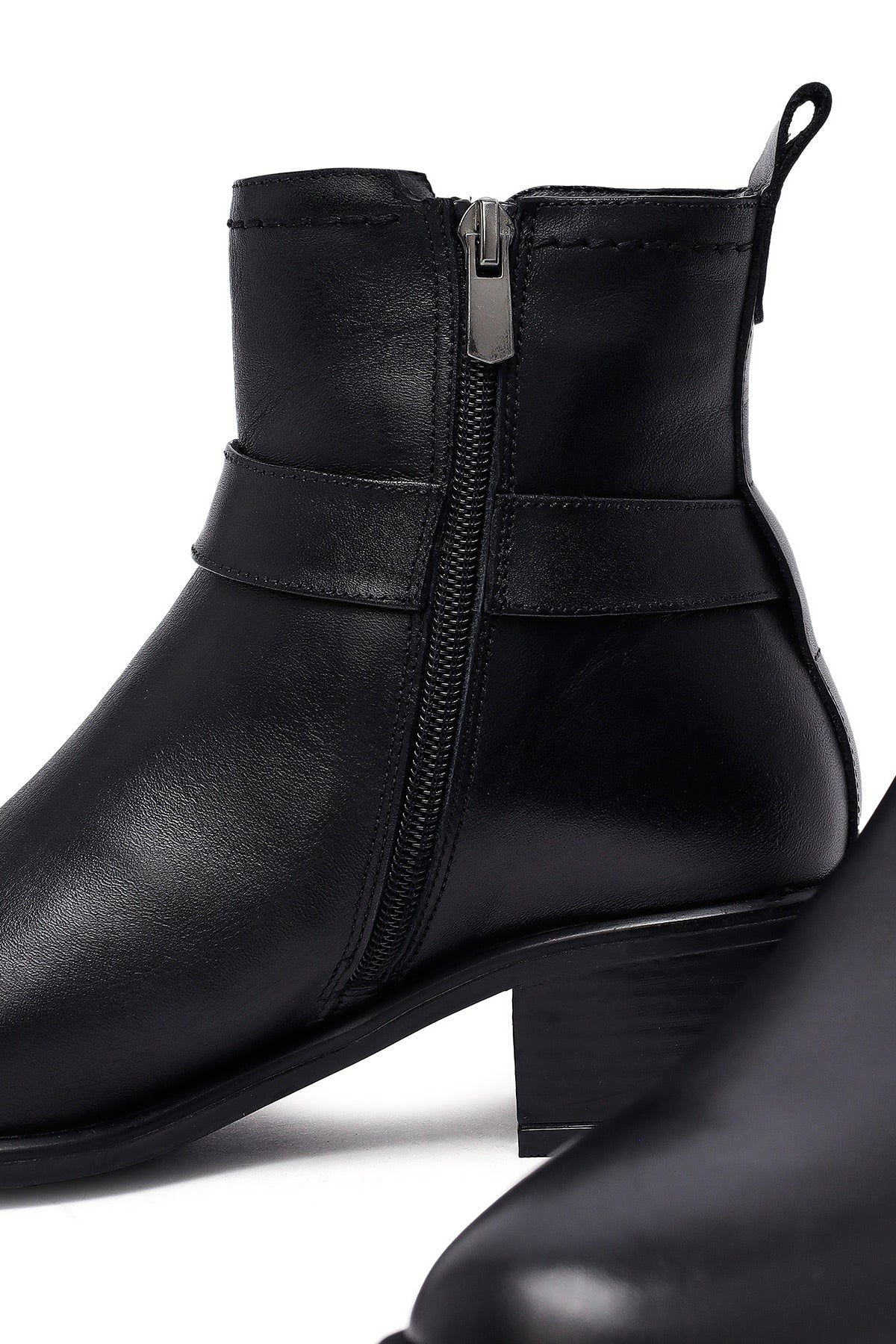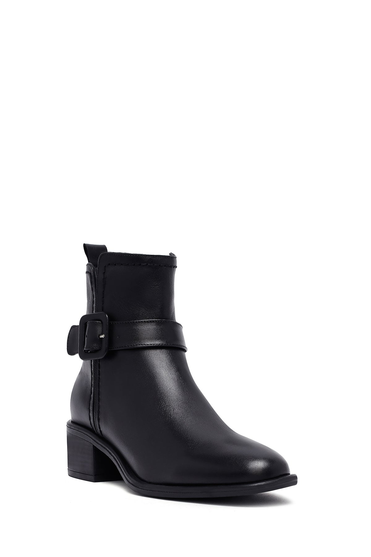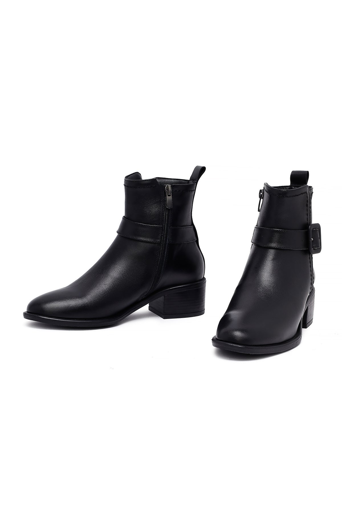 Kadın Siyah Fermuarlı Kısa Kalın Topuklu Deri Bot