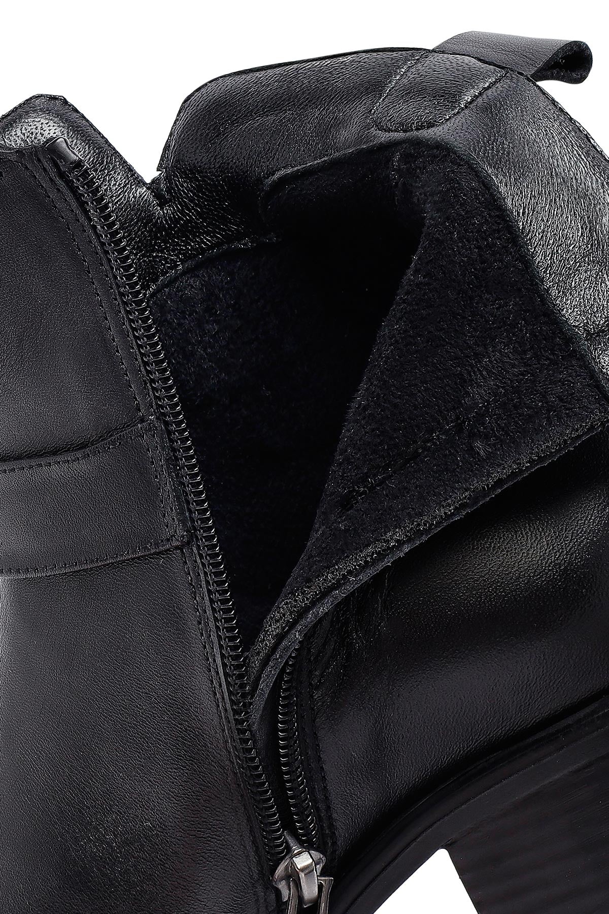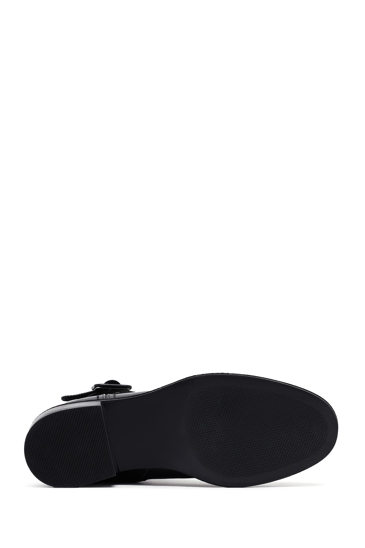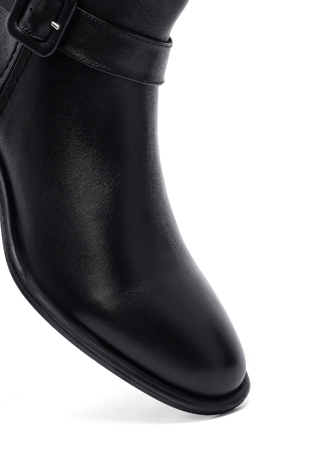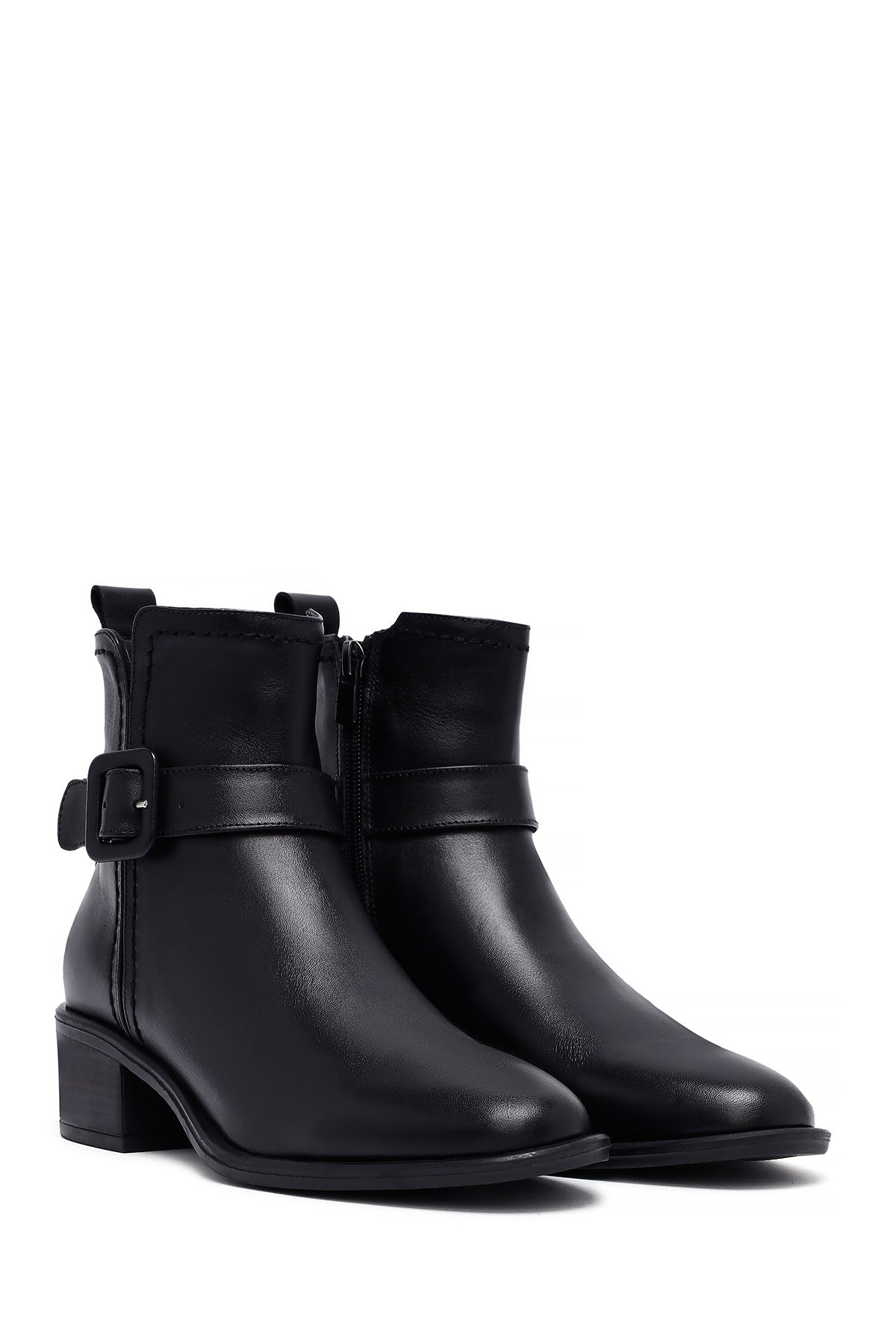 Kadın Siyah Fermuarlı Kısa Kalın Topuklu Deri Bot