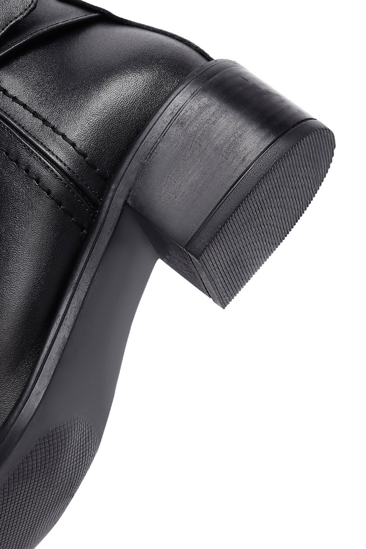 بوت زنانه چرمی مشکی پاشنه ضخیم کوتاه زیپ دار دری مد