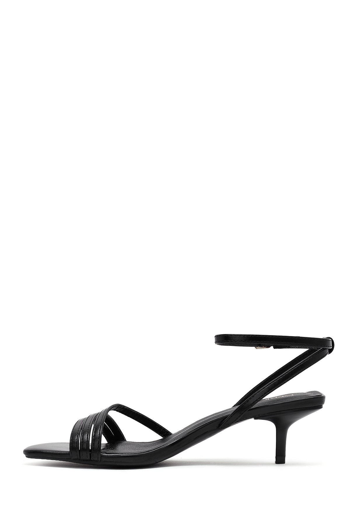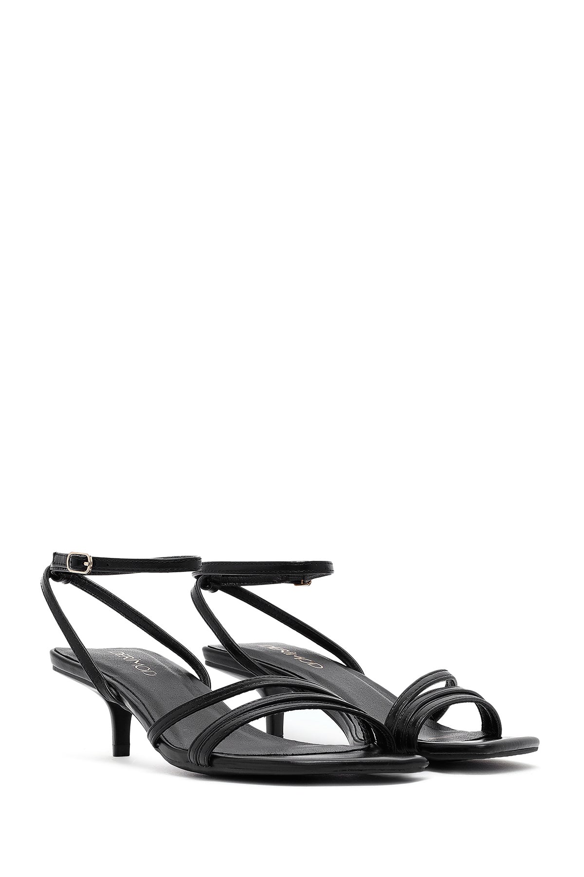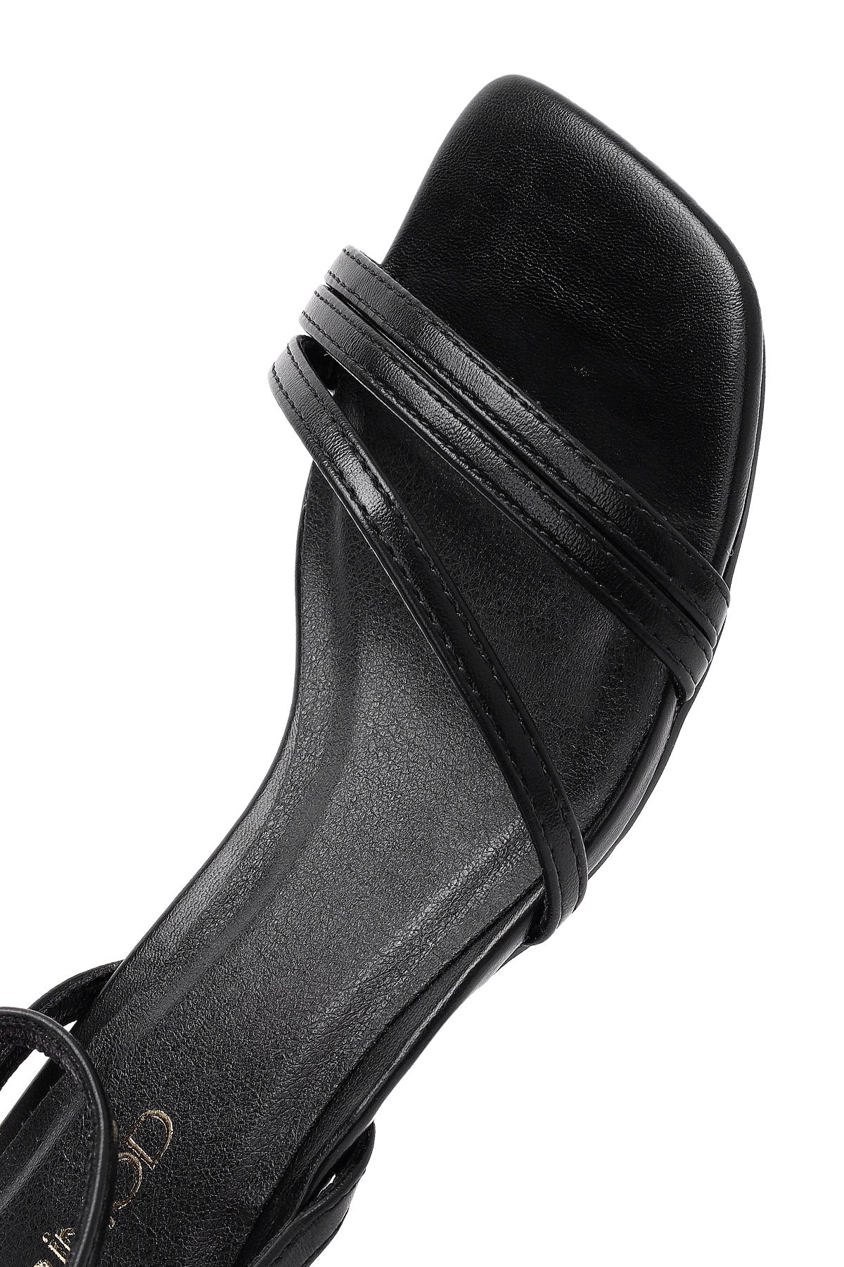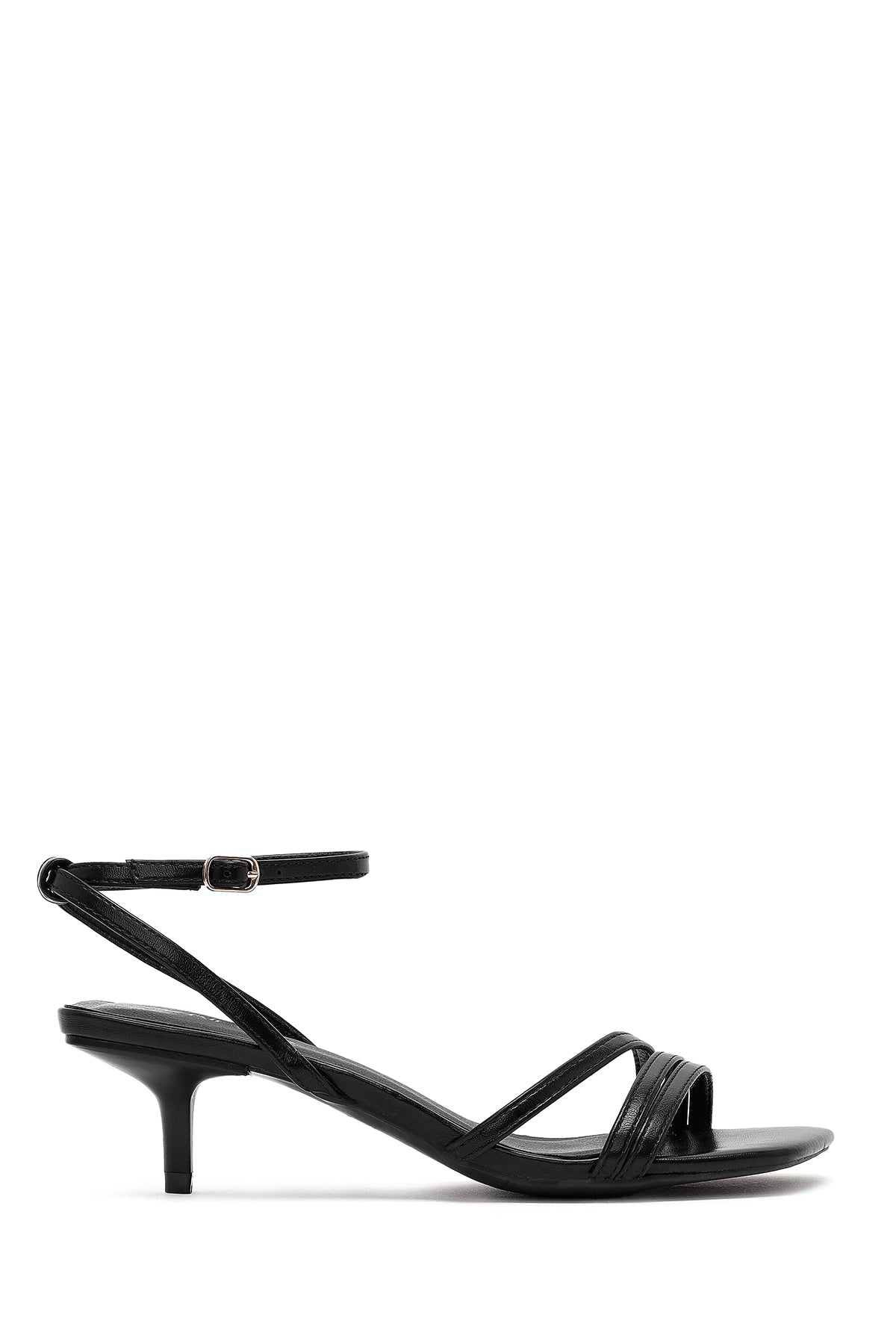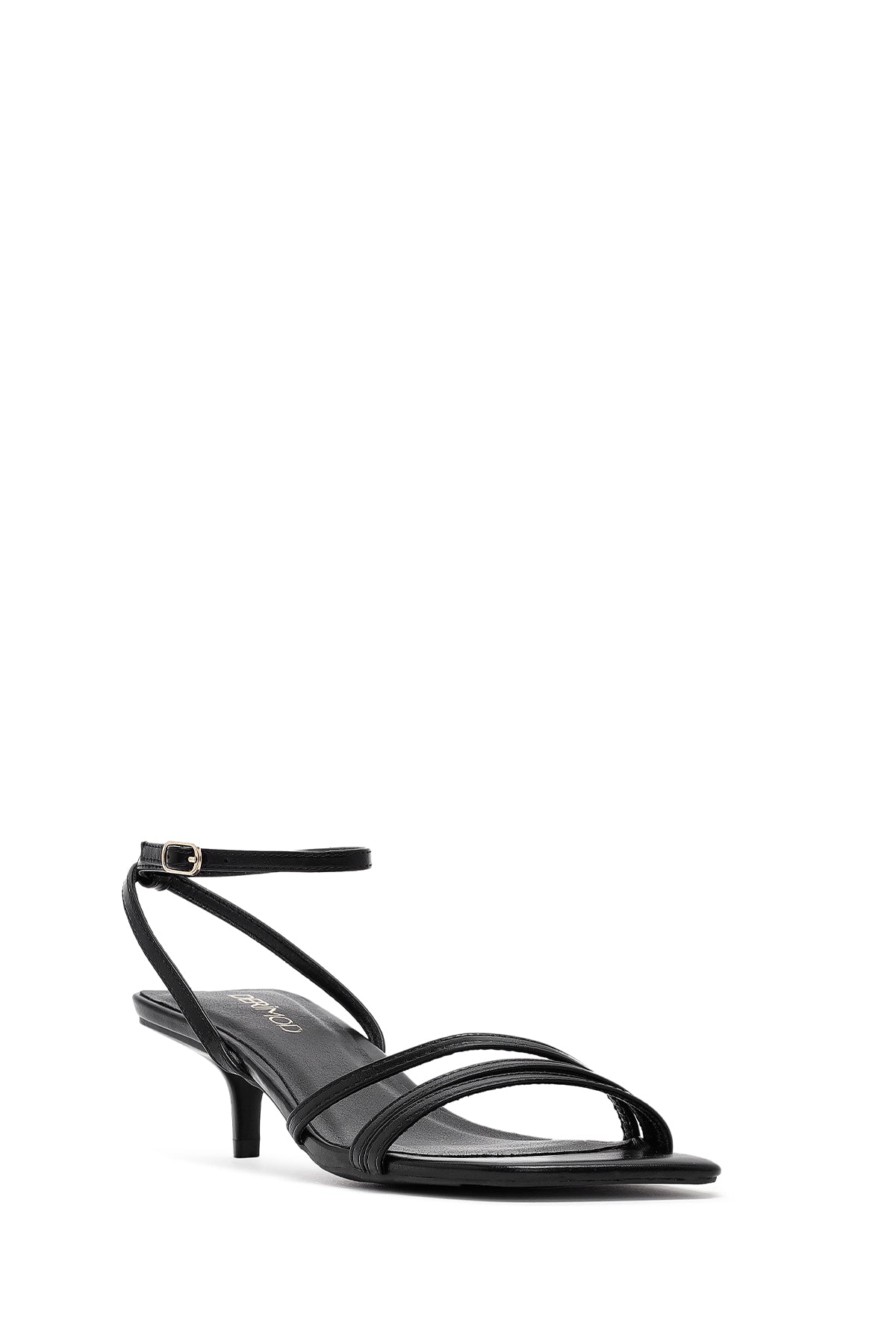 Kadın Siyah Bilekten Tokalı İnce Kısa Topuklu Sandalet