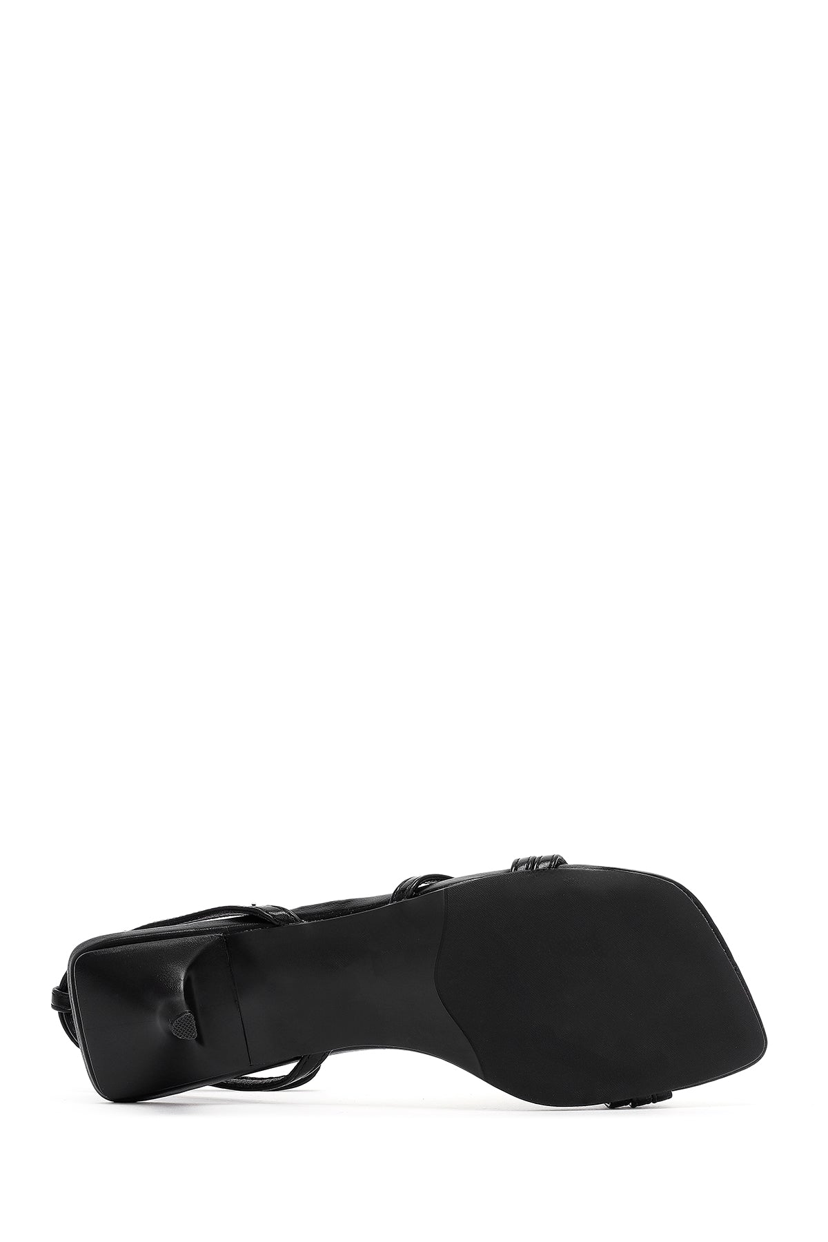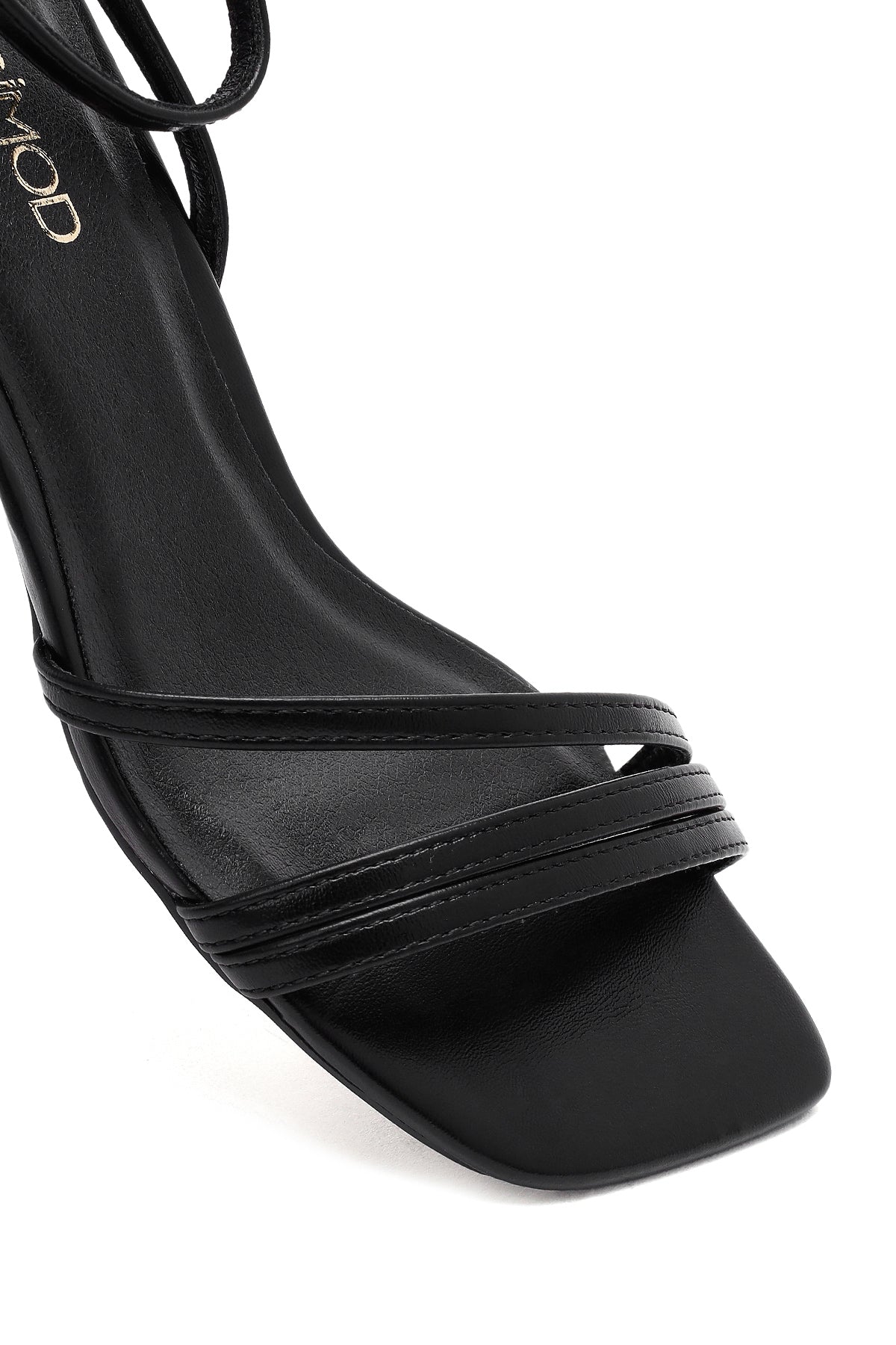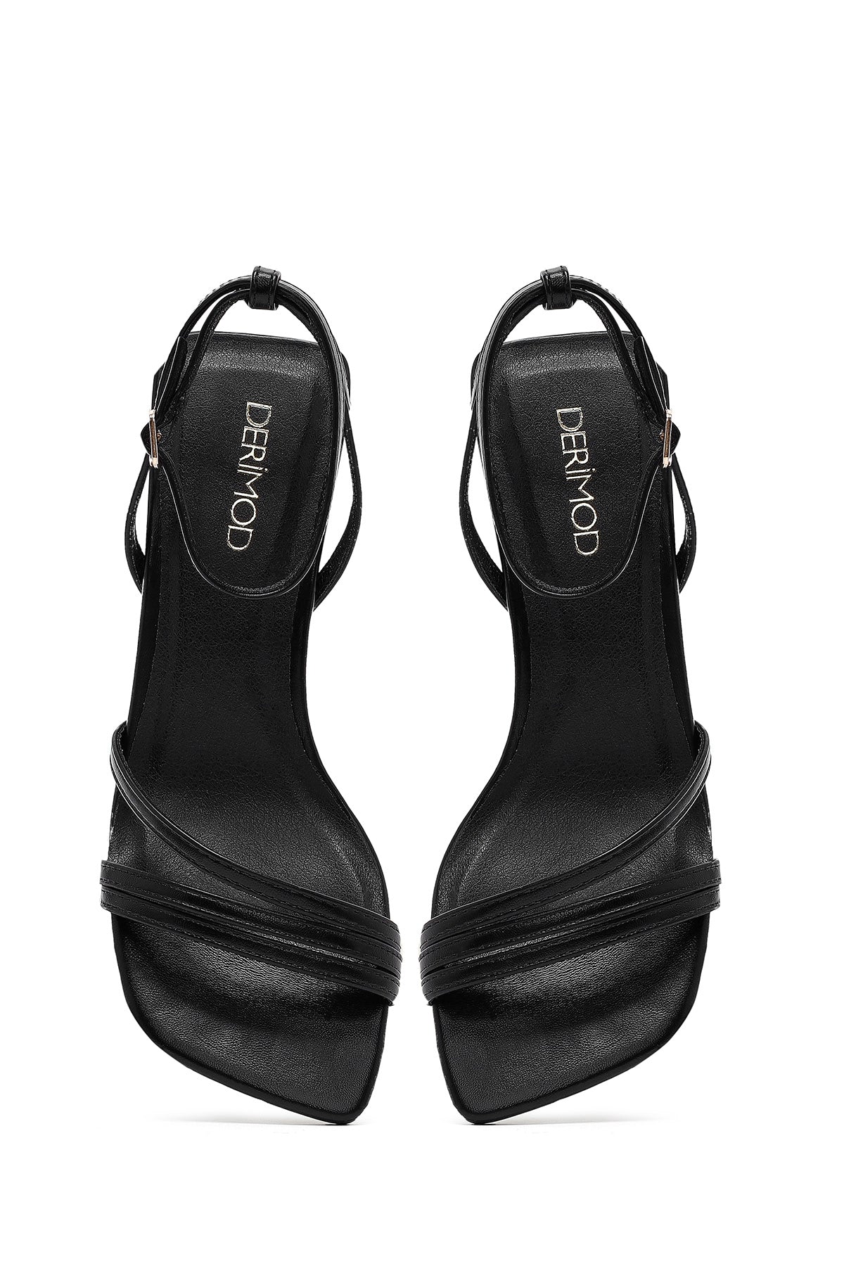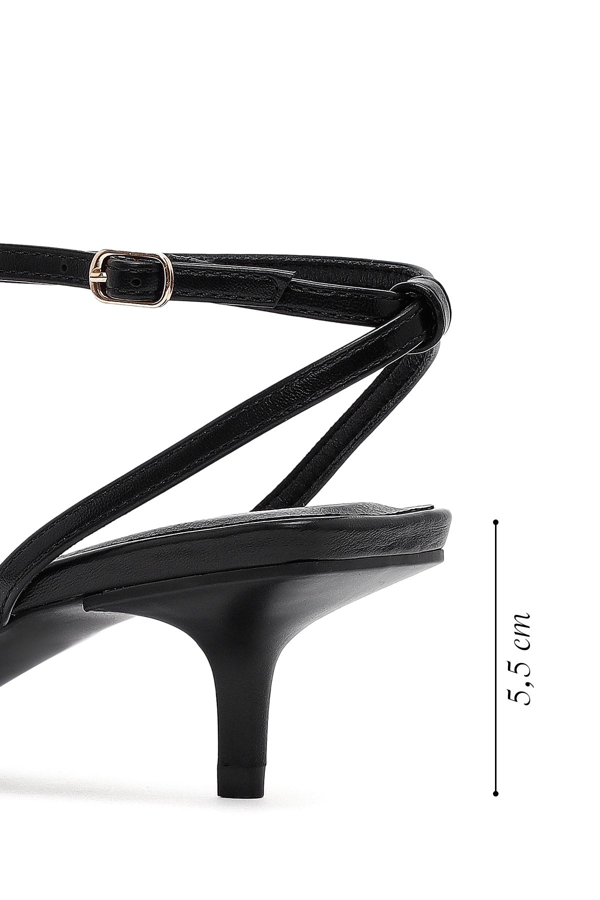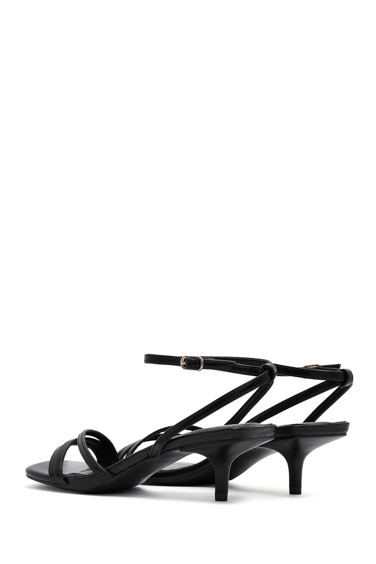 Kadın Siyah Bilekten Tokalı İnce Kısa Topuklu Sandalet