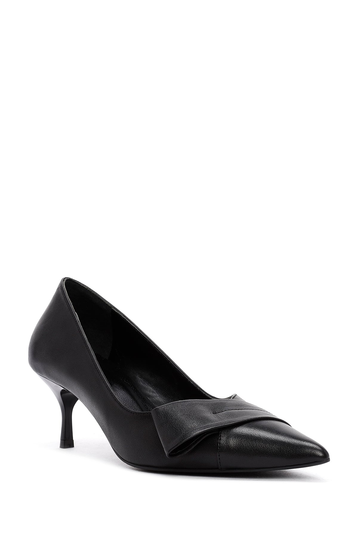 Kadın Siyah Kısa İnce Topuklu Deri Ayakkabı