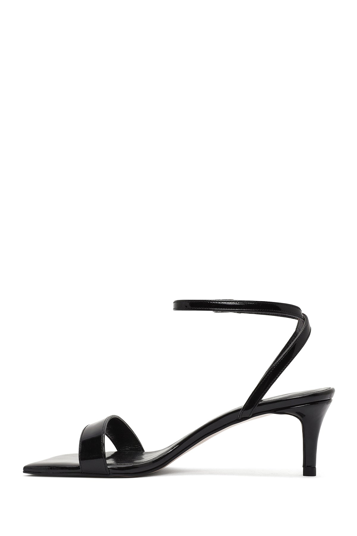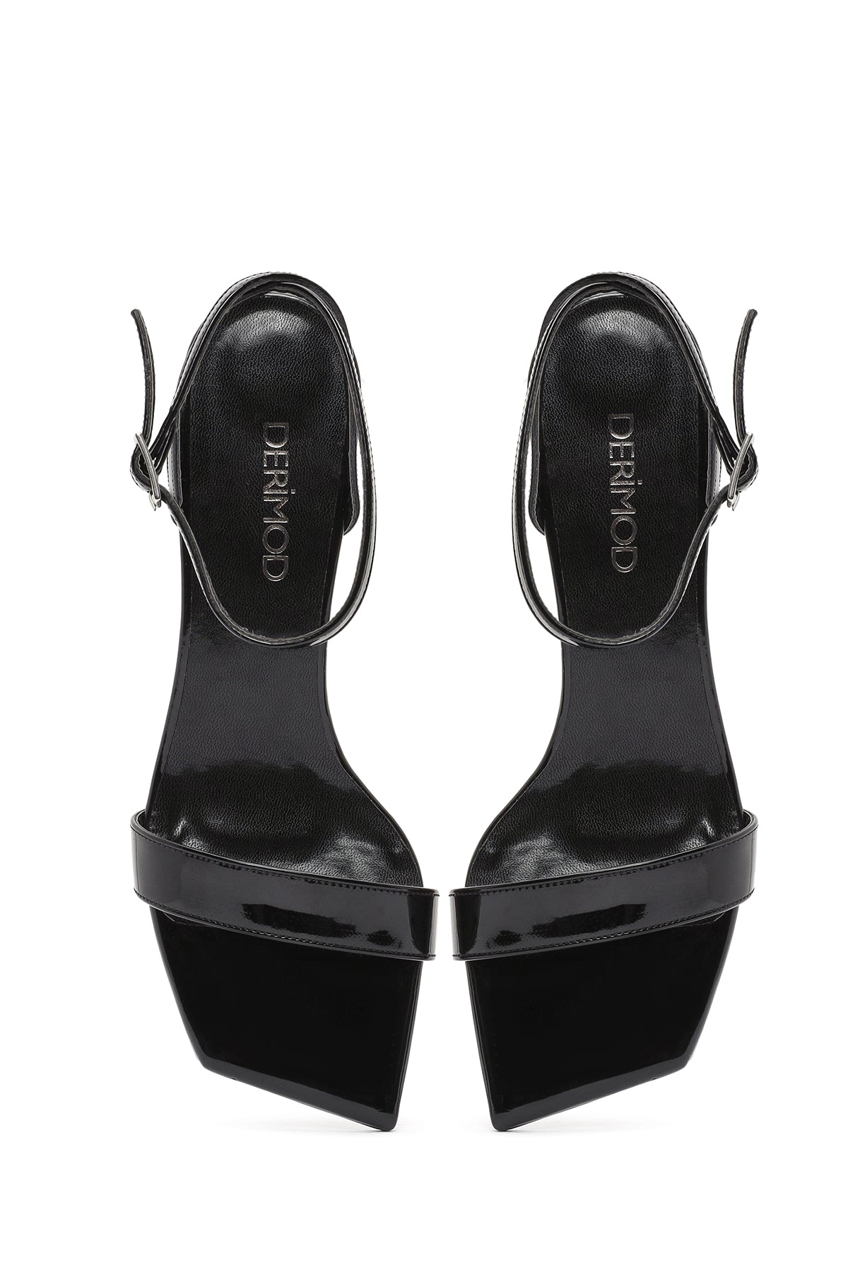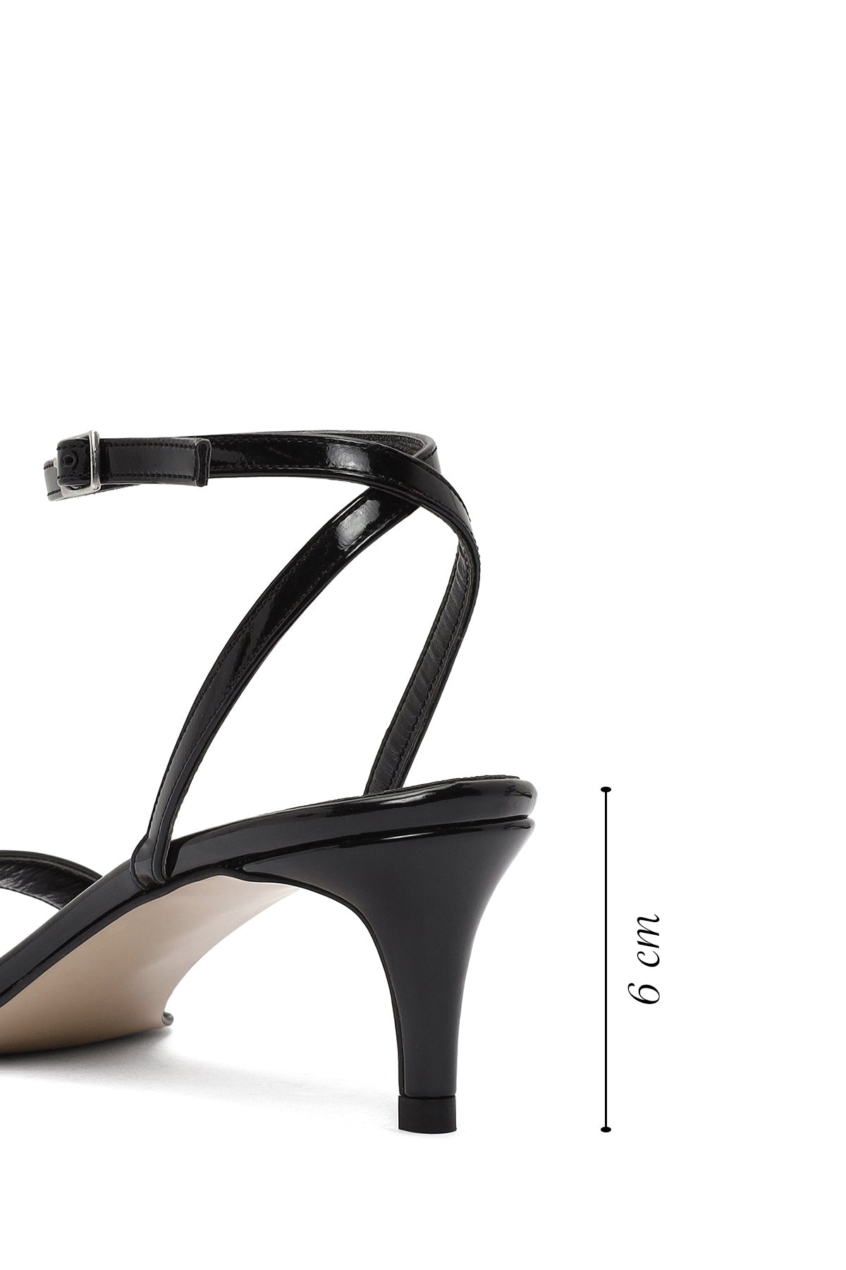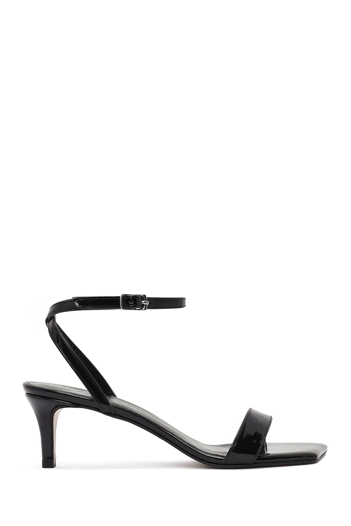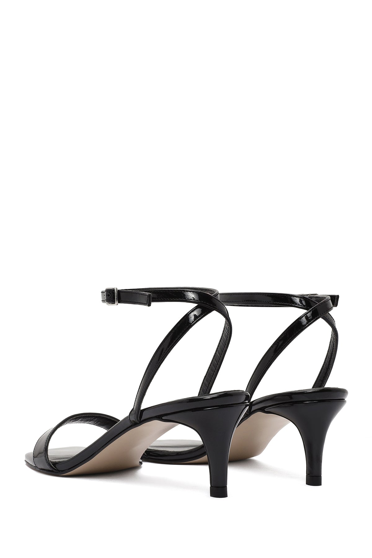Kadın Siyah Bilekten Tokalı Kısa İnce Topuklu Rugan Sandalet