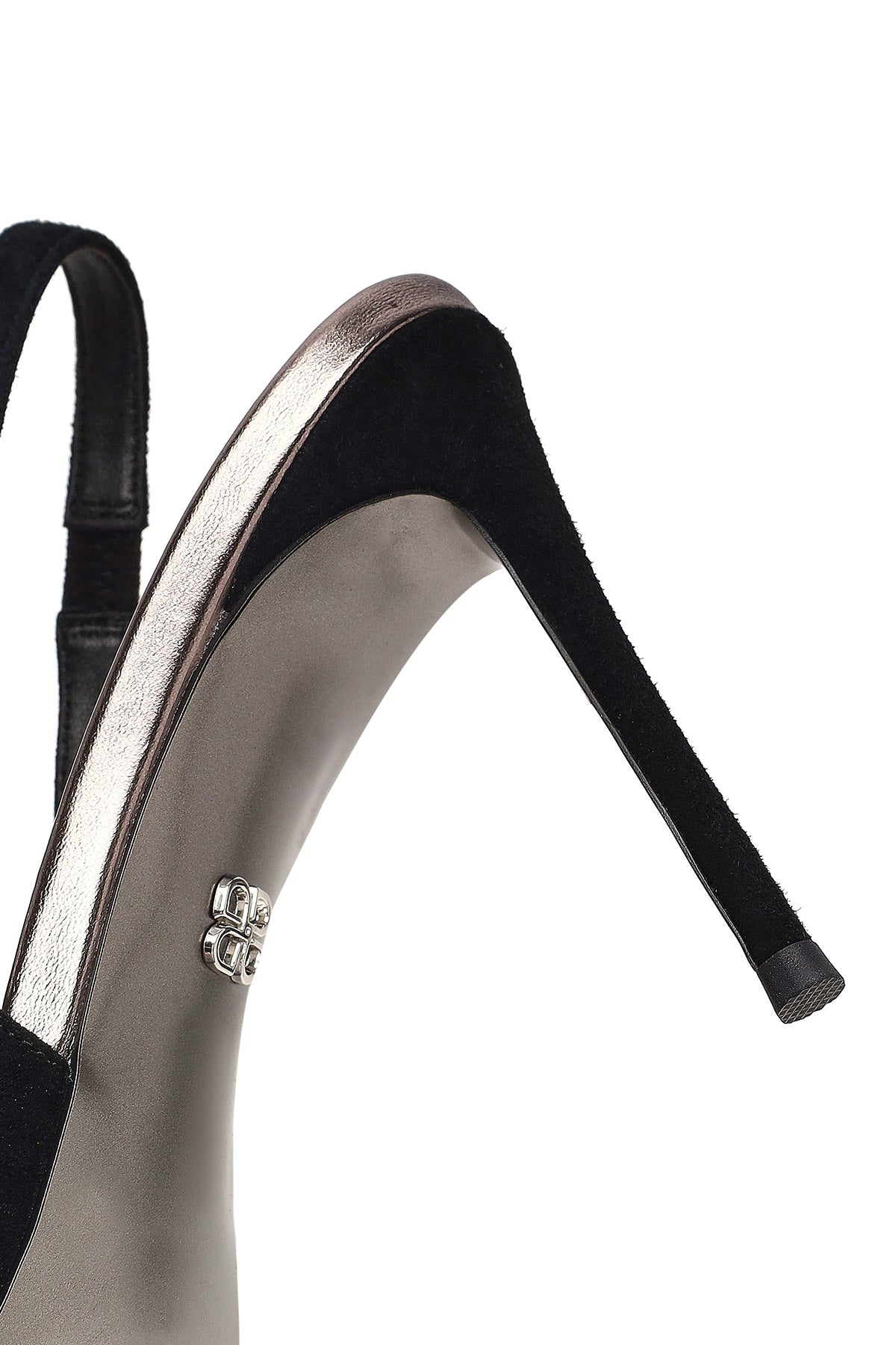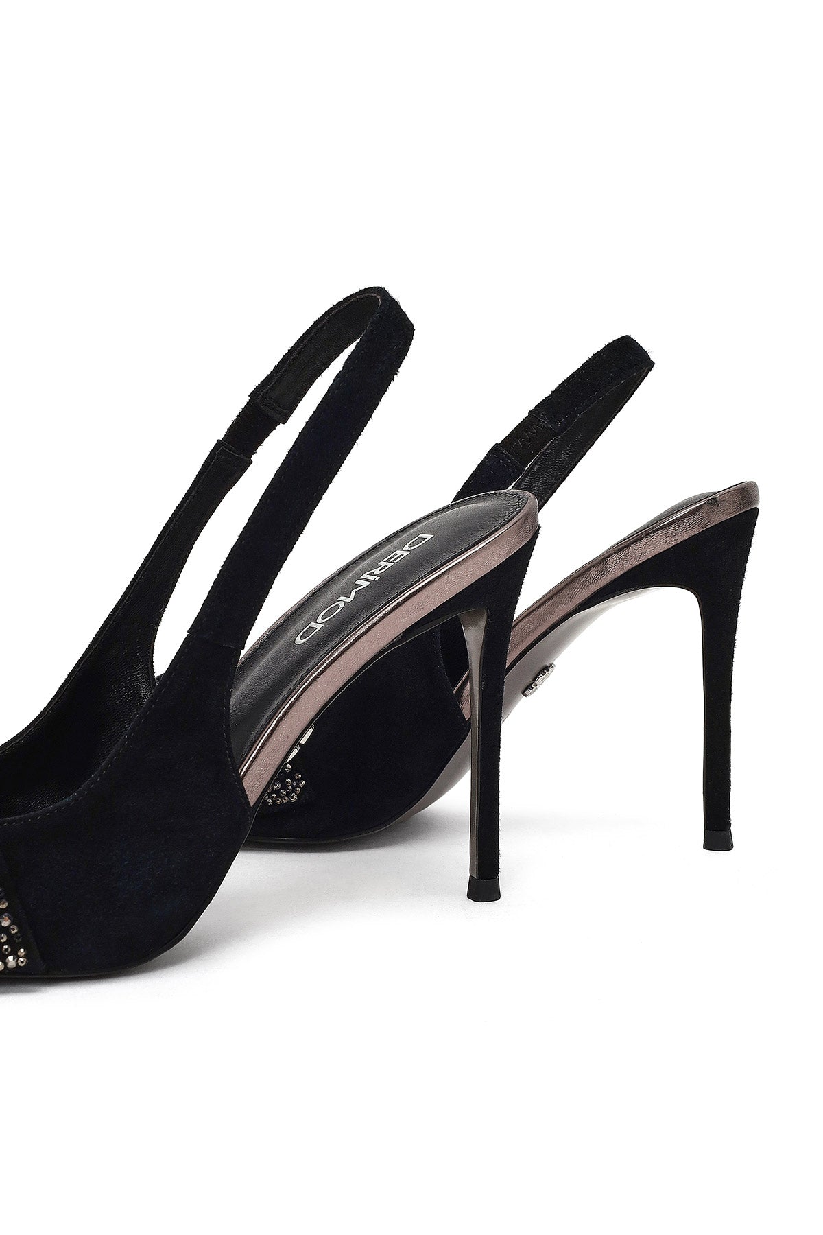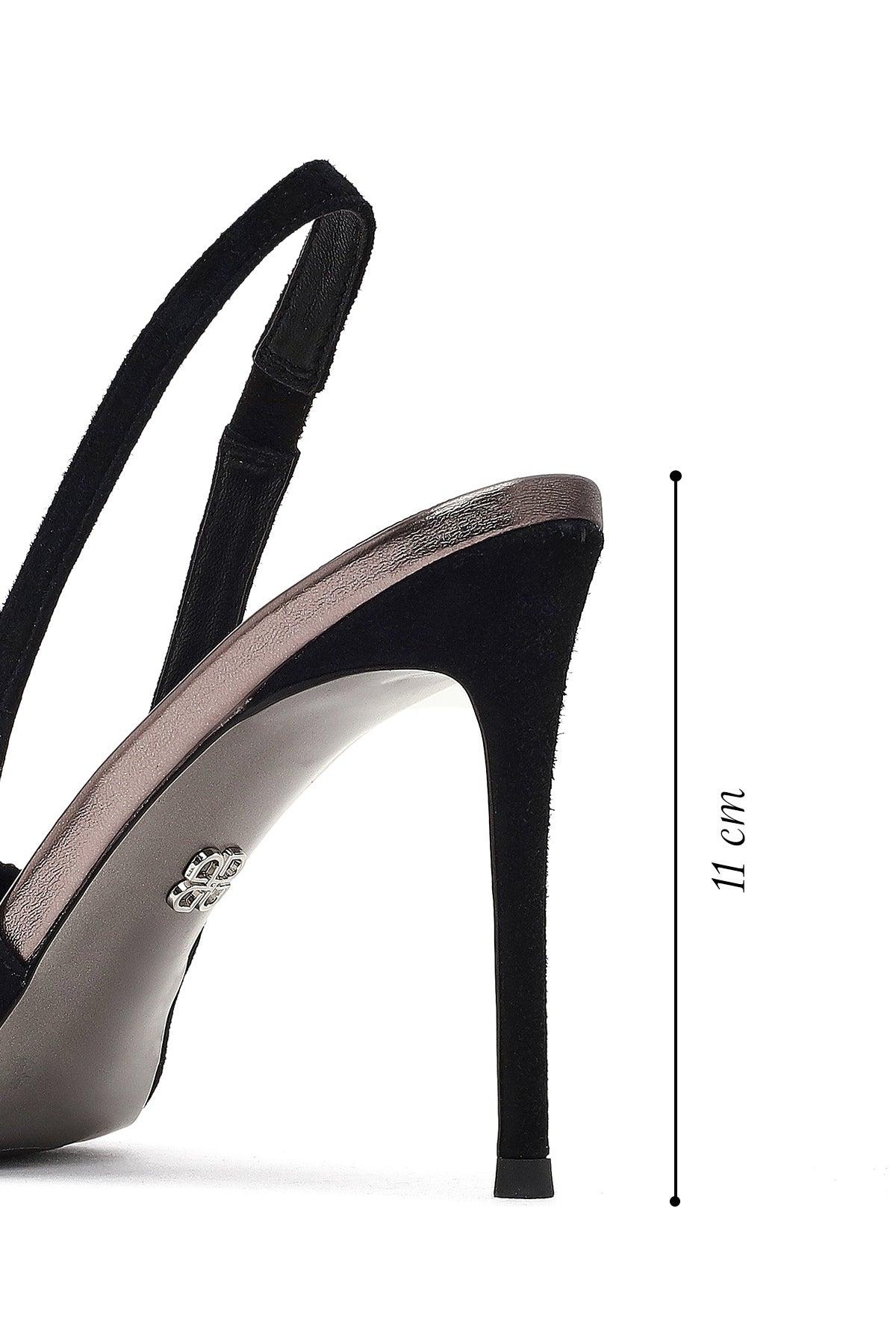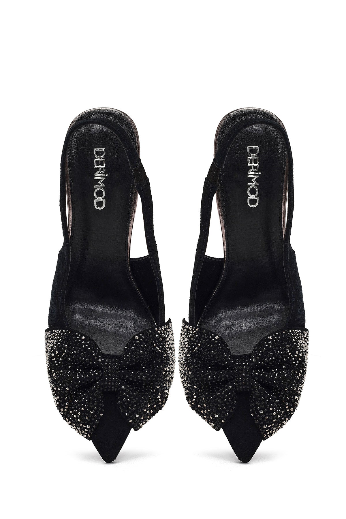 Kadın Siyah Arkası Açık Taşlı İnce Yüksek Topuklu Süet Deri Ayakkabı