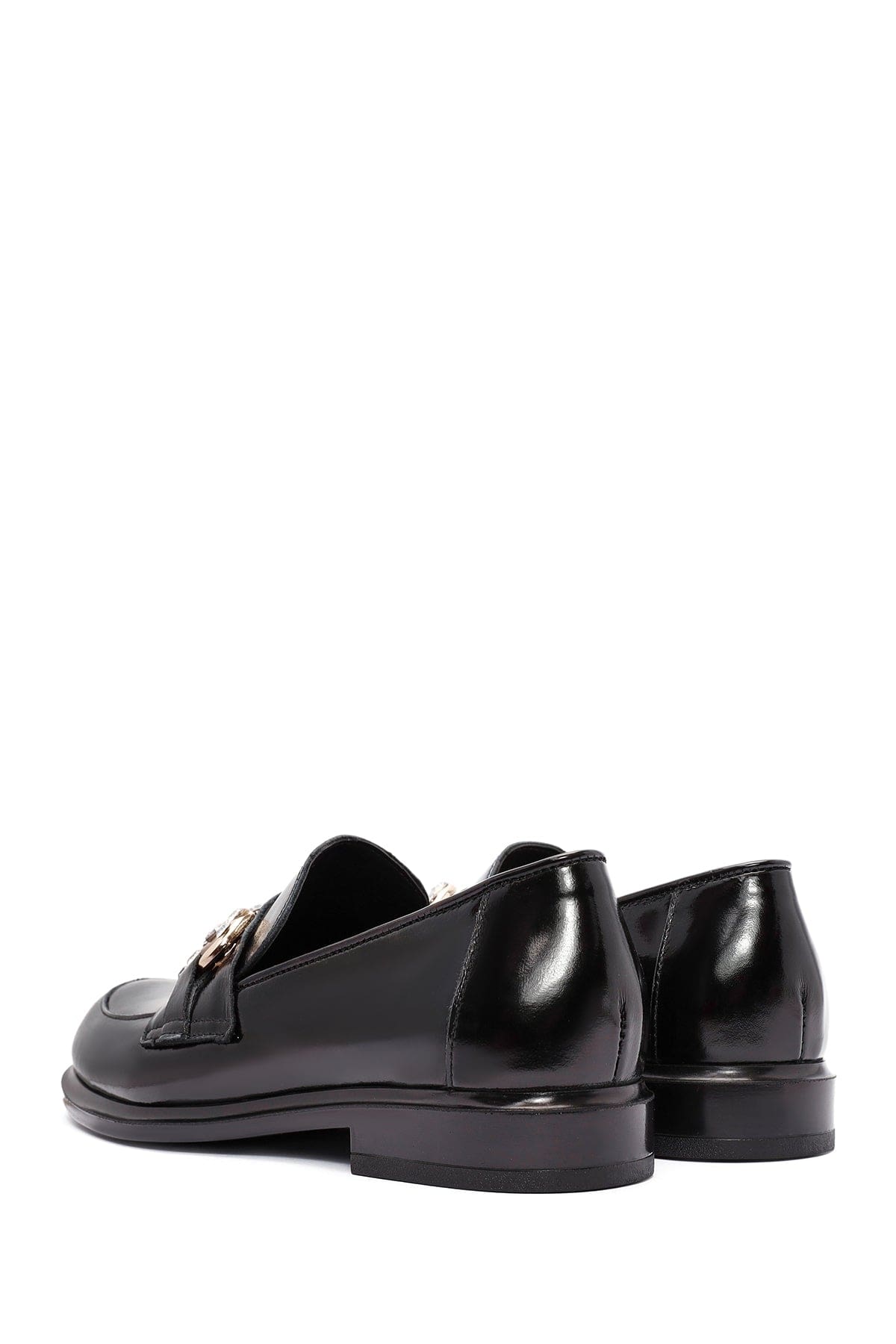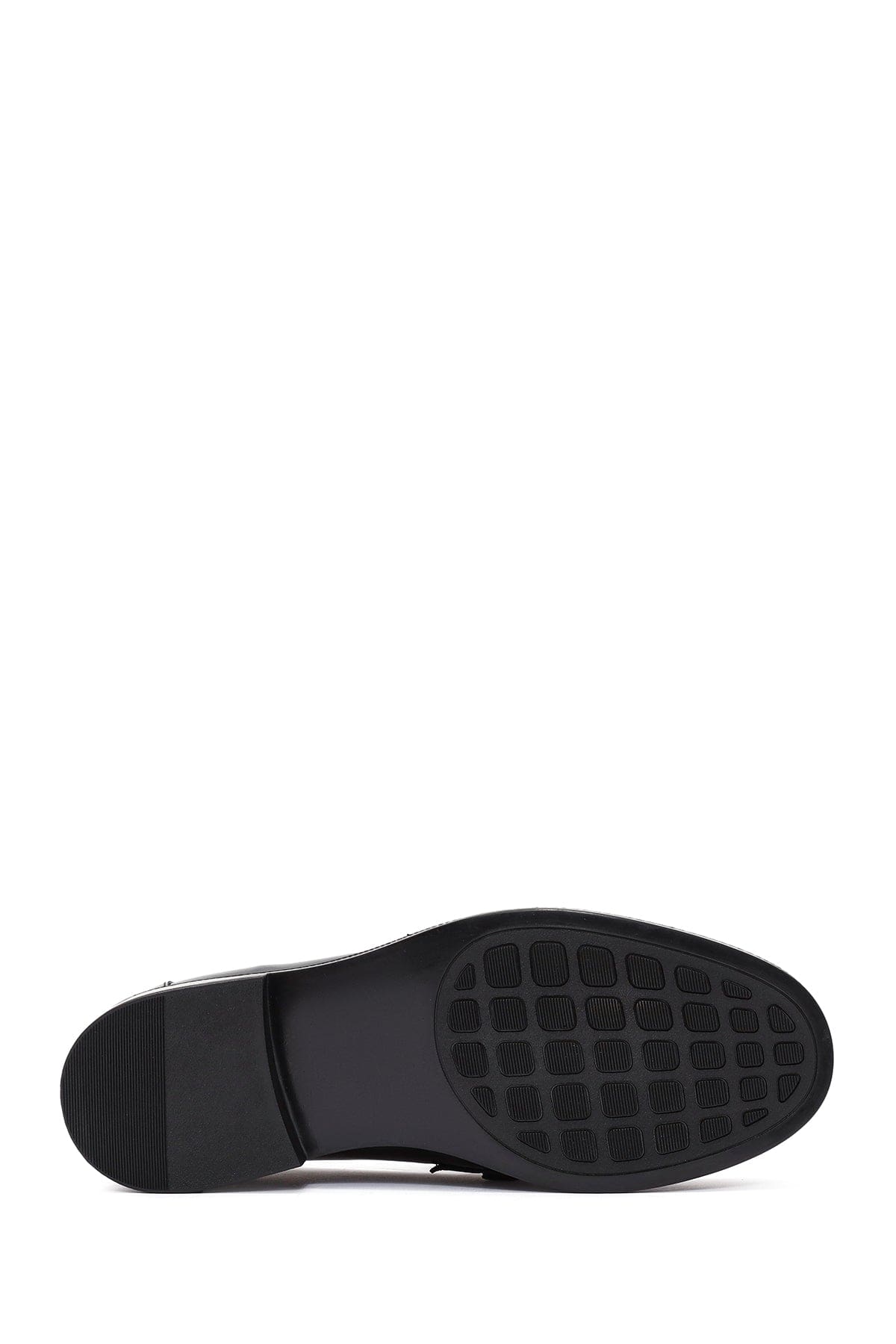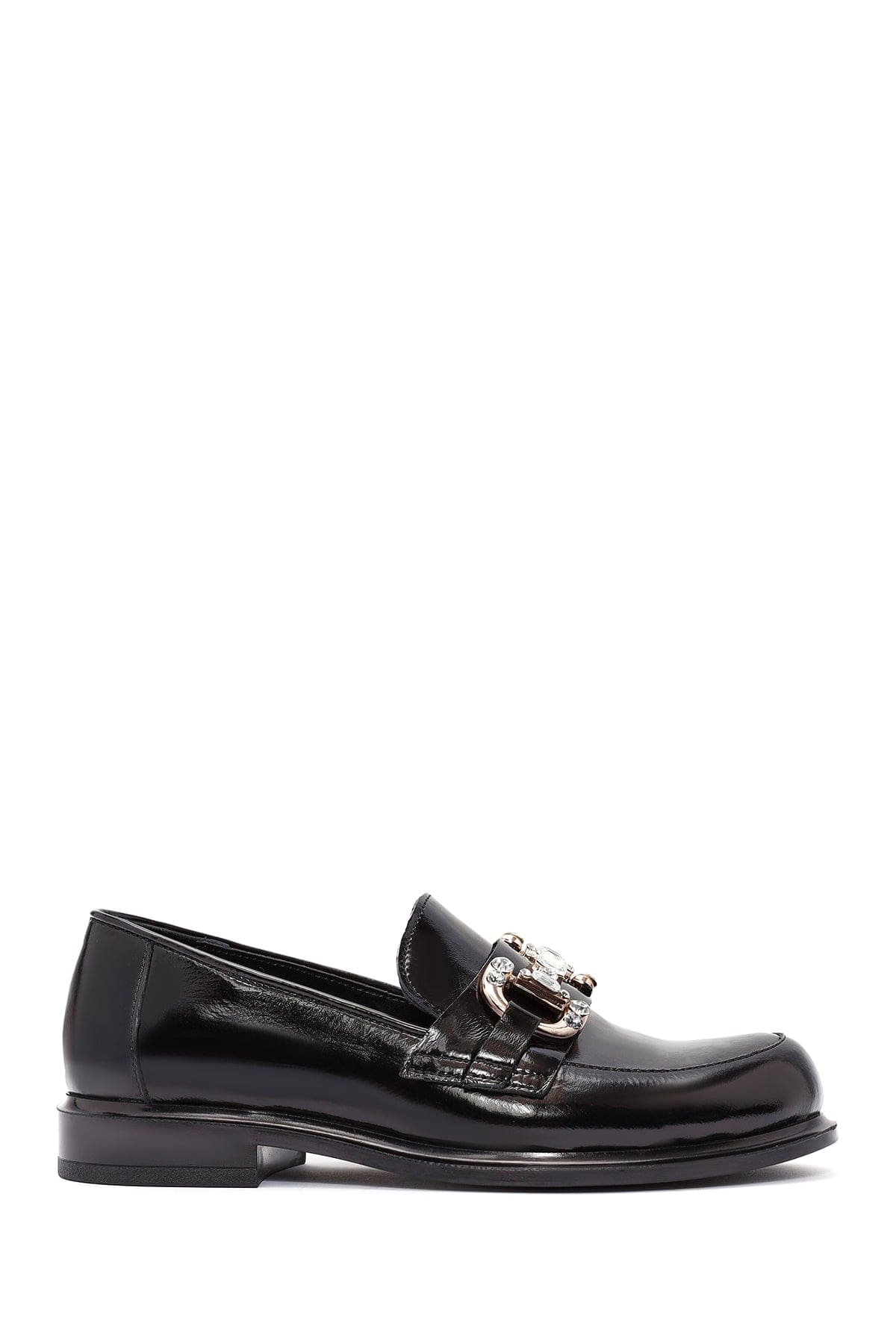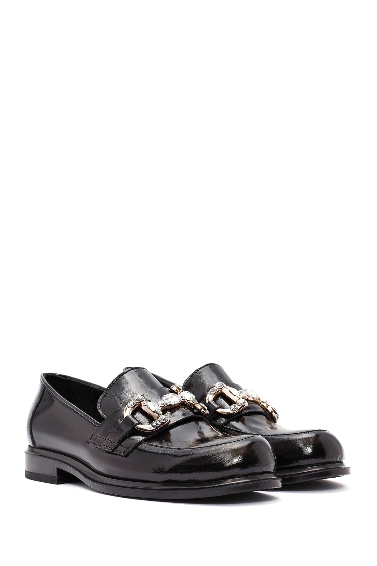 Kadın Siyah Taş Detaylı Deri Maskülen Loafer