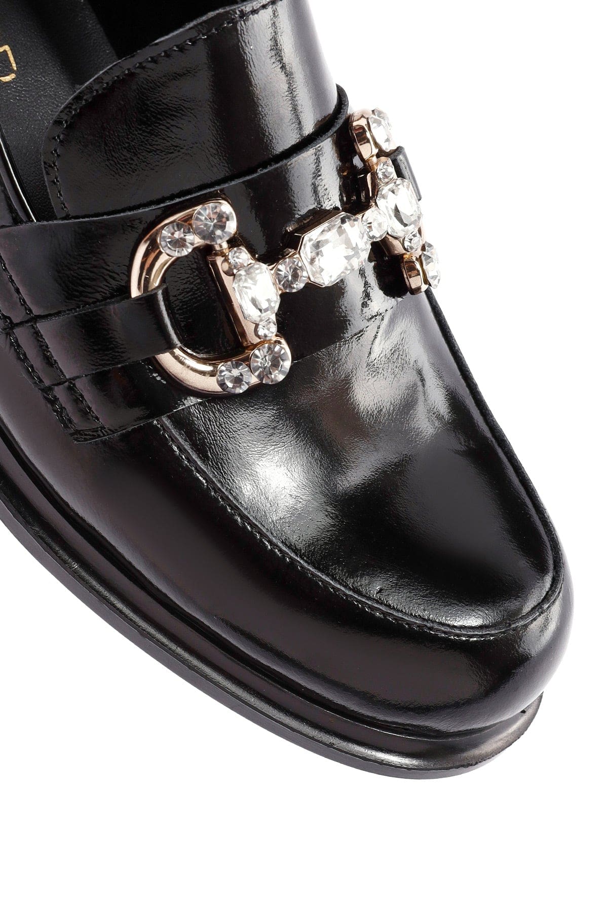 کفش لوفر زنانه مشکی چرمی با سنگ تزئینی دری مد