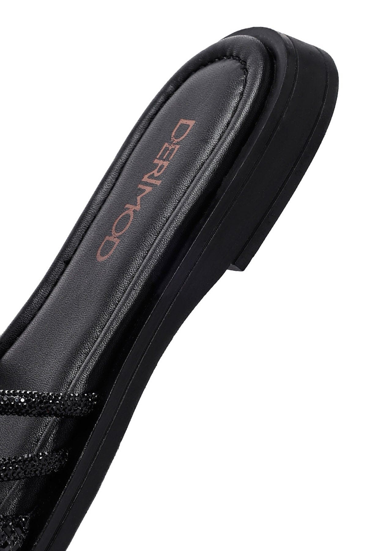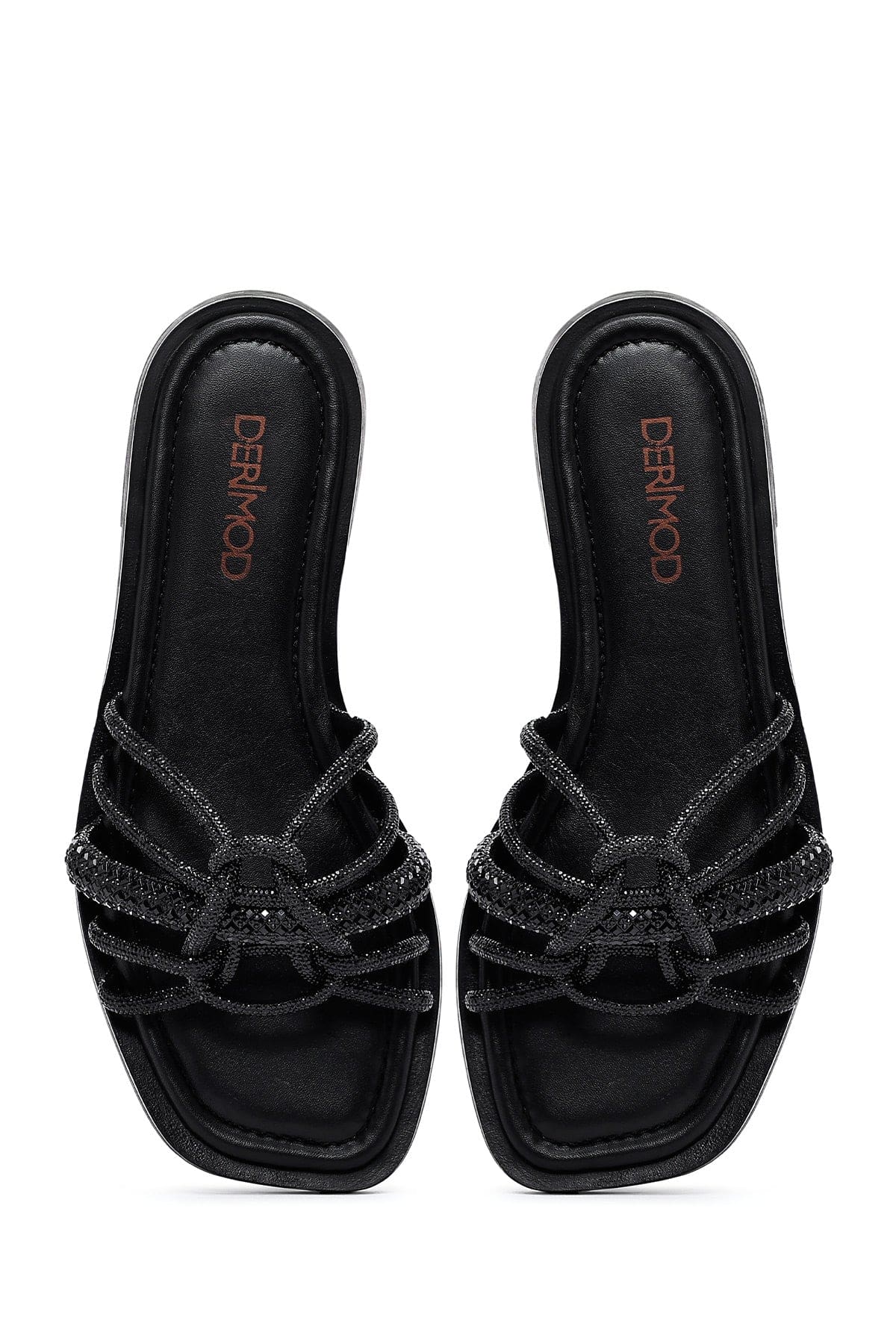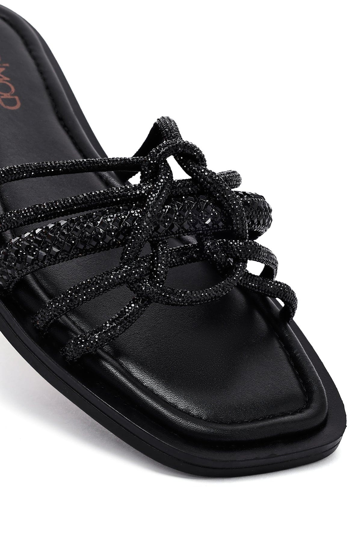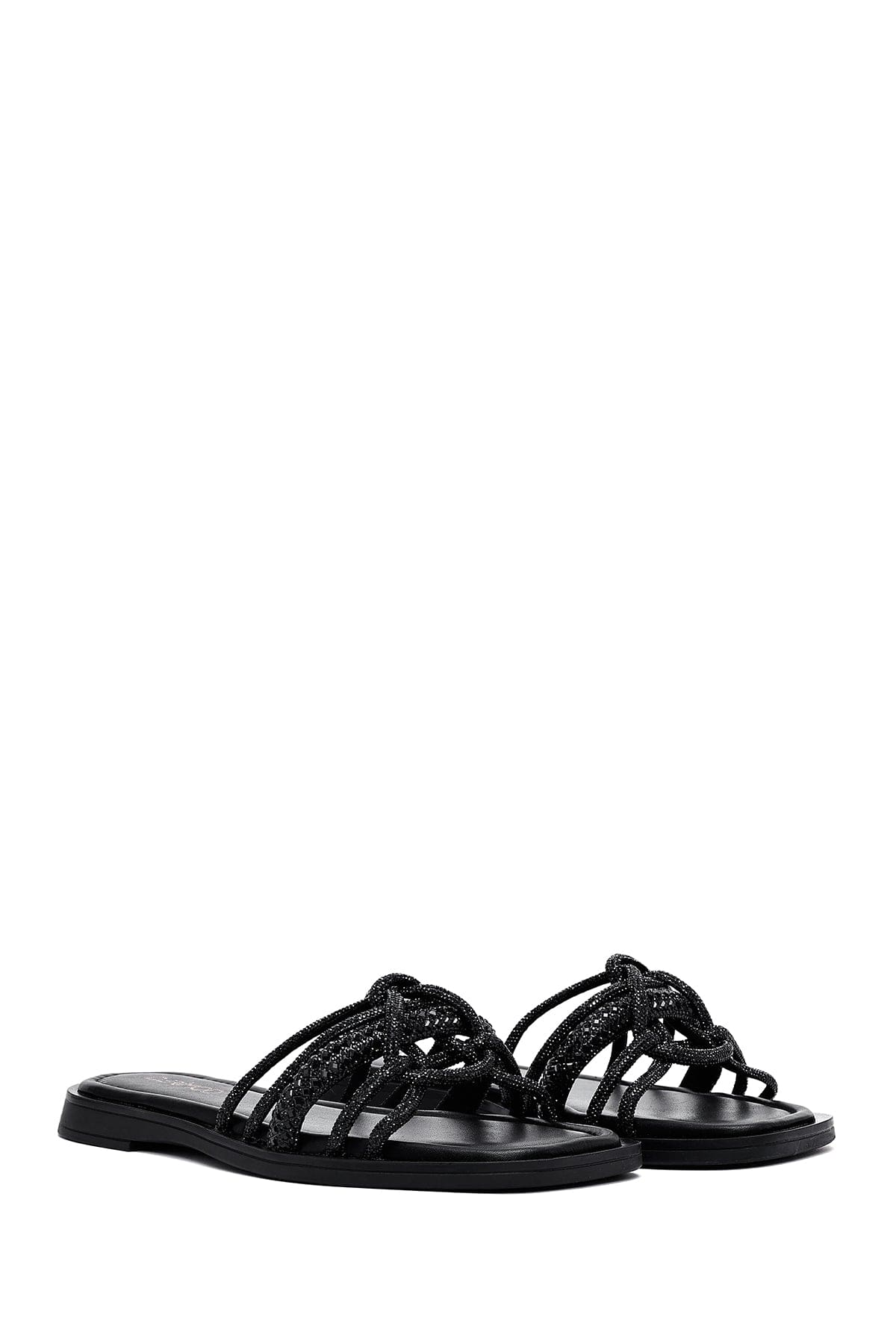 دمپایی زنانه چرم مشکی نگیندار دری مد