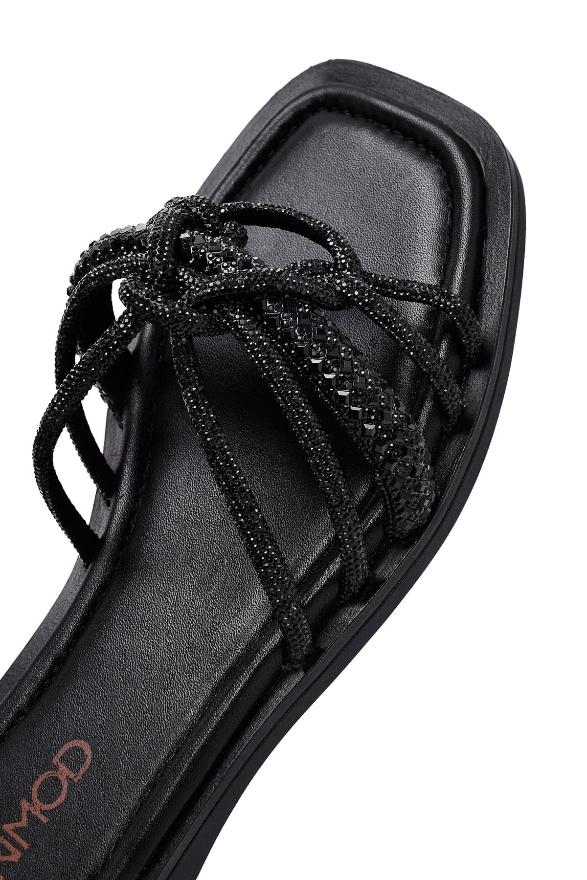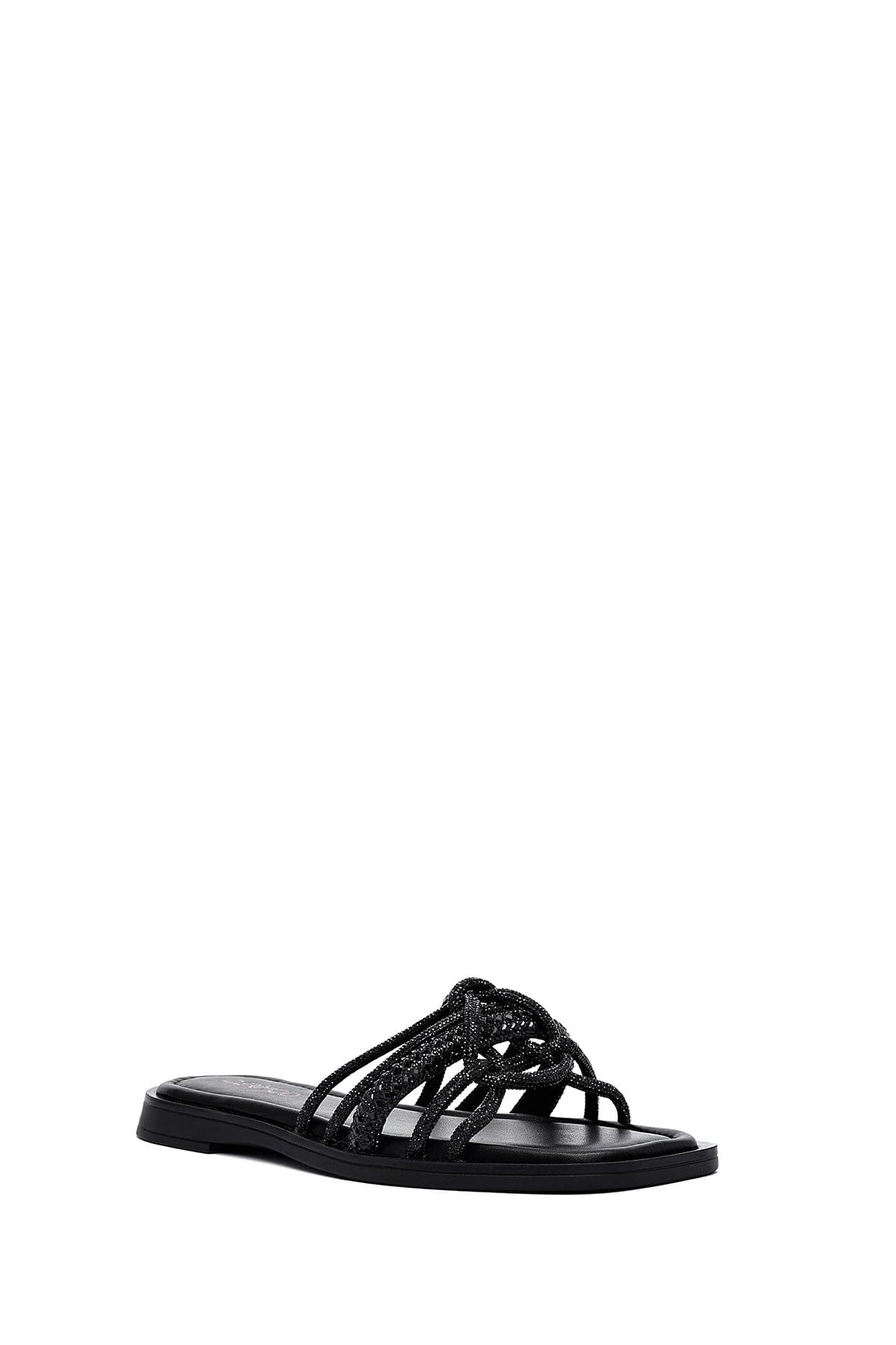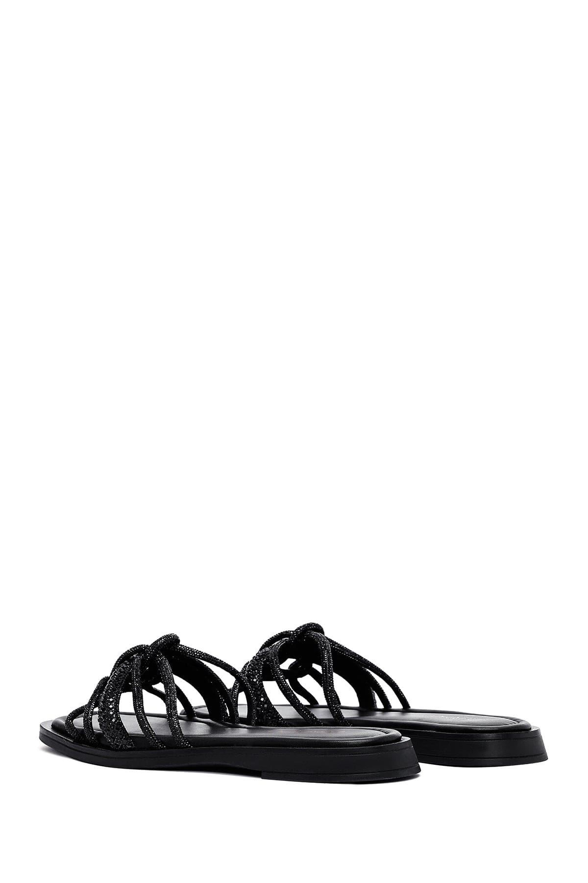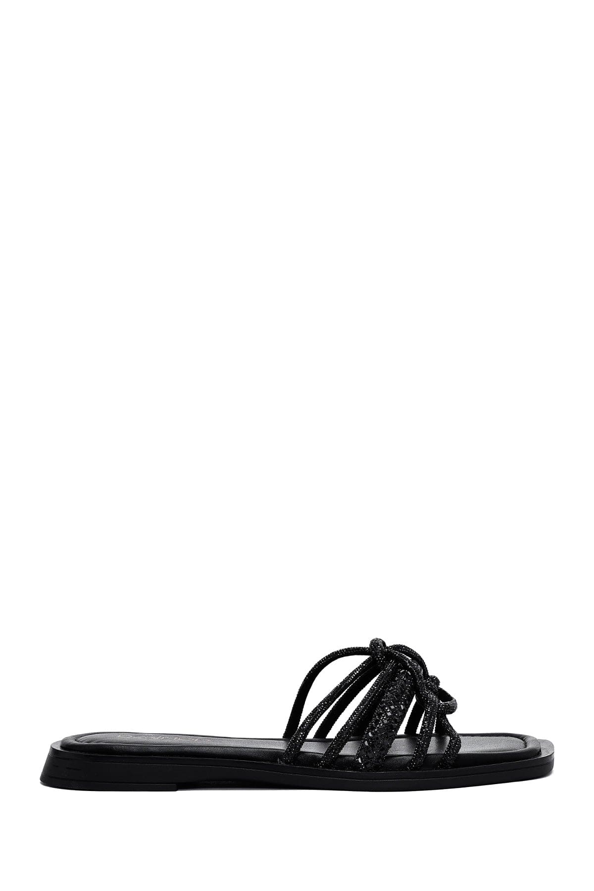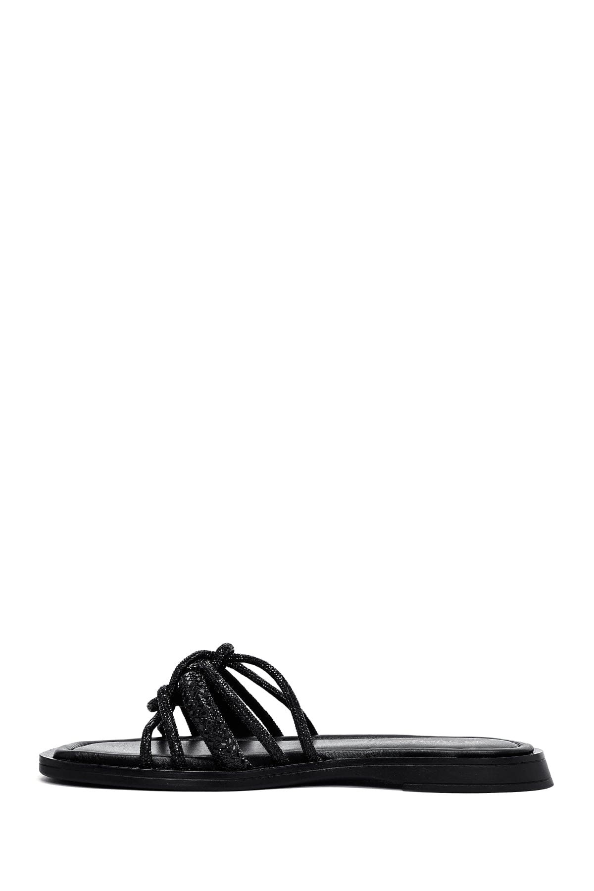 دمپایی زنانه چرم مشکی نگیندار دری مد
