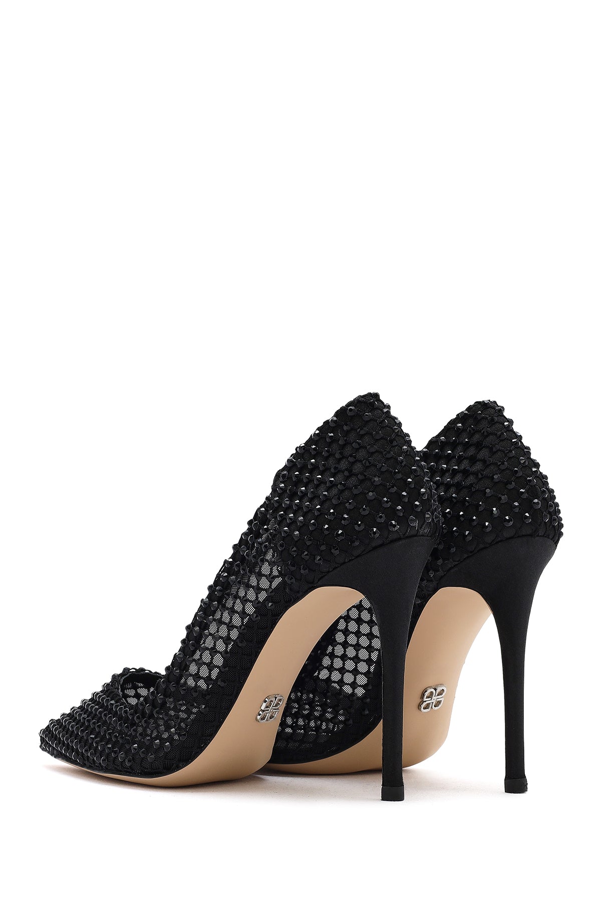 Kadın Siyah Taşlı Yüksek İnce Topuklu Deri Stiletto