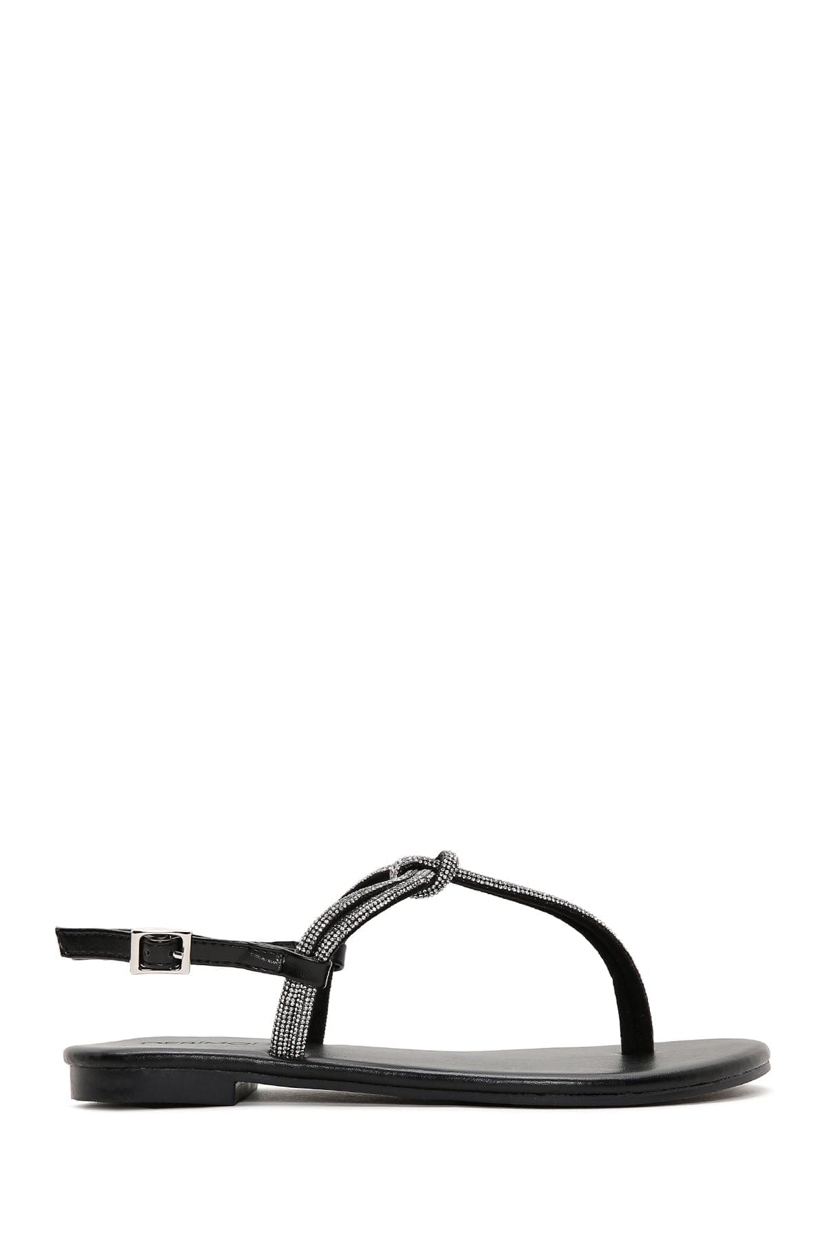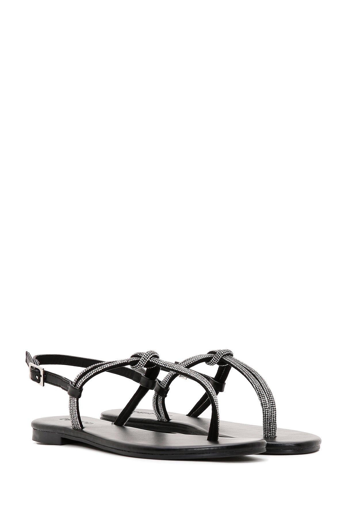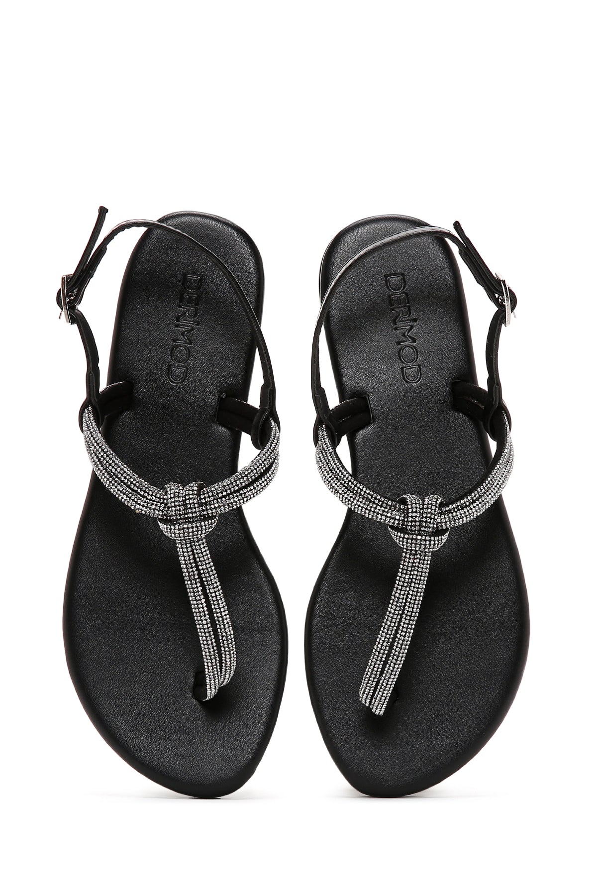 Kadın Siyah Taşlı Parmak Arası Sandalet