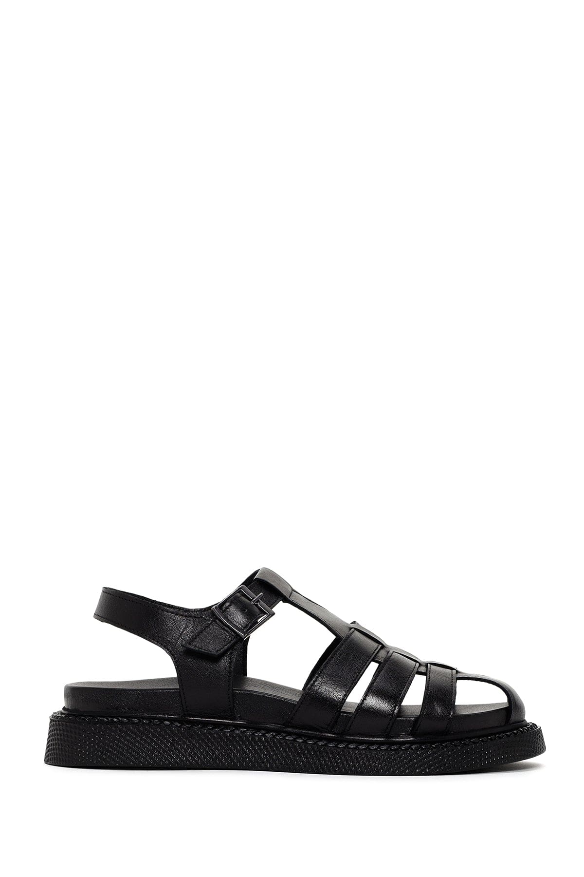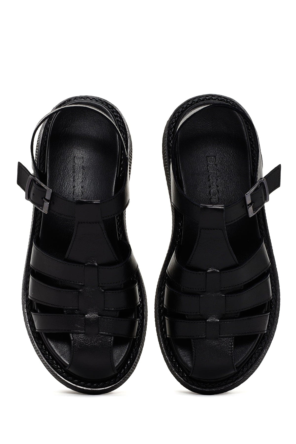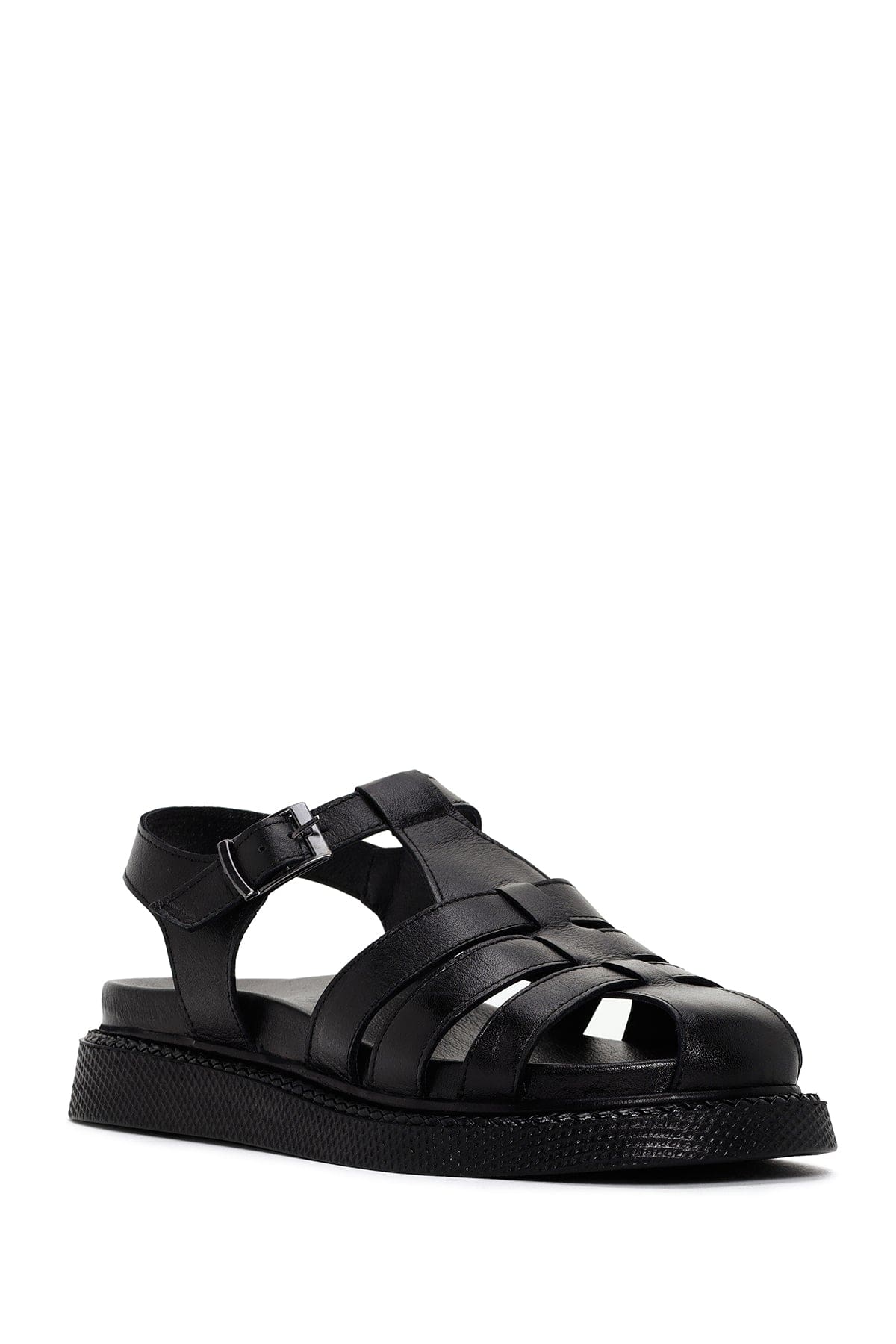 Kadın Siyah Bantlı Deri Comfort Sandalet