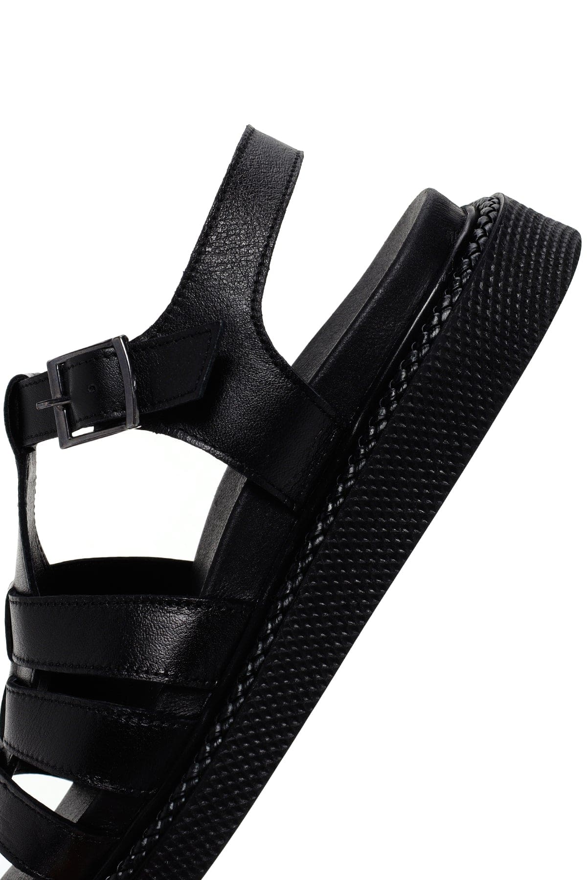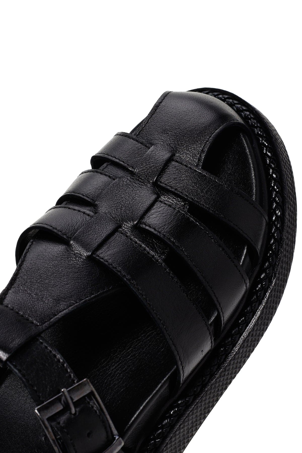 صندل زنانه مشکی بندی چرمی راحتی دری مد