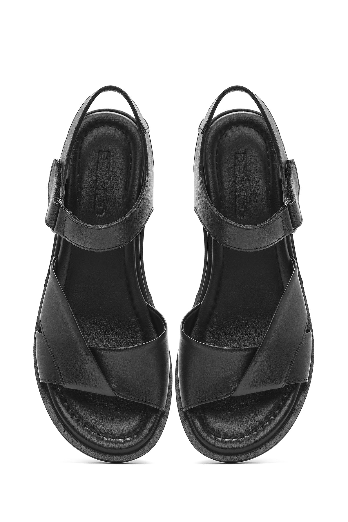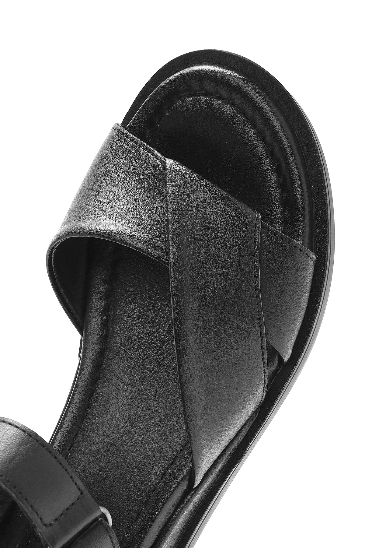 Kadın Siyah Bantlı Deri Sandalet
