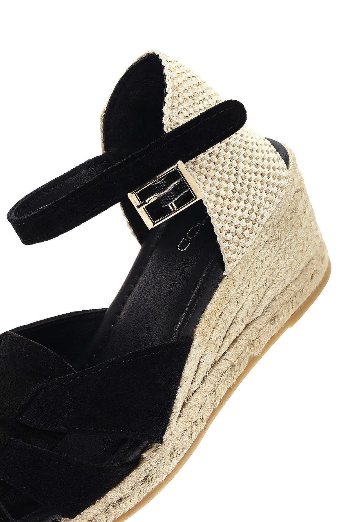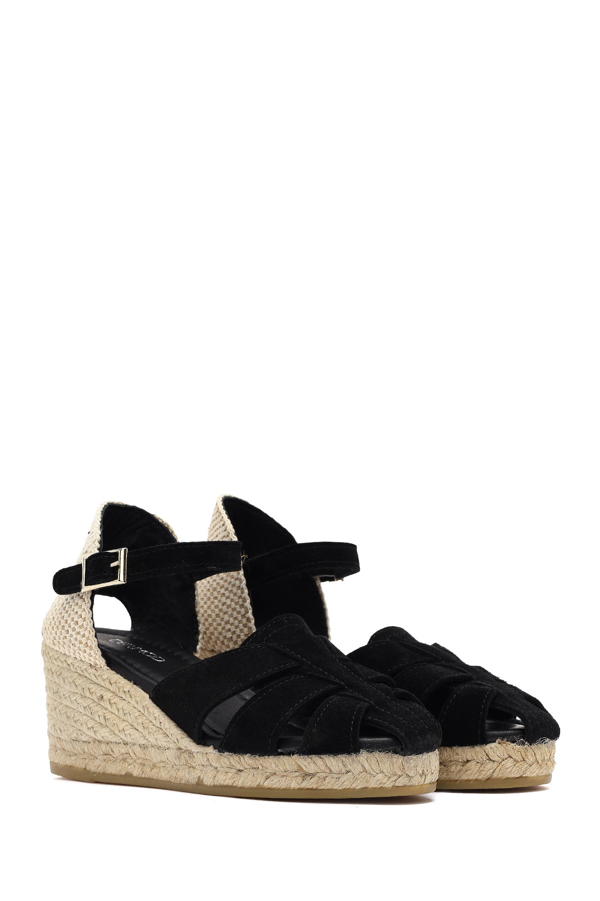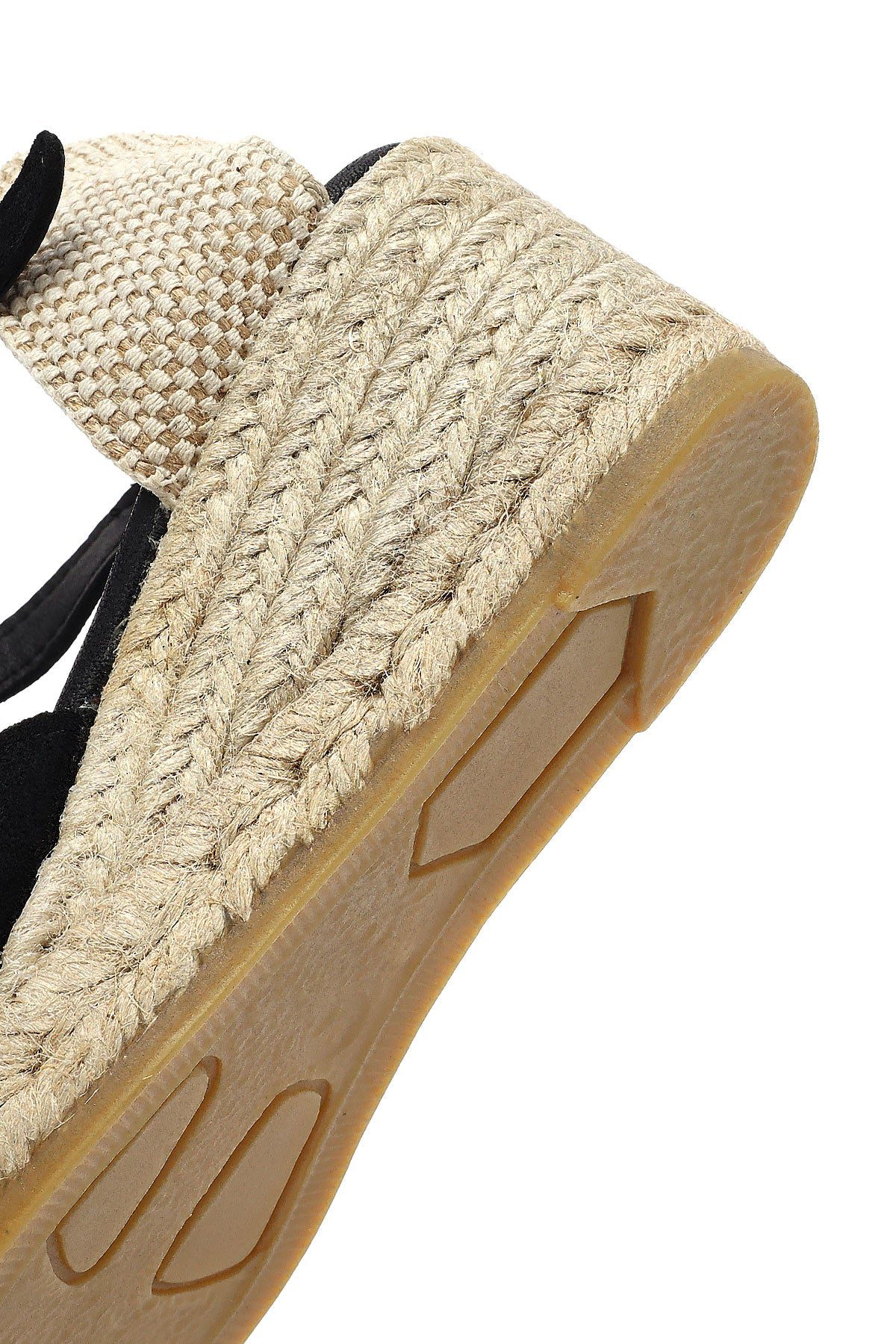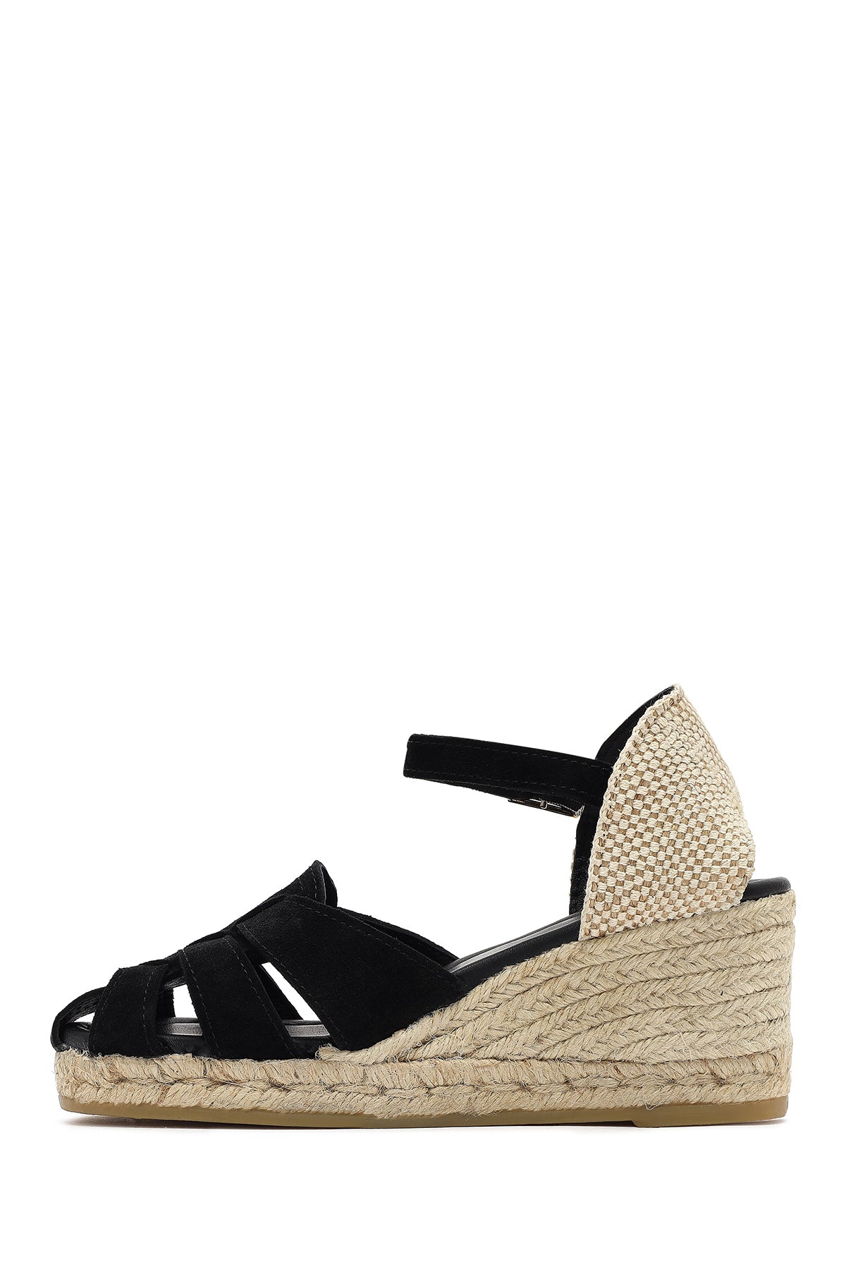 Kadın Siyah Bilekten Bantlı Dolgu Topuklu Süet Deri Espadril Sandalet