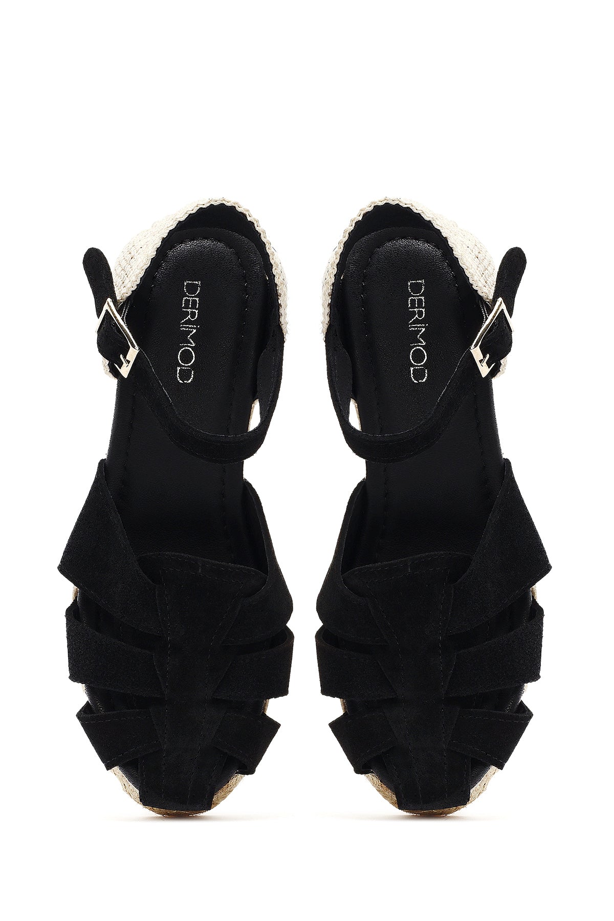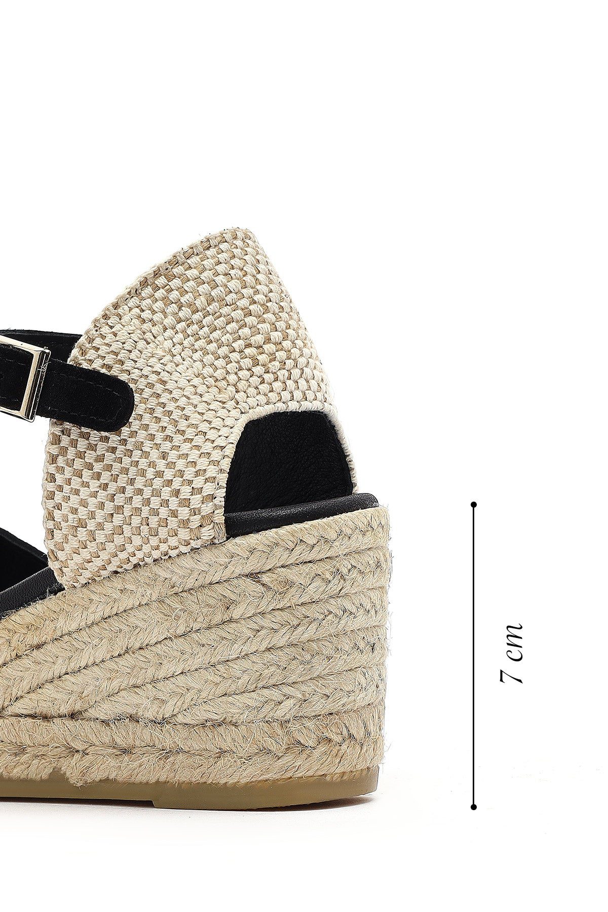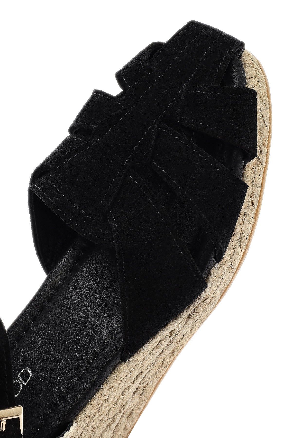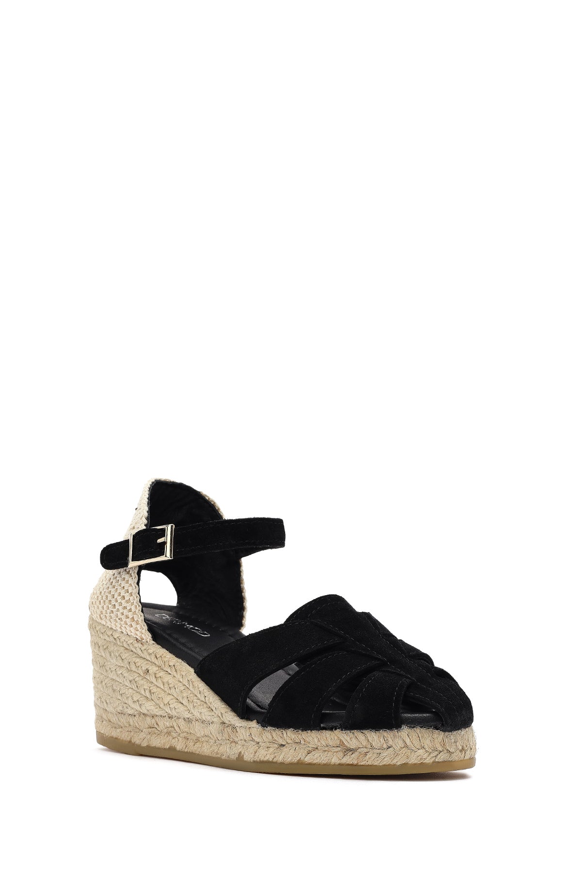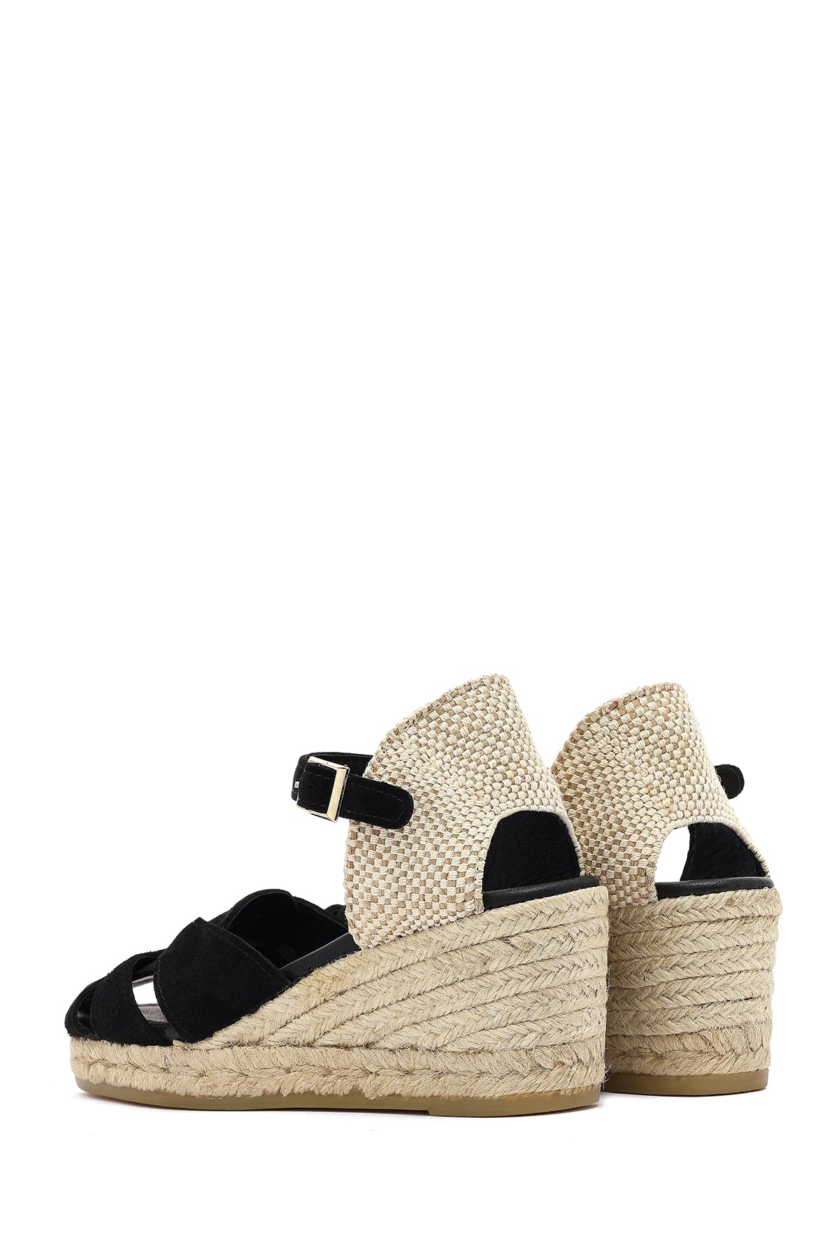 Kadın Siyah Bilekten Bantlı Dolgu Topuklu Süet Deri Espadril Sandalet