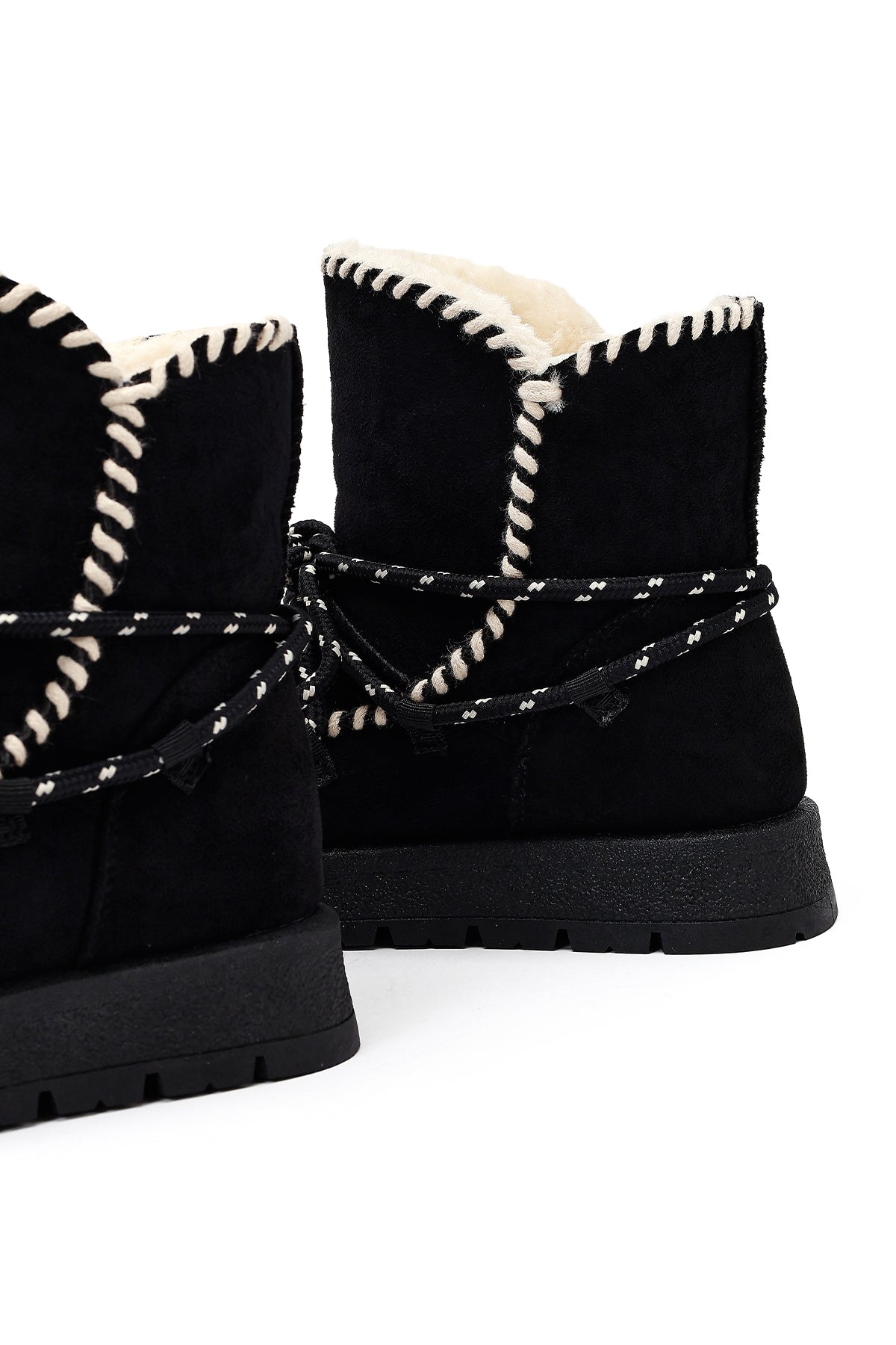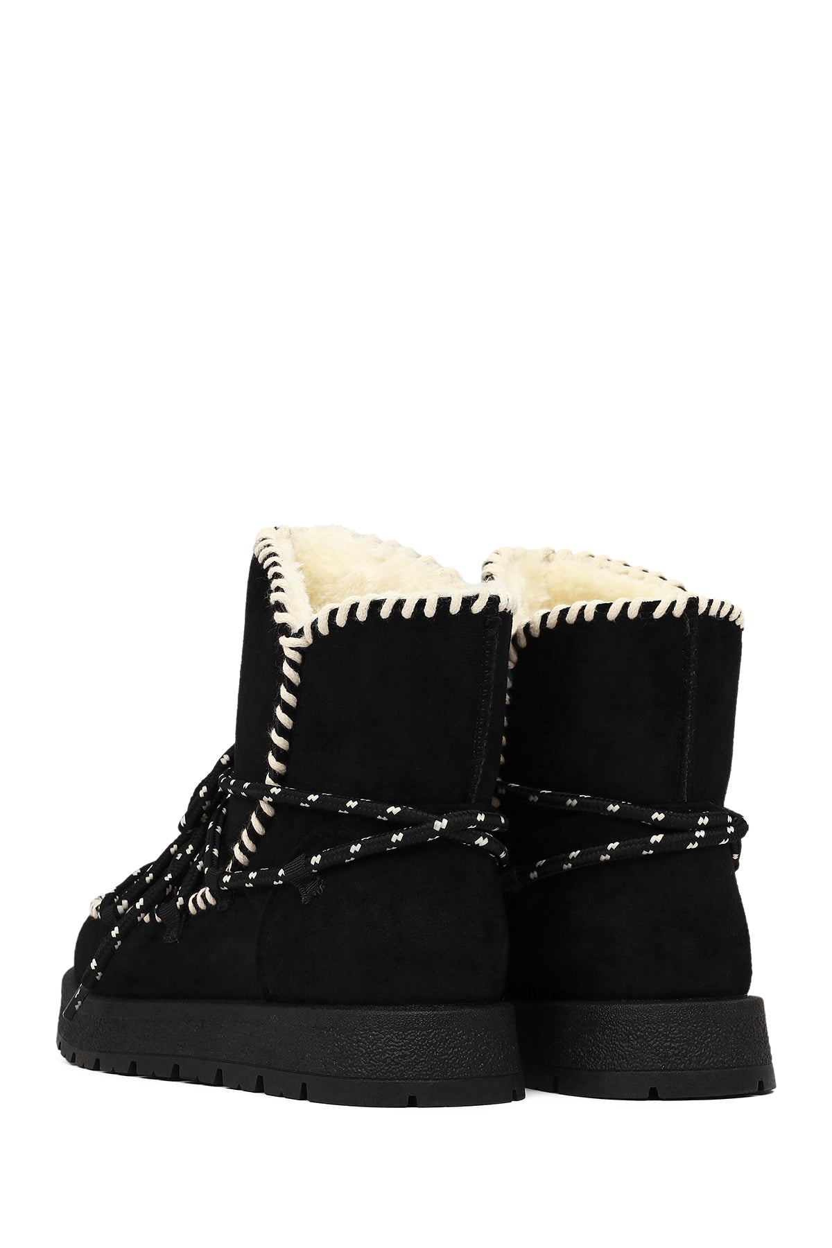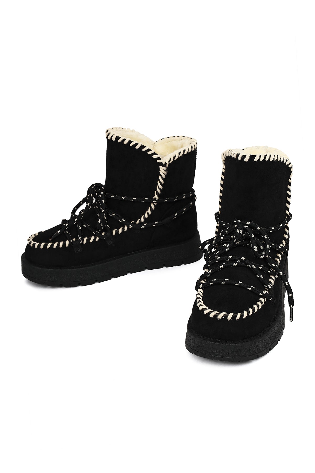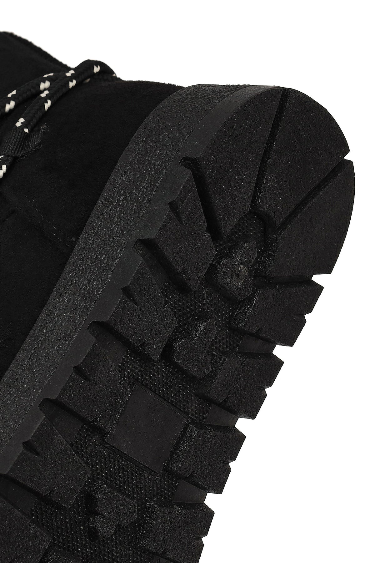 Kadın Siyah Bağcıklı Kalın Tabanlı Süet Teddy Bot