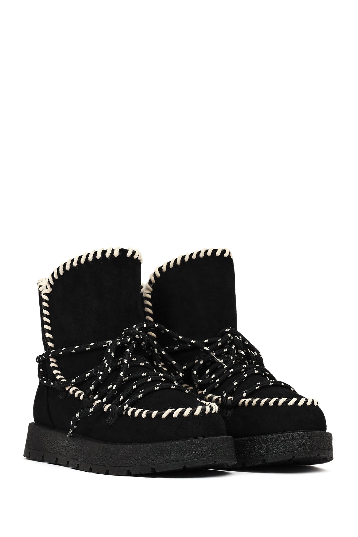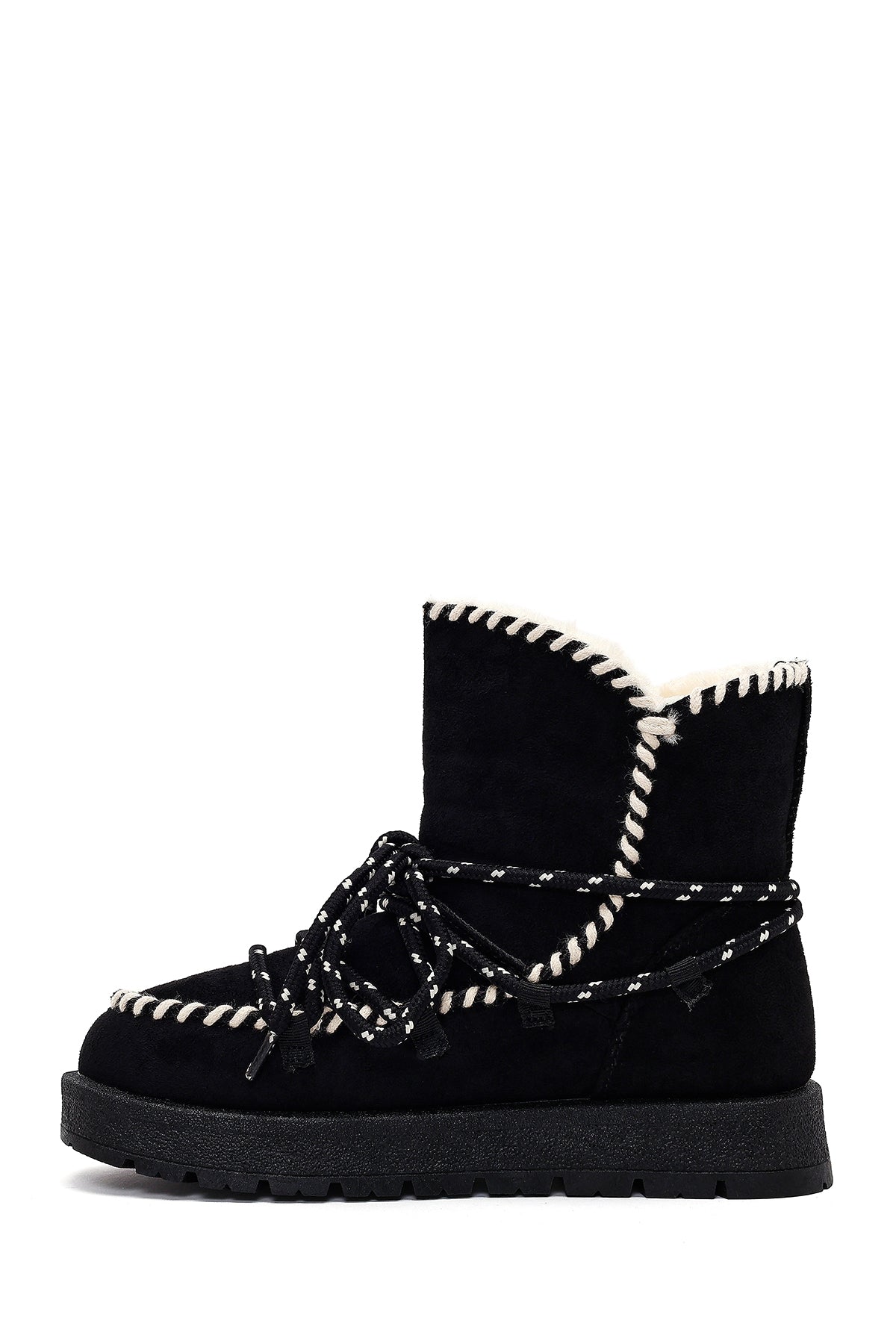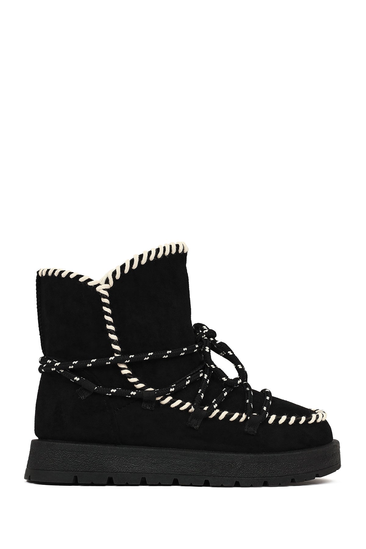 Kadın Siyah Bağcıklı Kalın Tabanlı Süet Teddy Bot