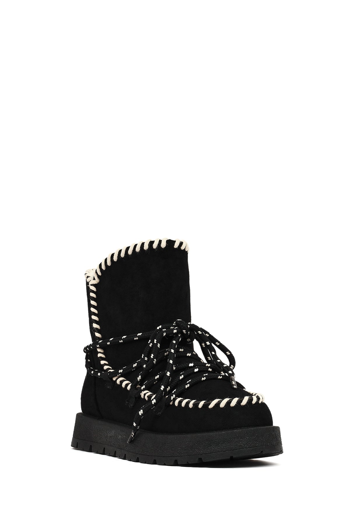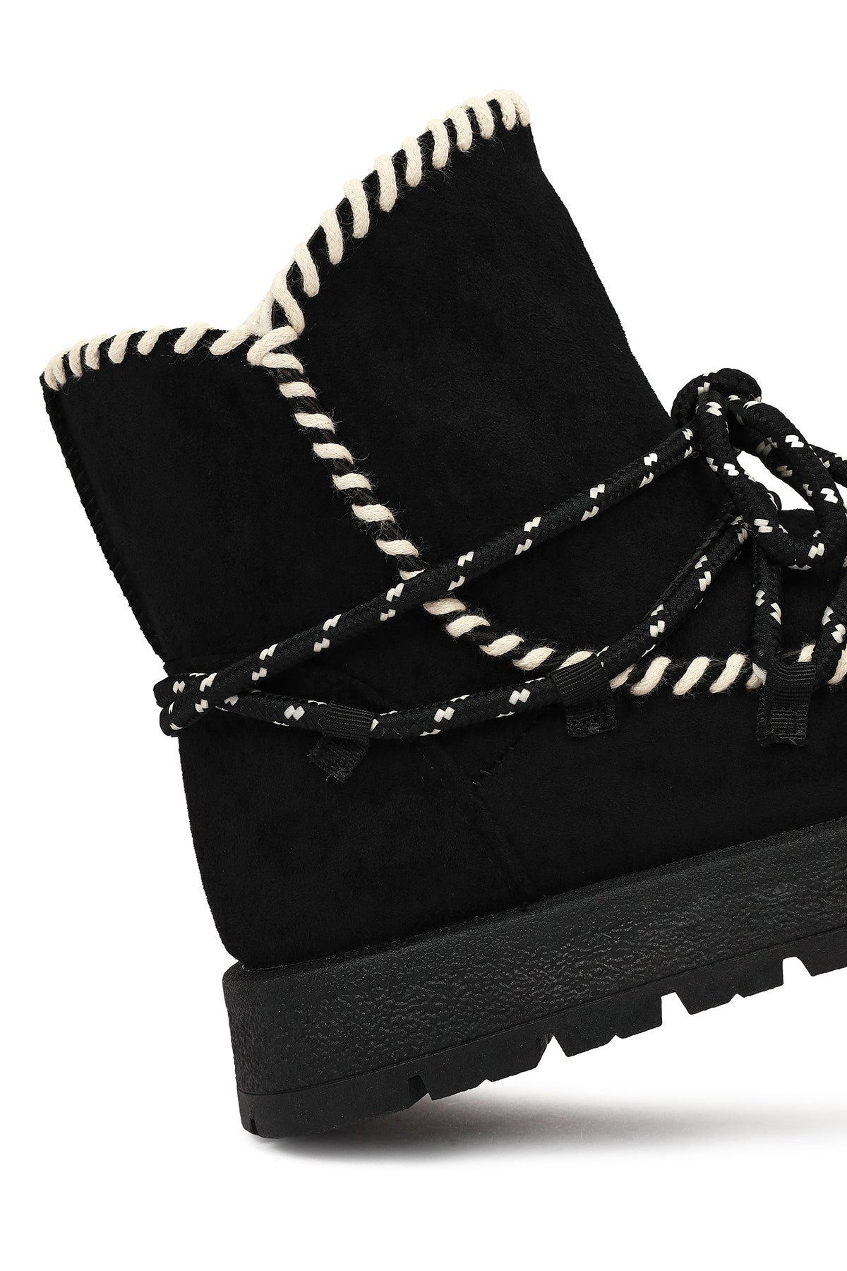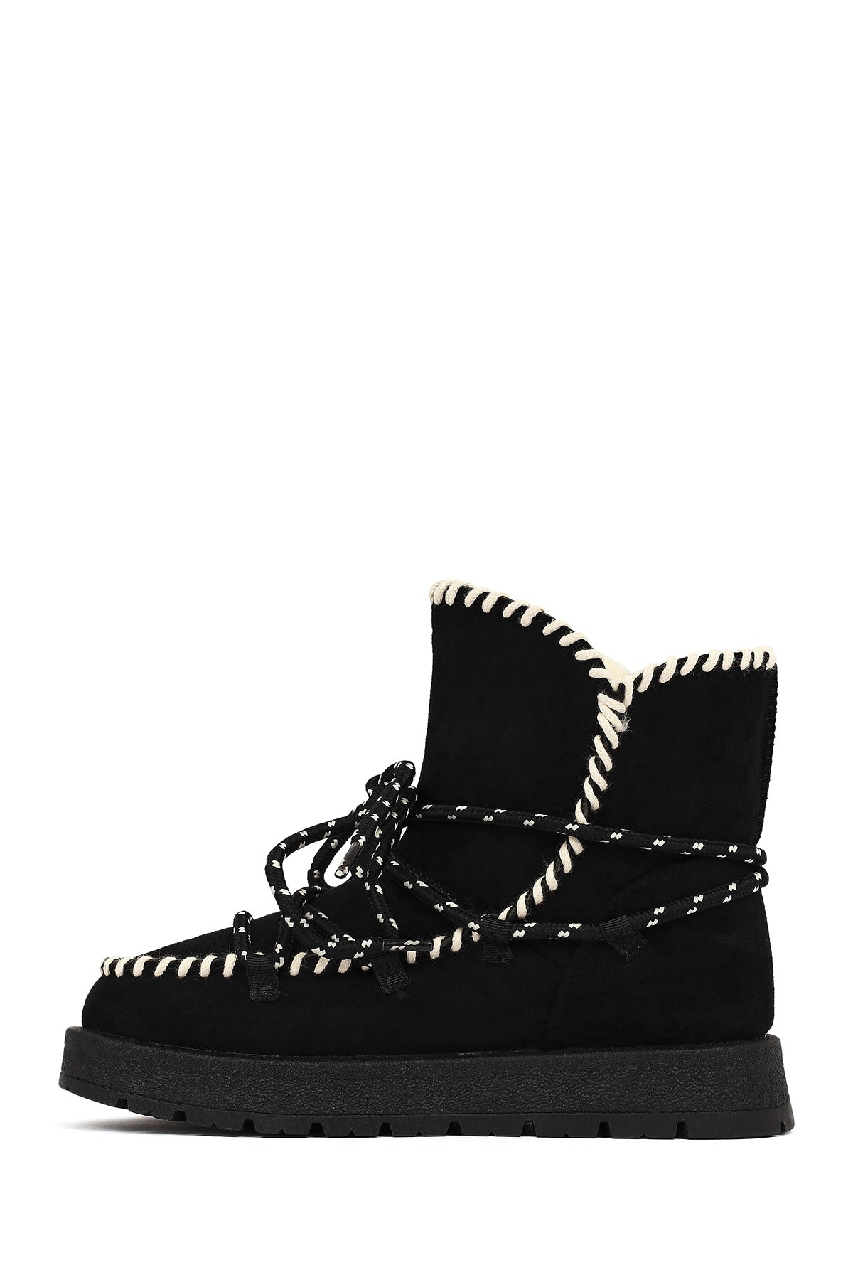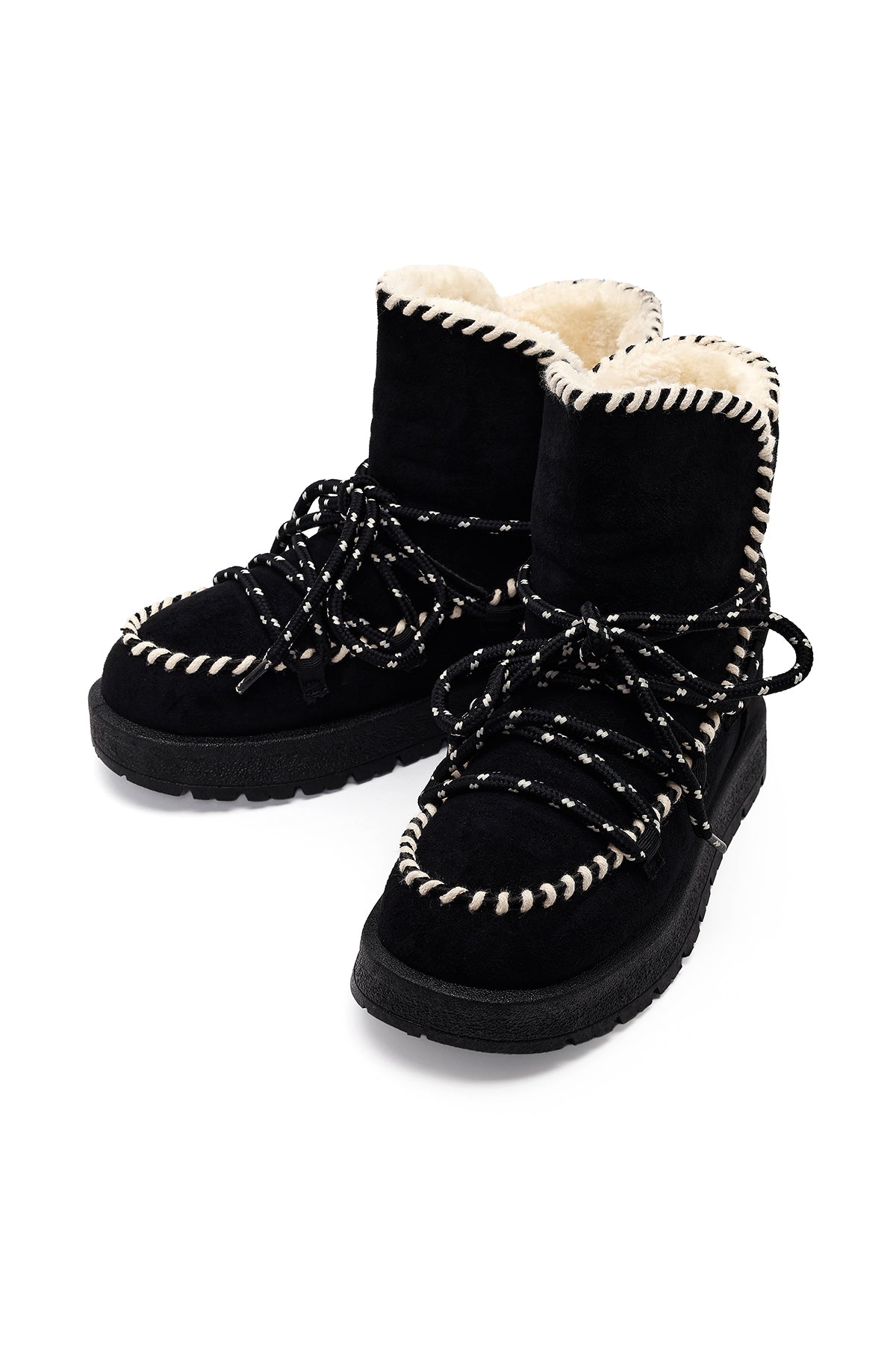 Kadın Siyah Bağcıklı Kalın Tabanlı Süet Teddy Bot