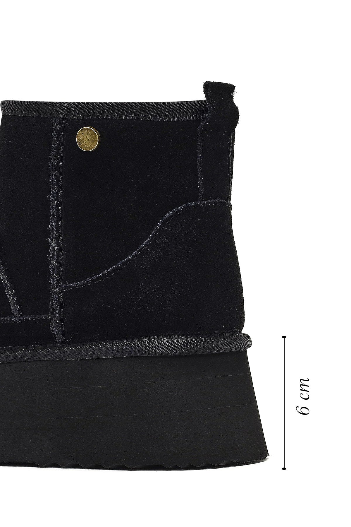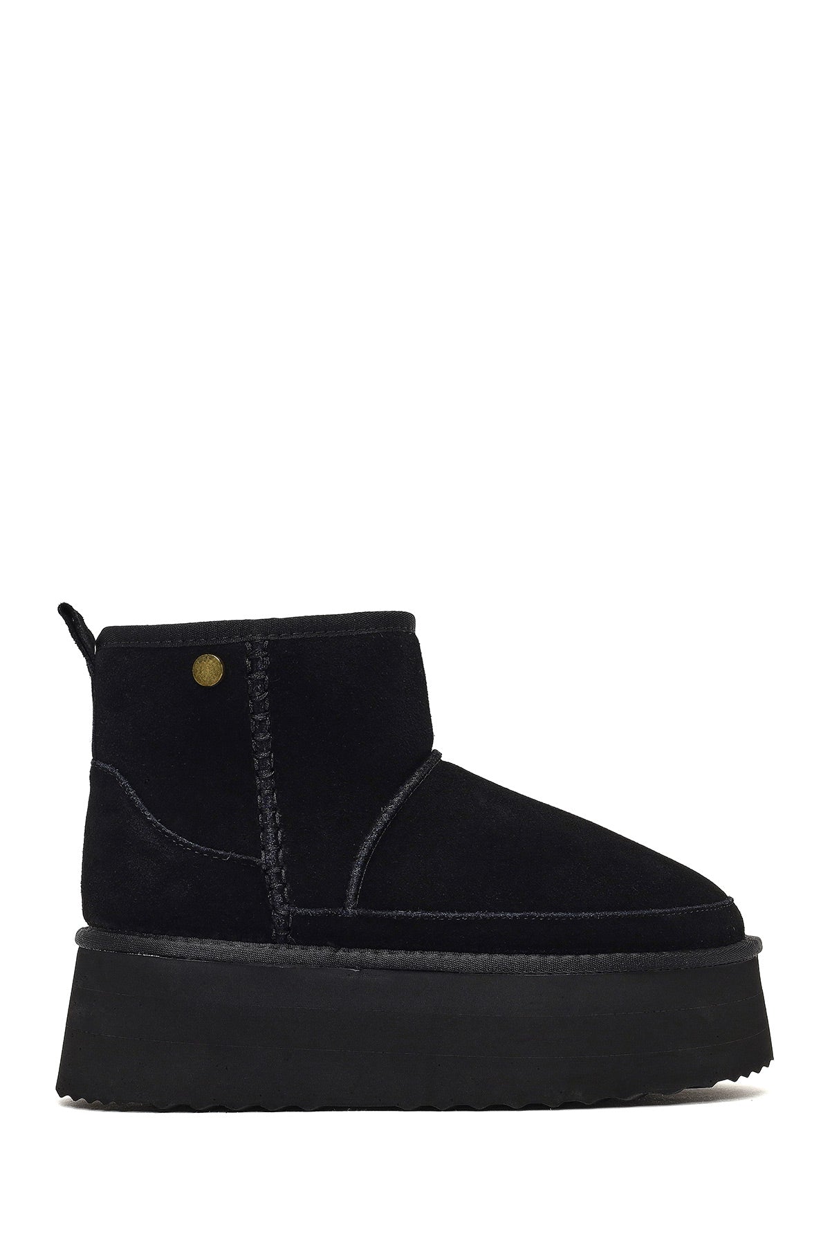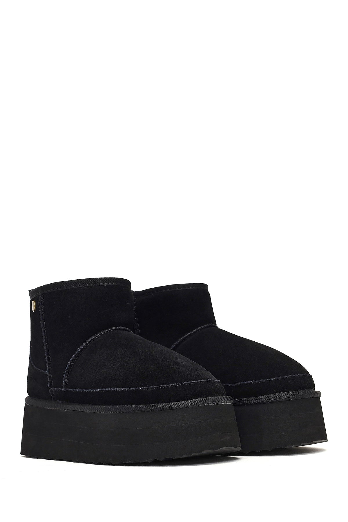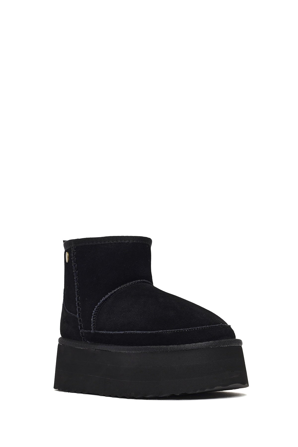 Kadın Siyah Kalın Tabanlı Süet Deri Teddy Bot