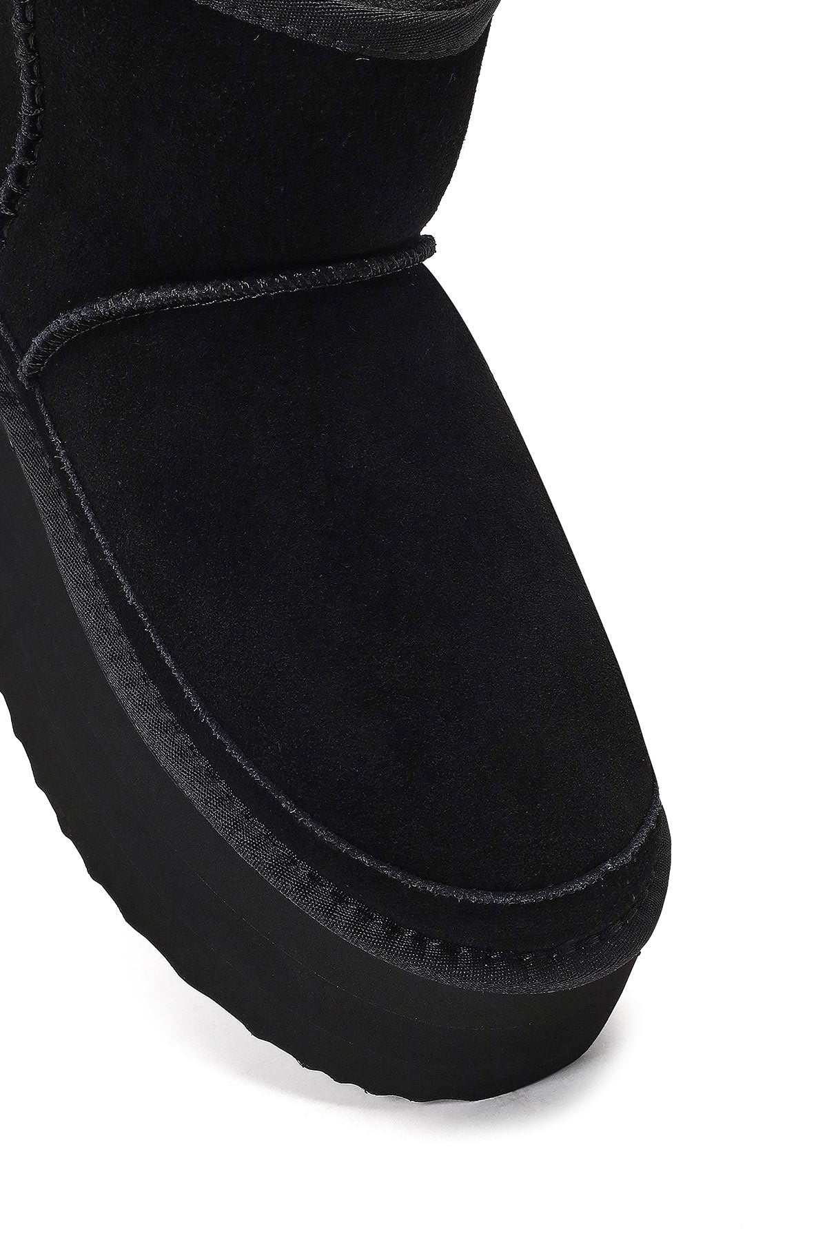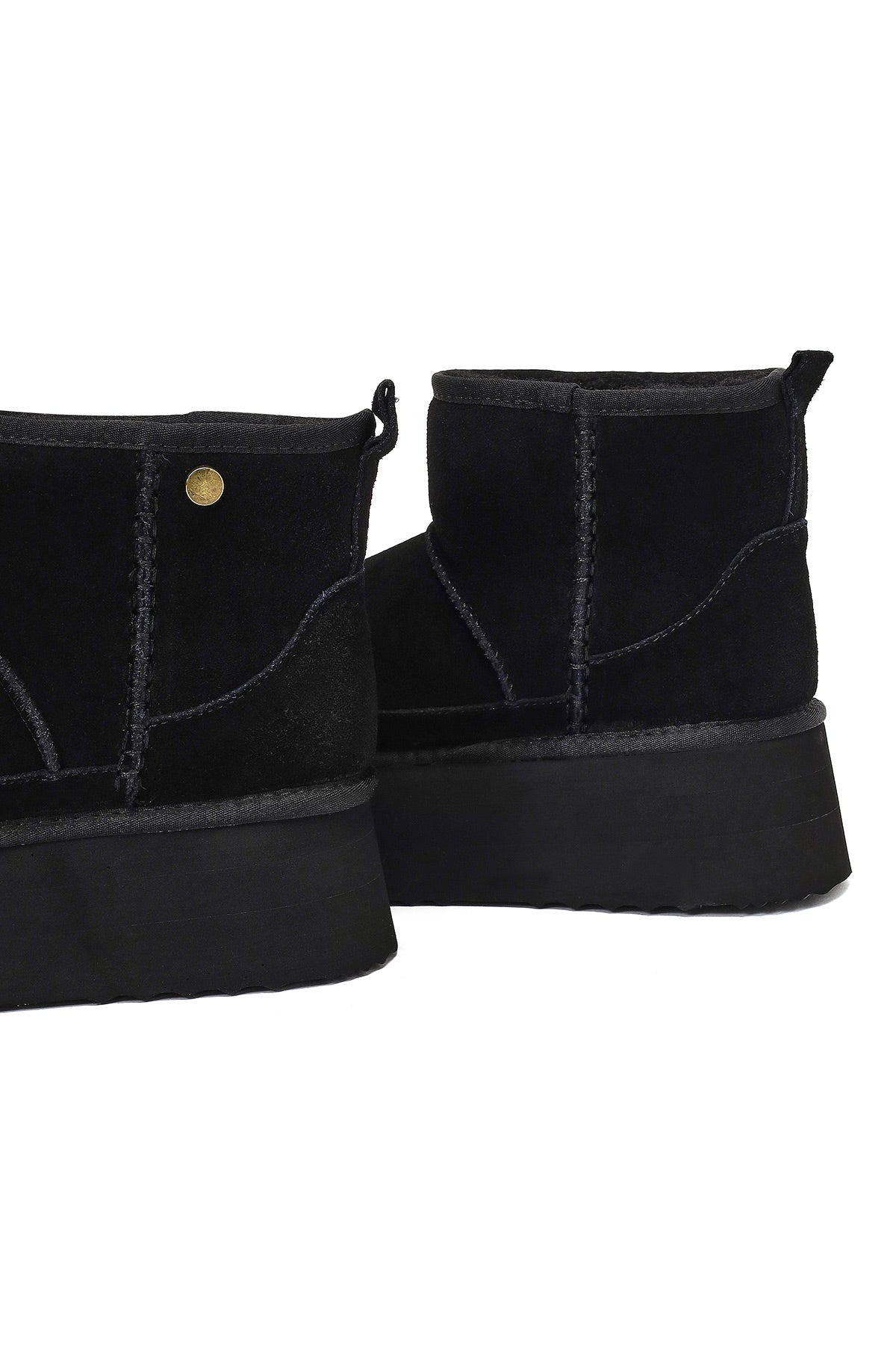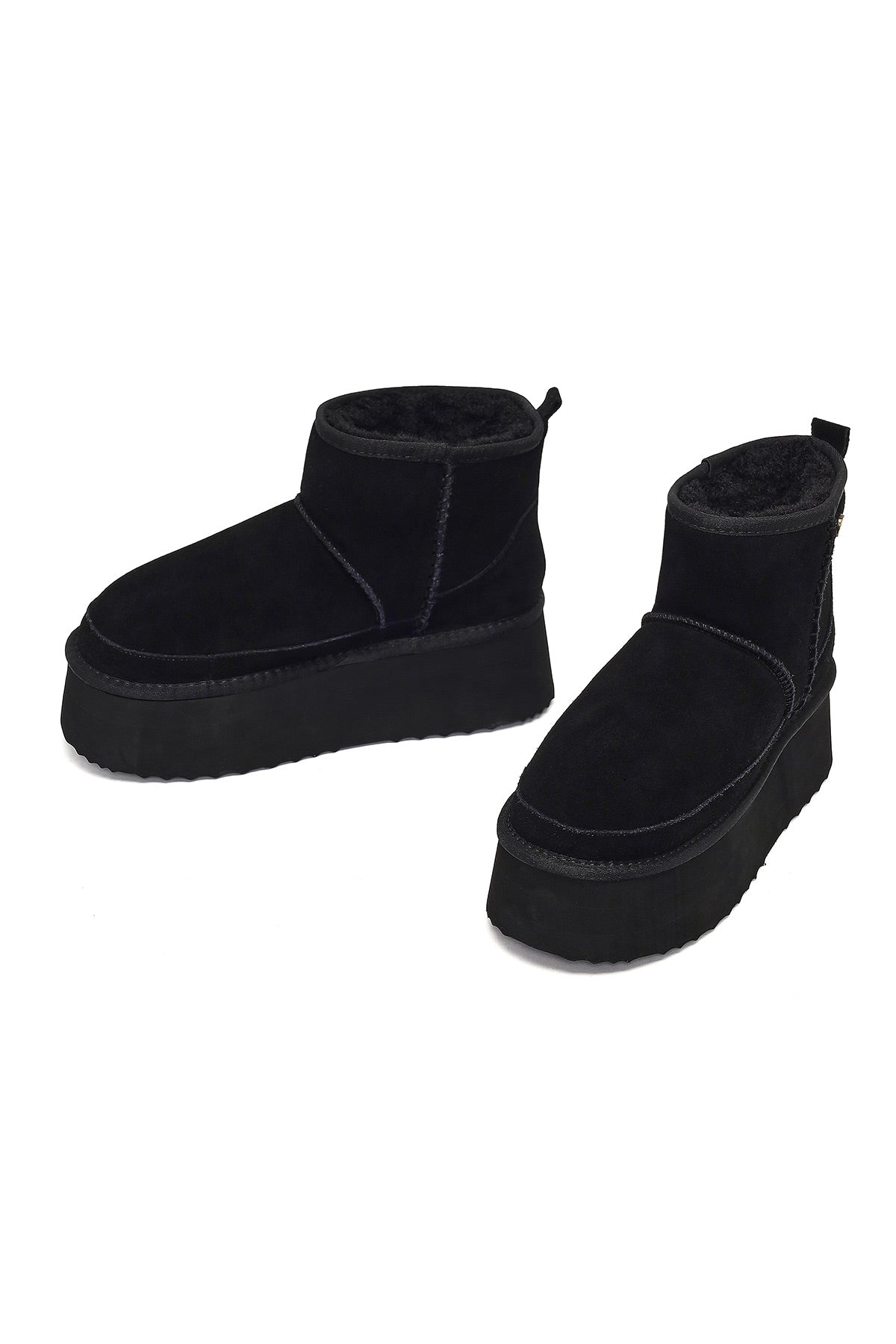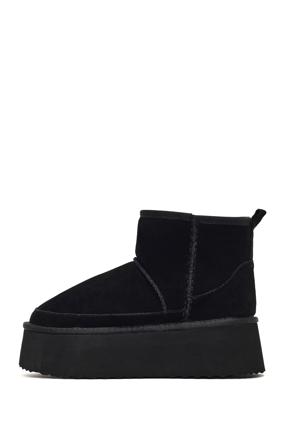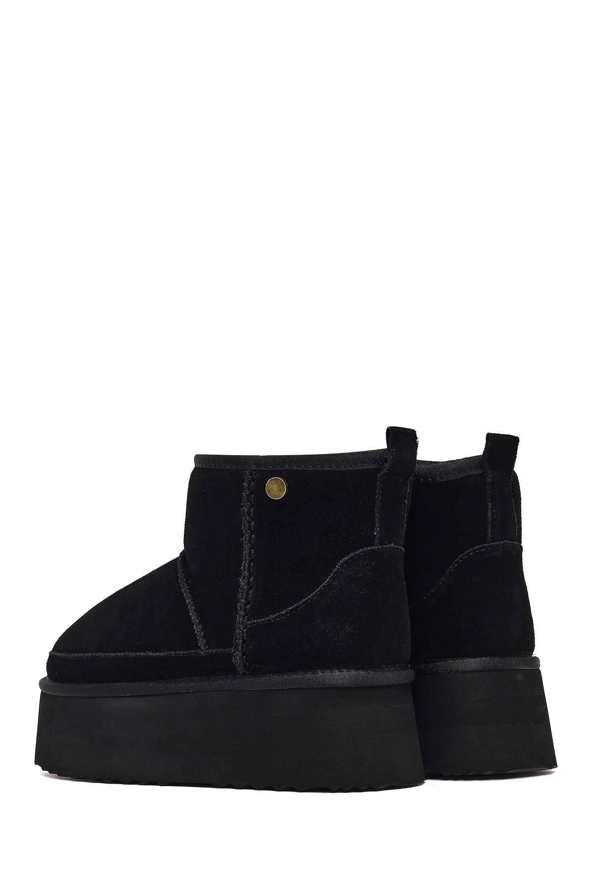 Kadın Siyah Kalın Tabanlı Süet Deri Teddy Bot