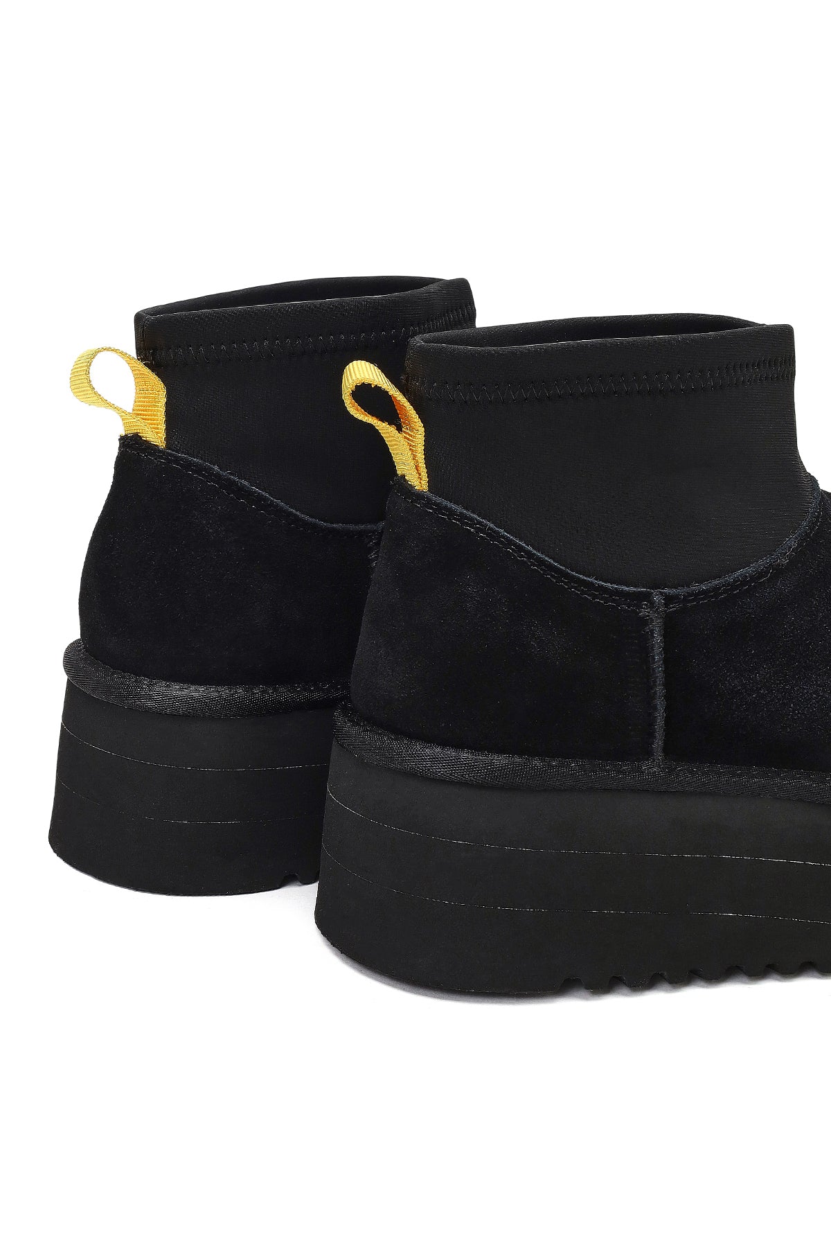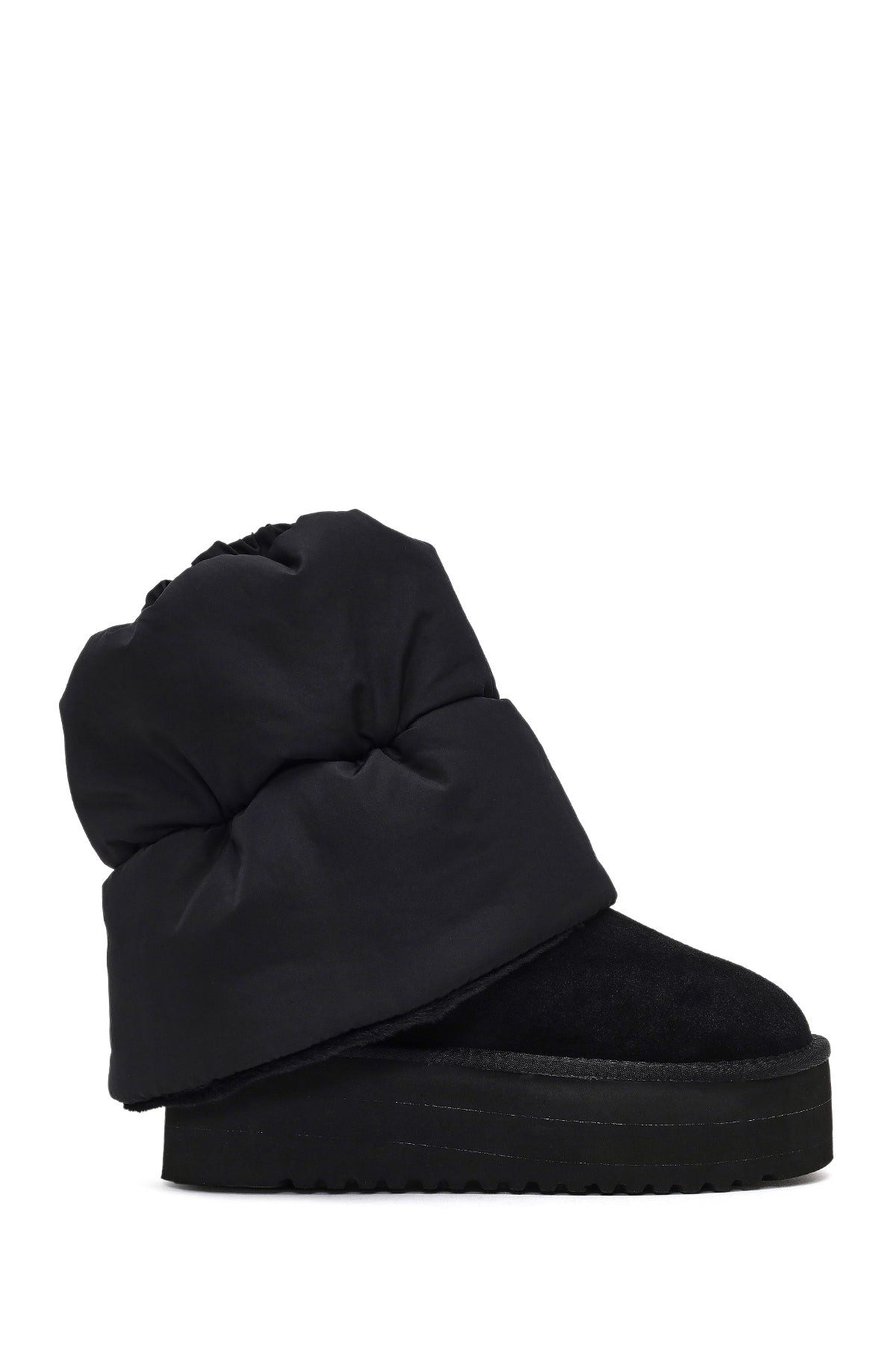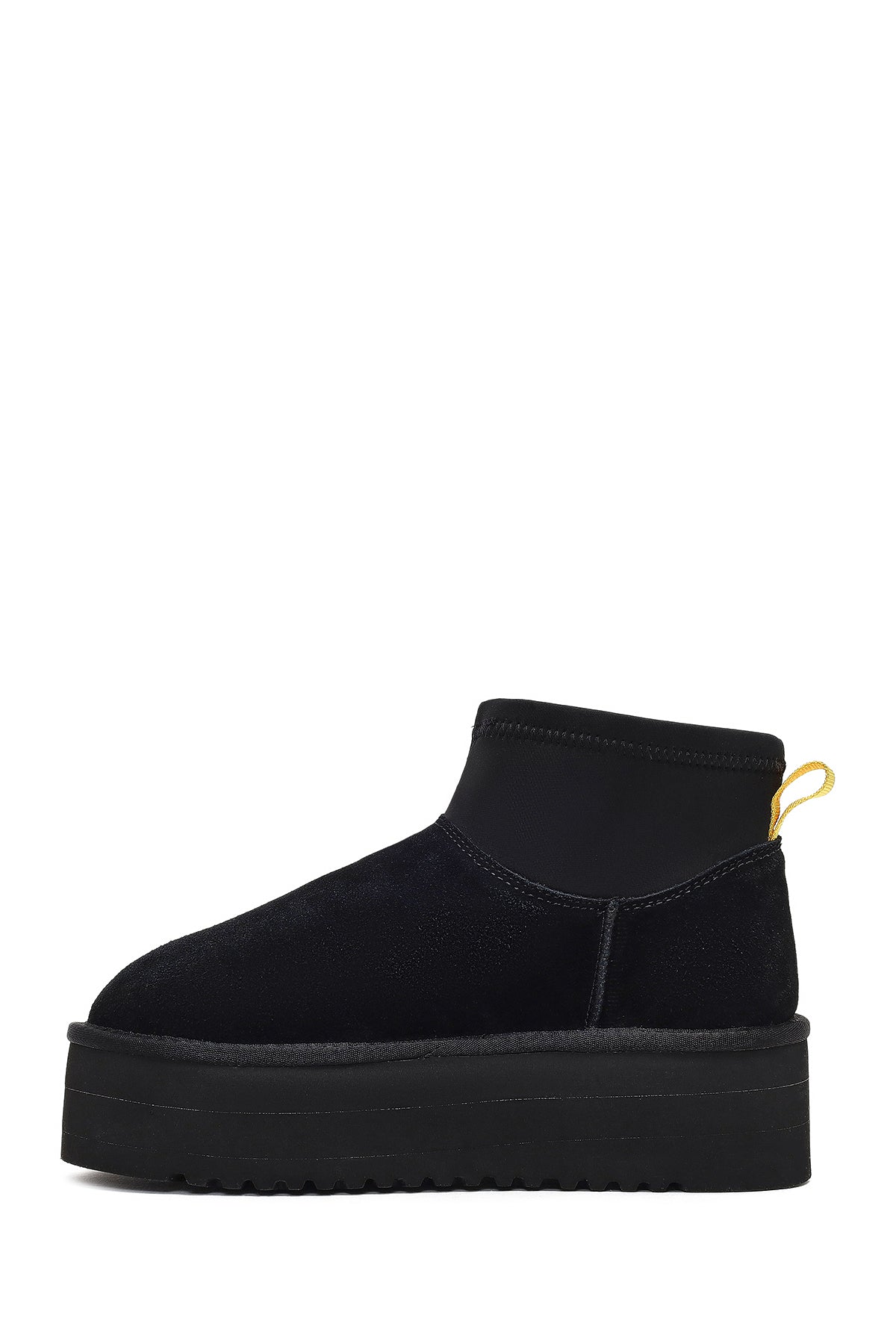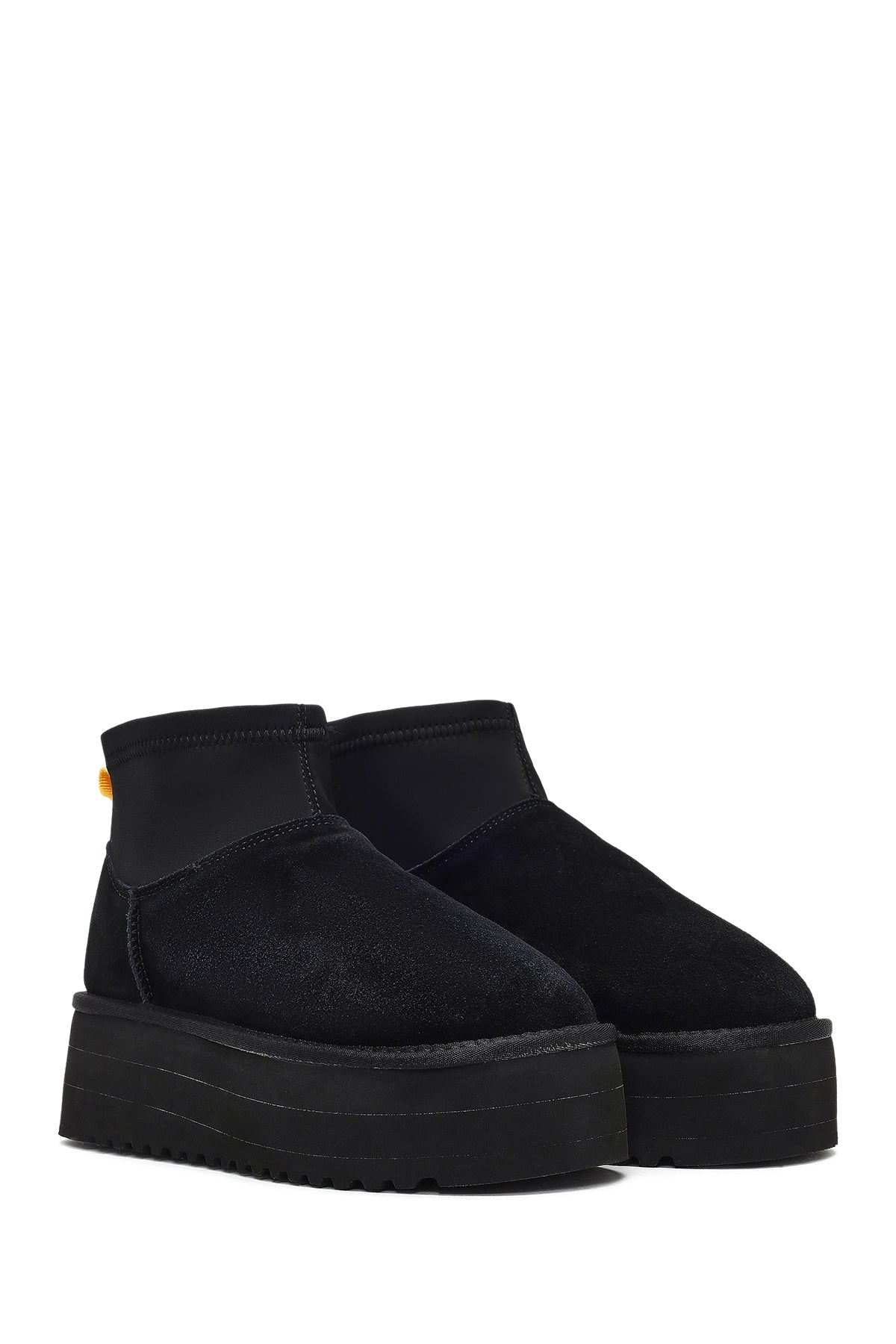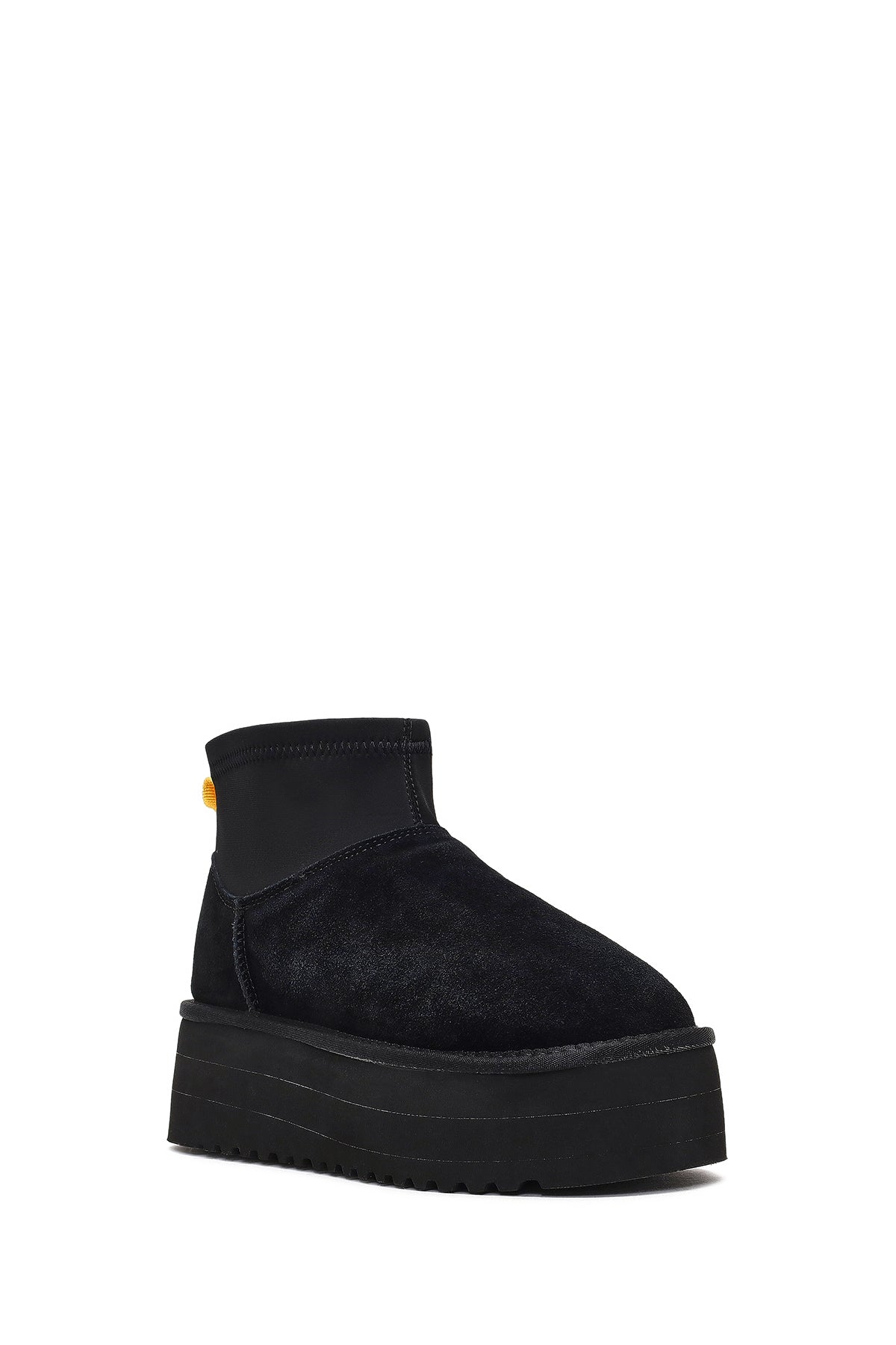 Kadın Siyah Kalın Tabanlı Süet Deri Teddy Bot