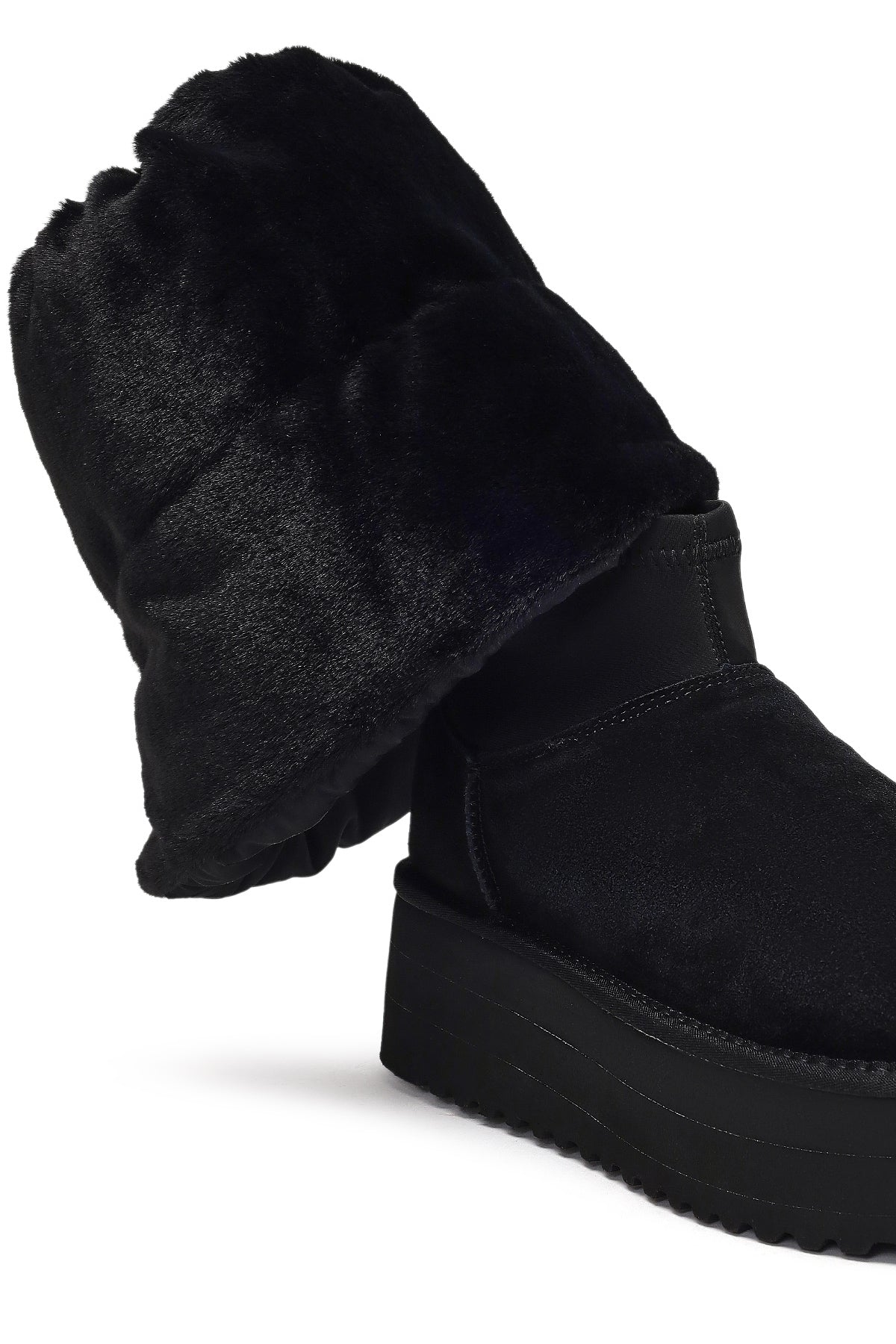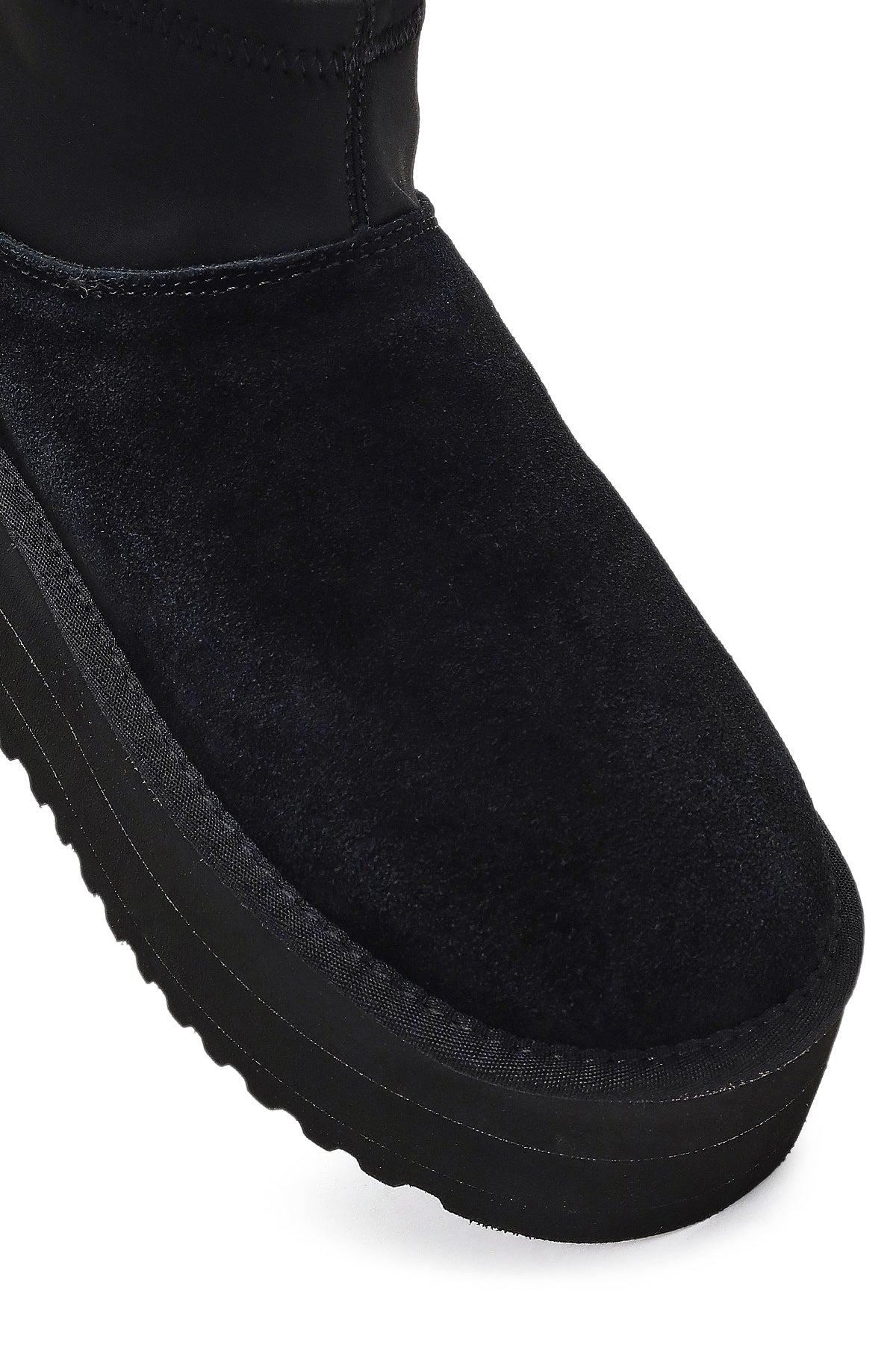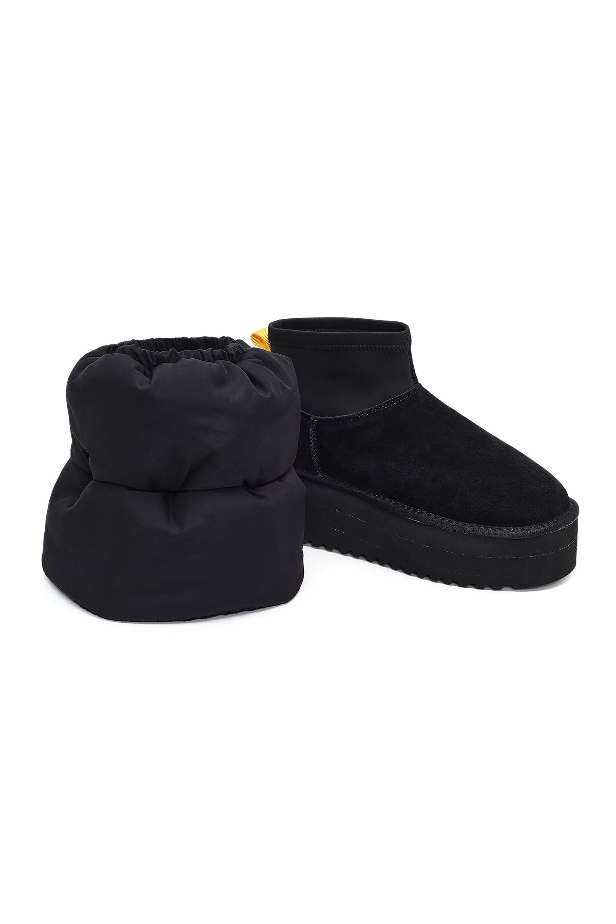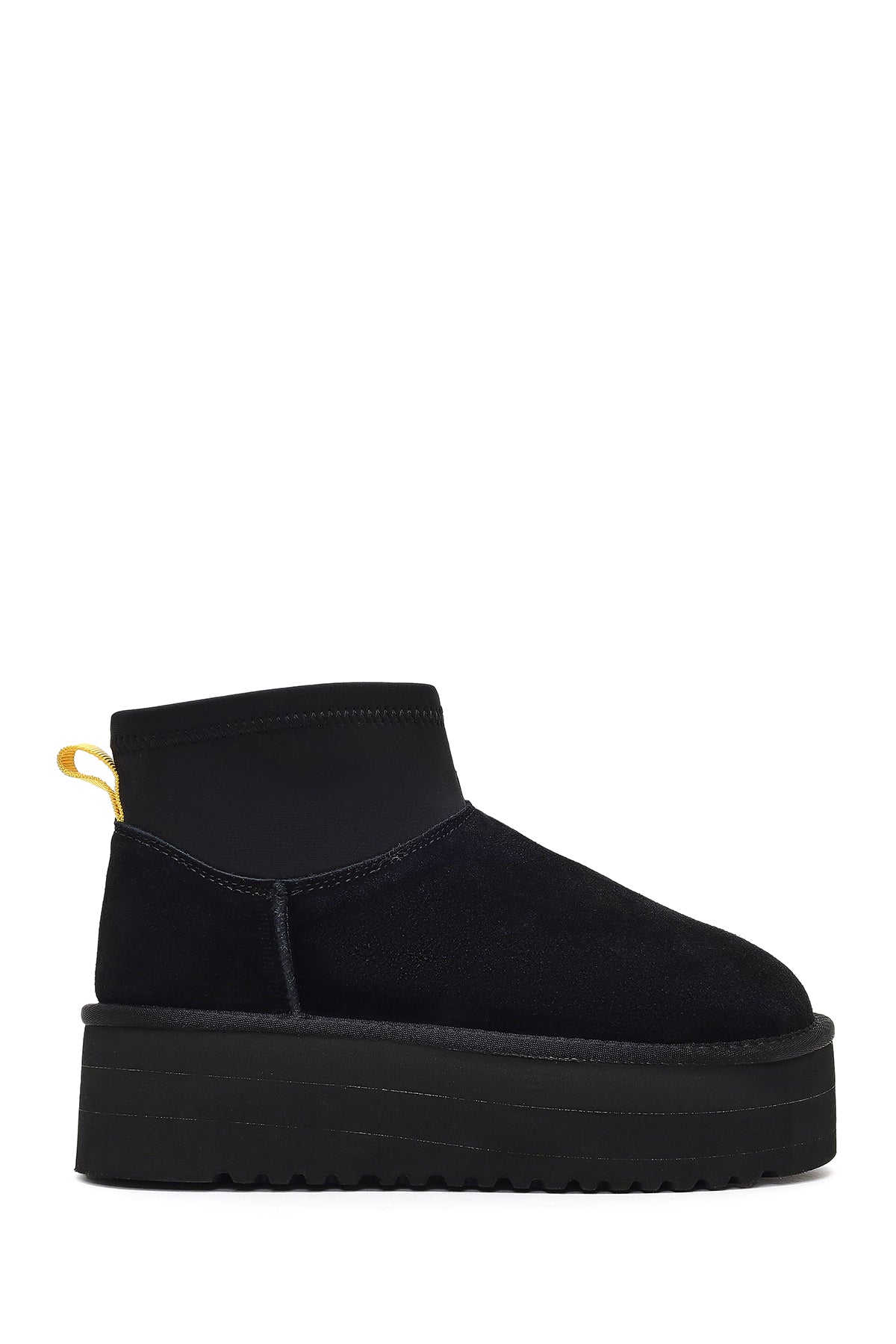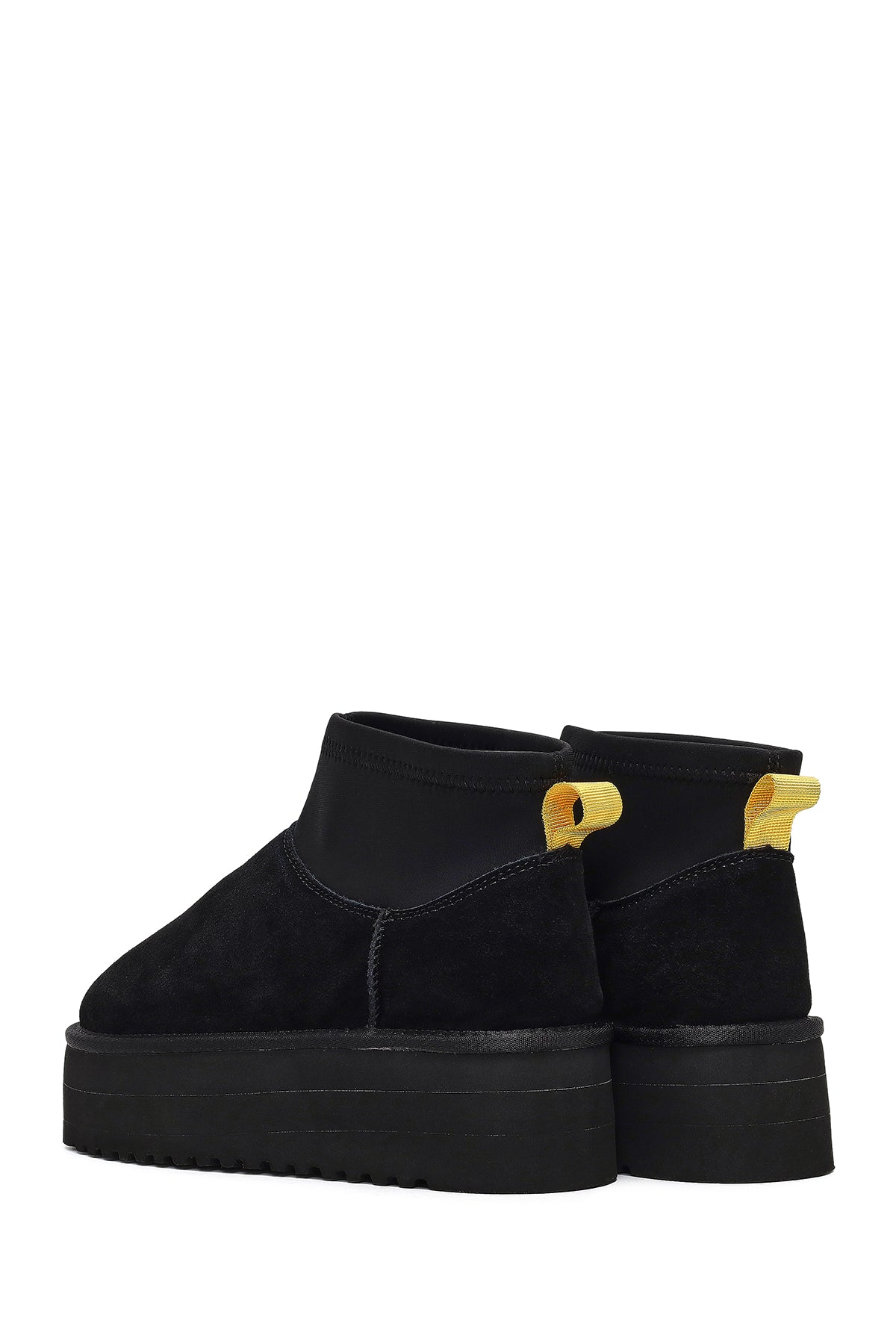 Kadın Siyah Kalın Tabanlı Süet Deri Teddy Bot