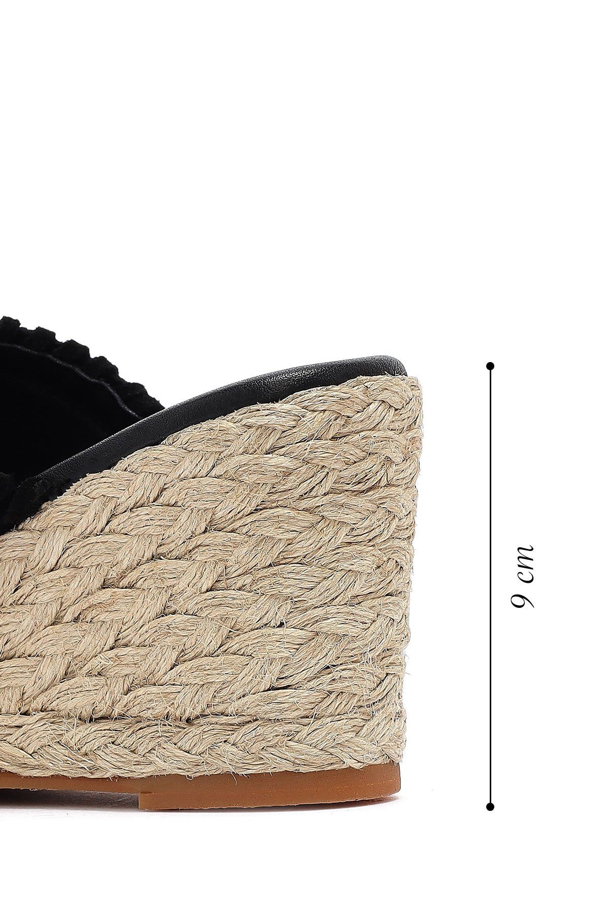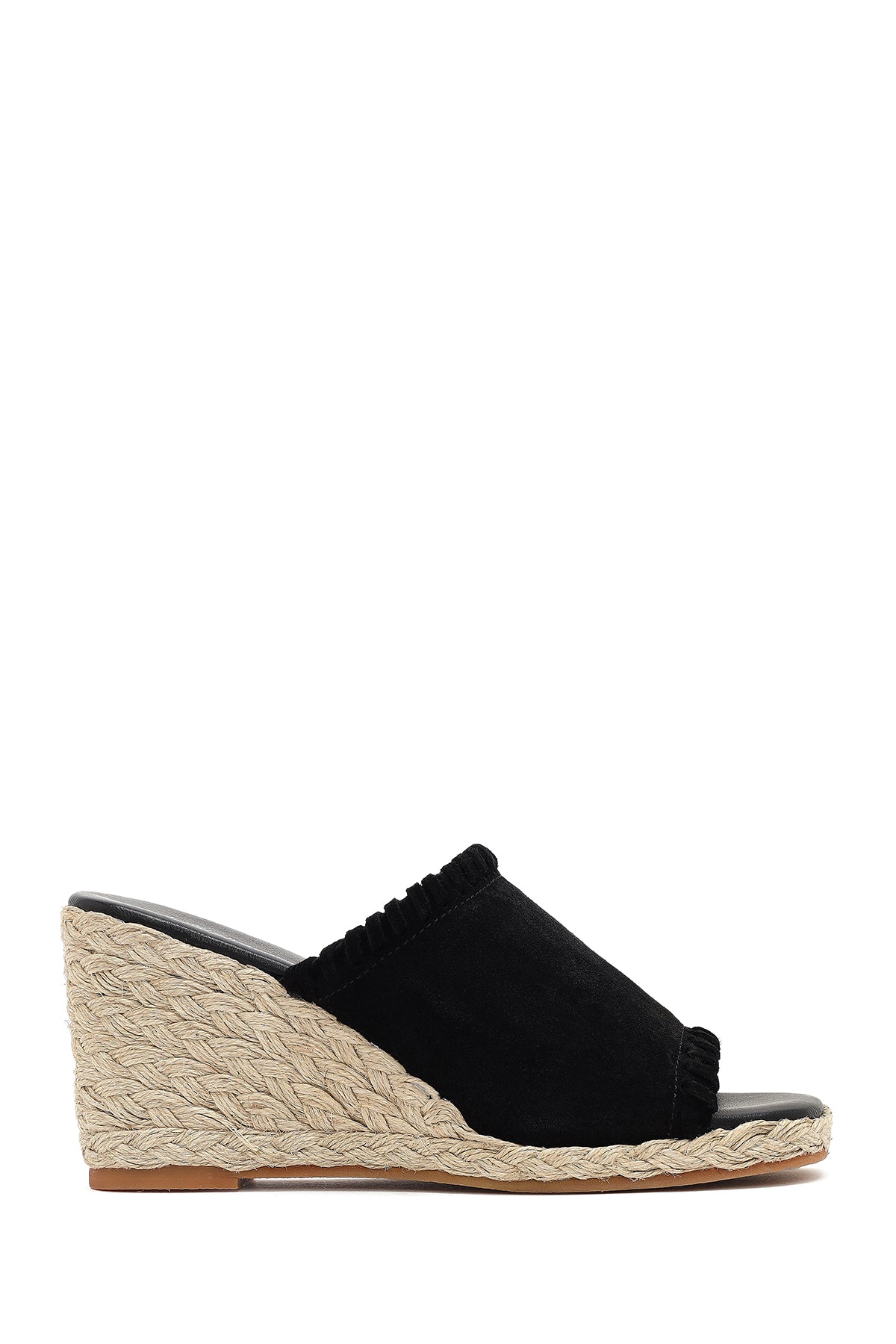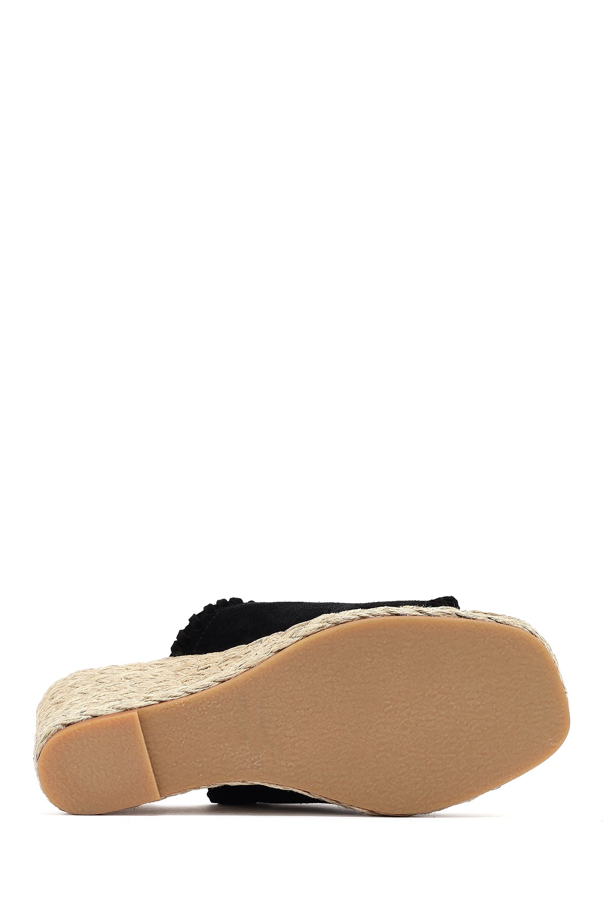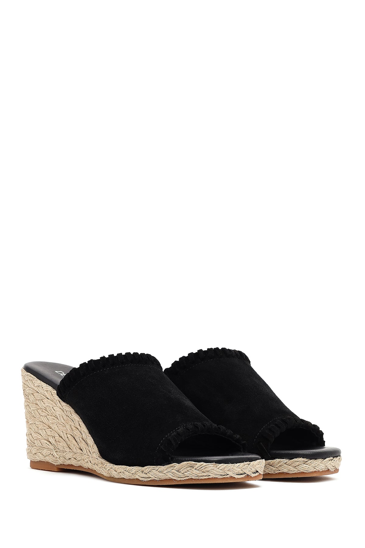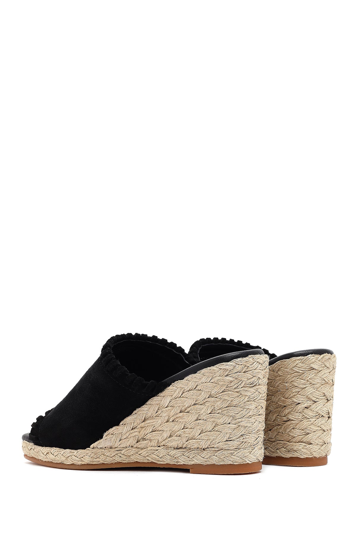 Kadın Siyah Dolgu Topuklu Süet Deri Espadril Terlik