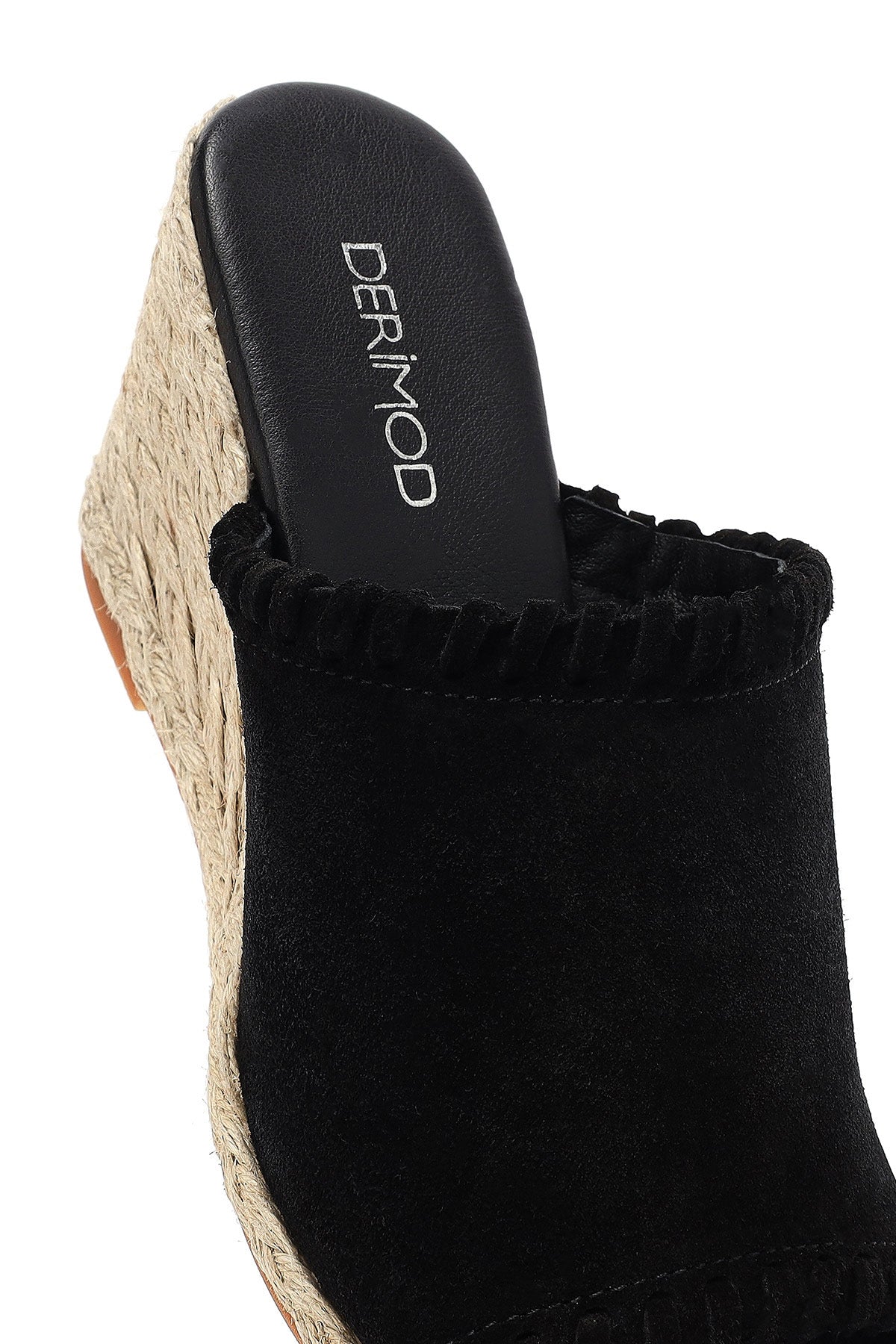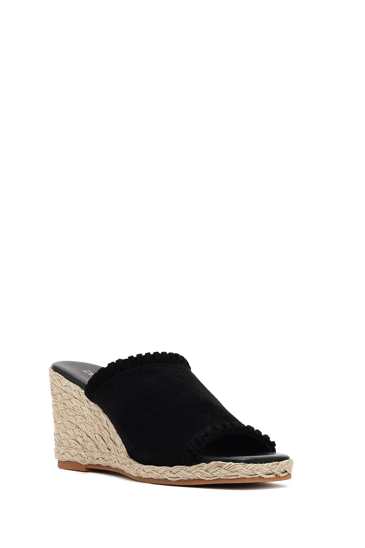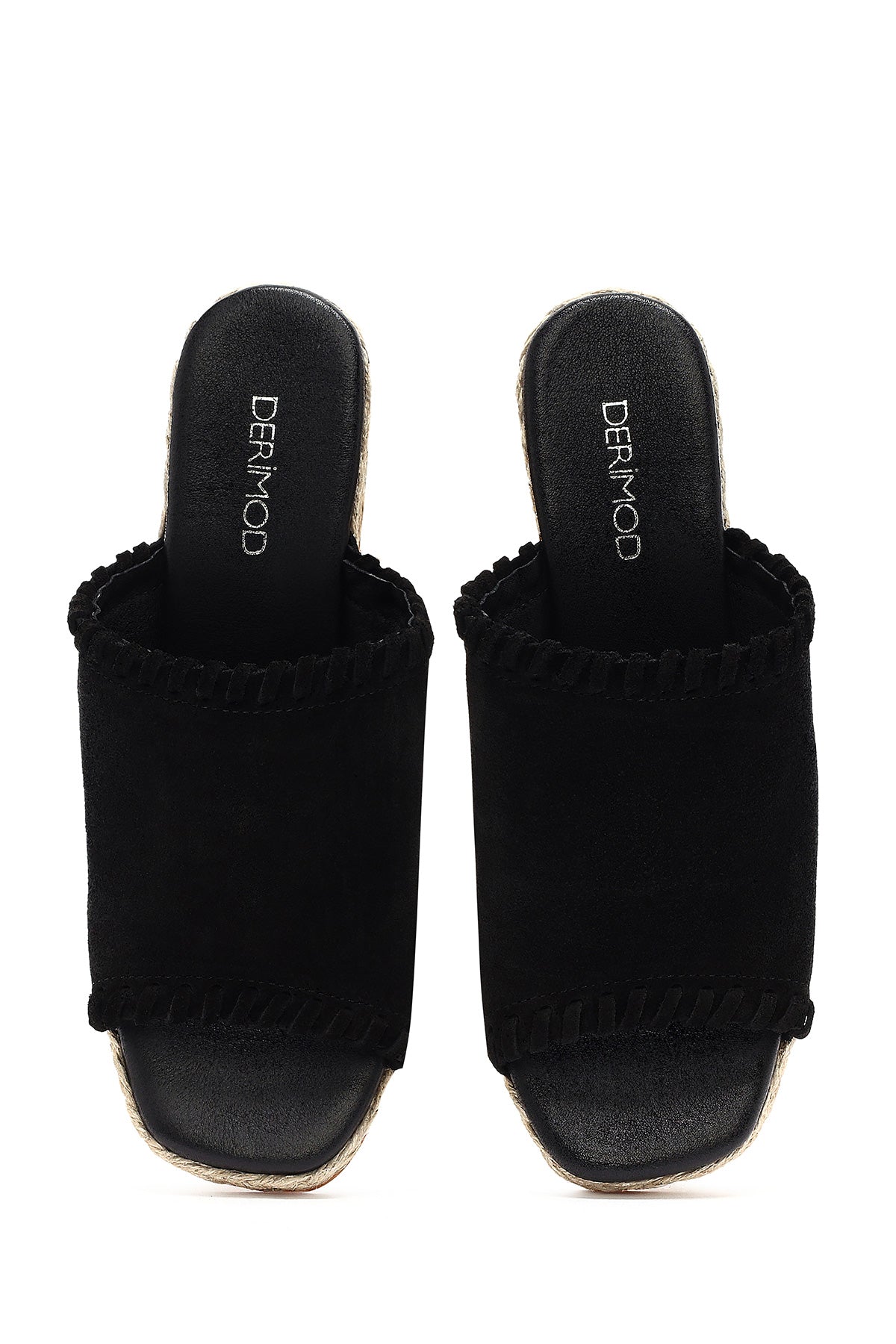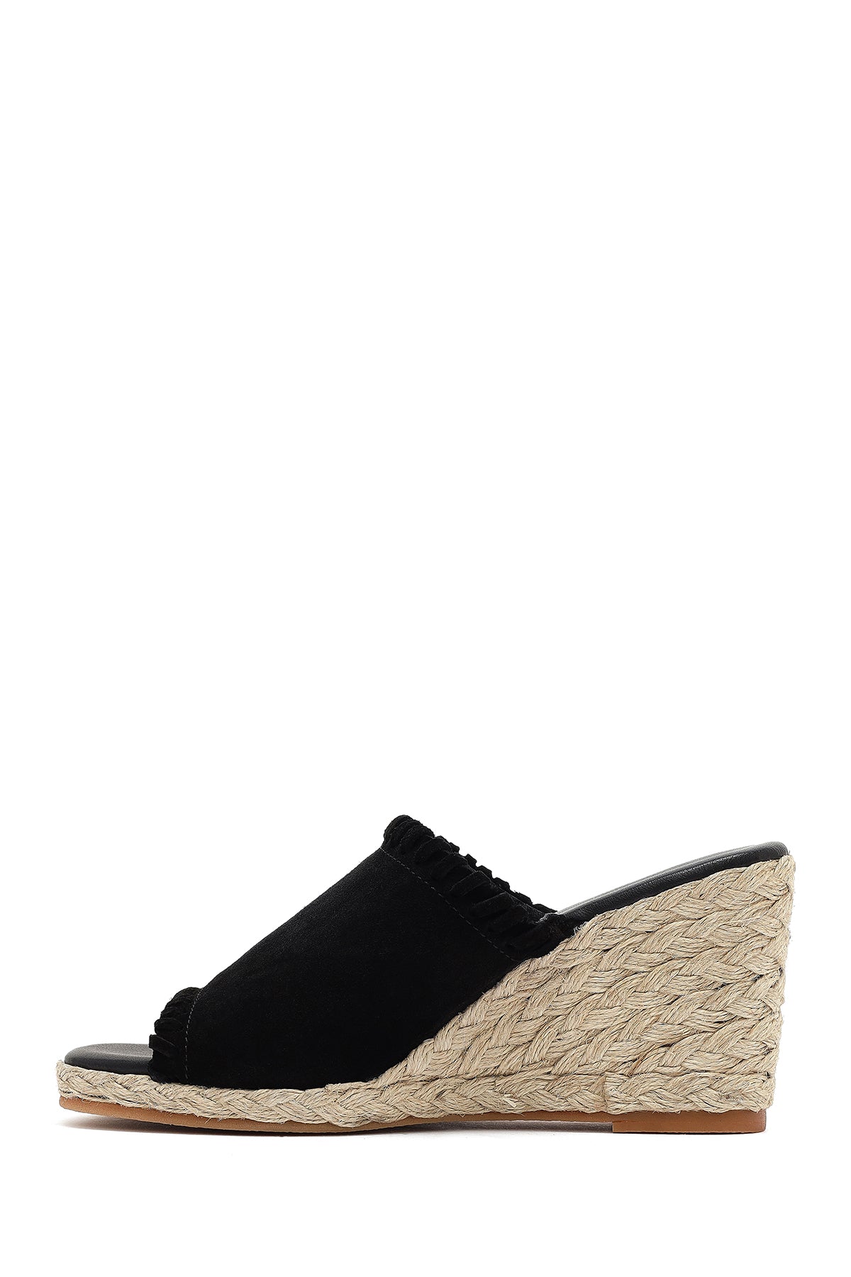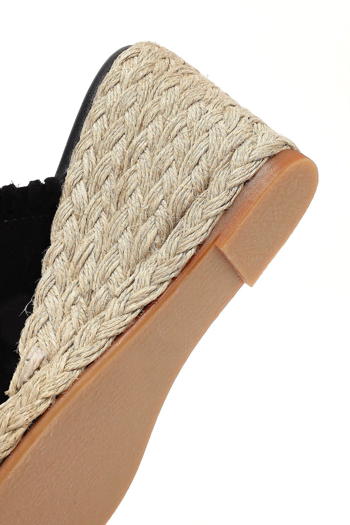 Kadın Siyah Dolgu Topuklu Süet Deri Espadril Terlik