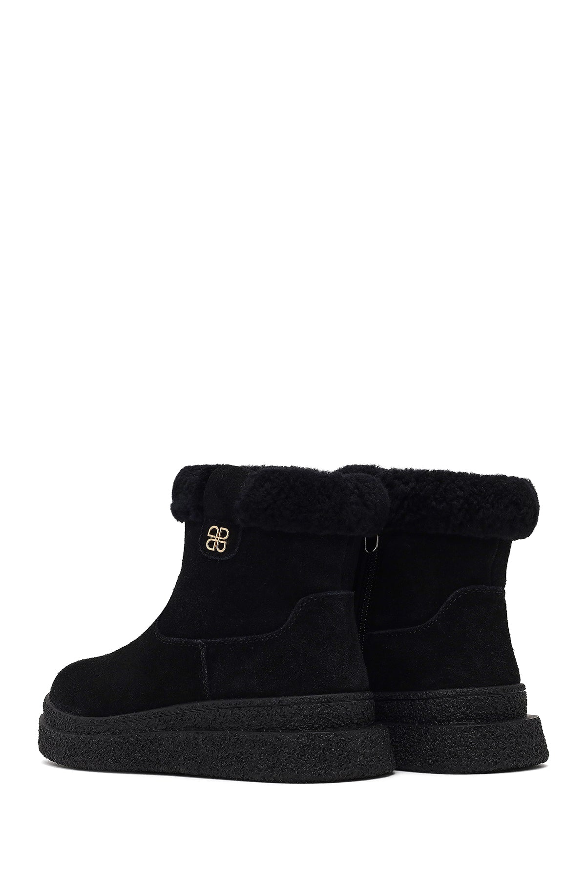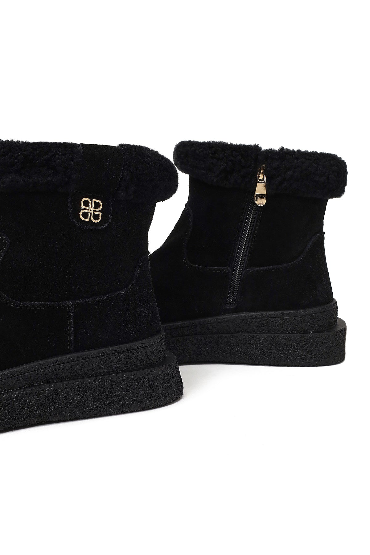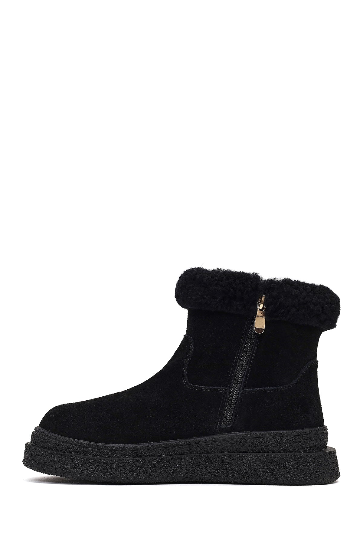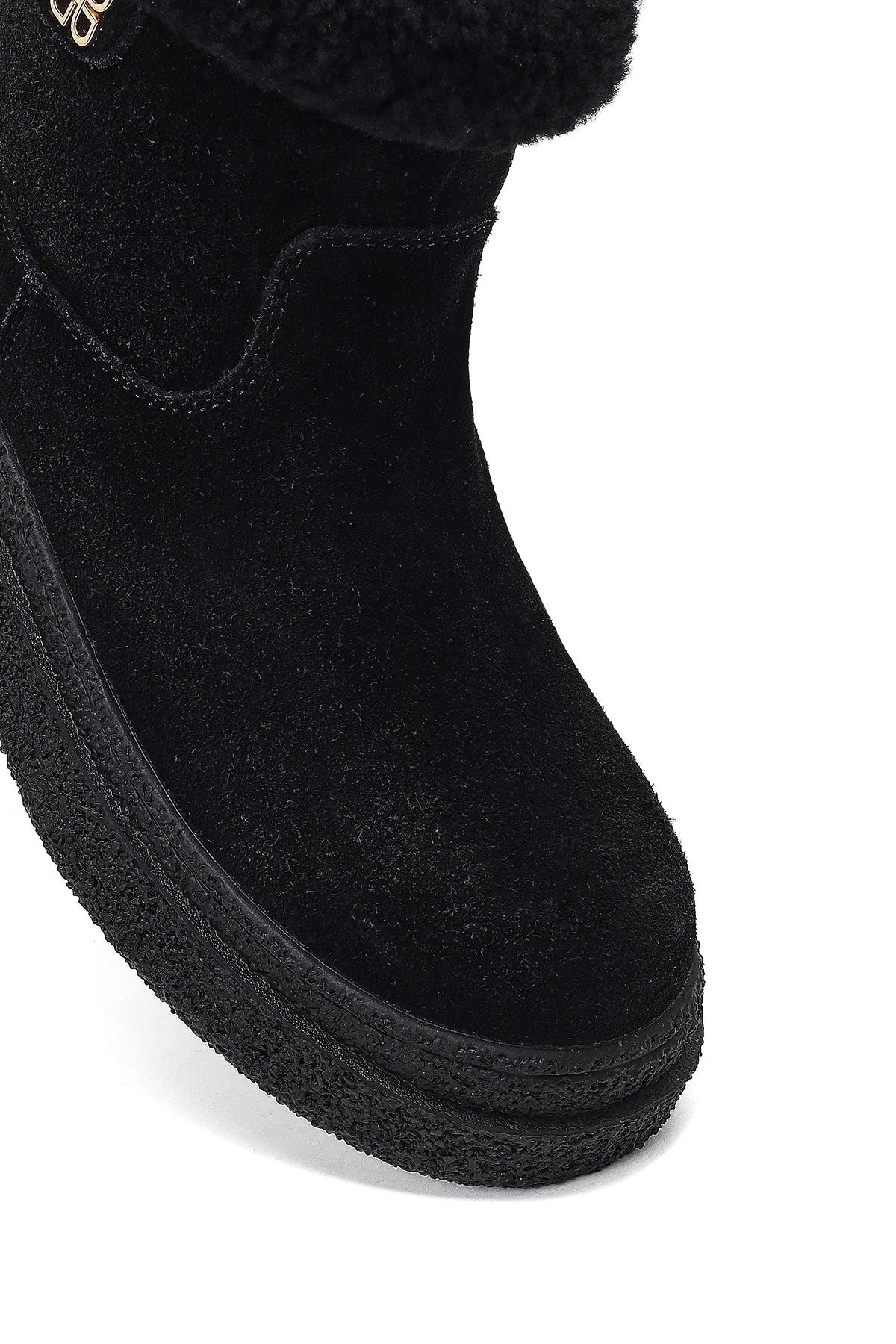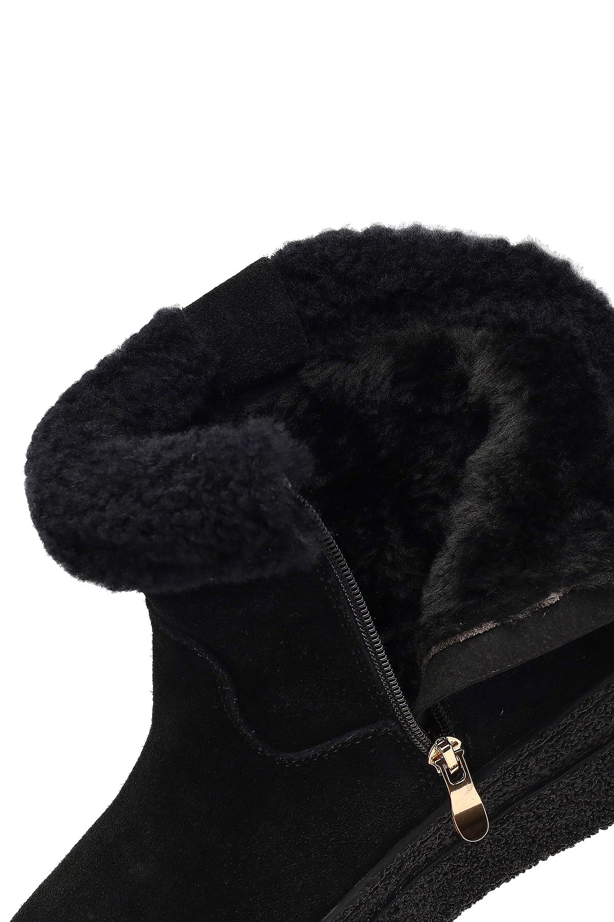 Kadın Siyah Fermuarlı Kalın Tabanlı Süet Deri Teddy Bot