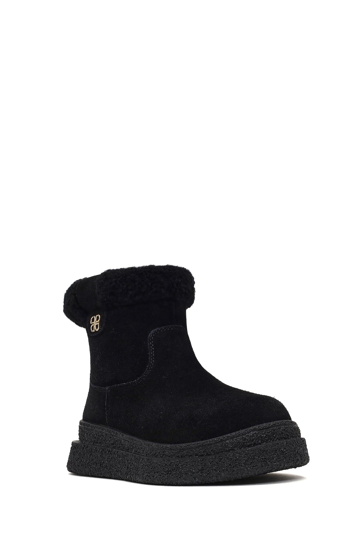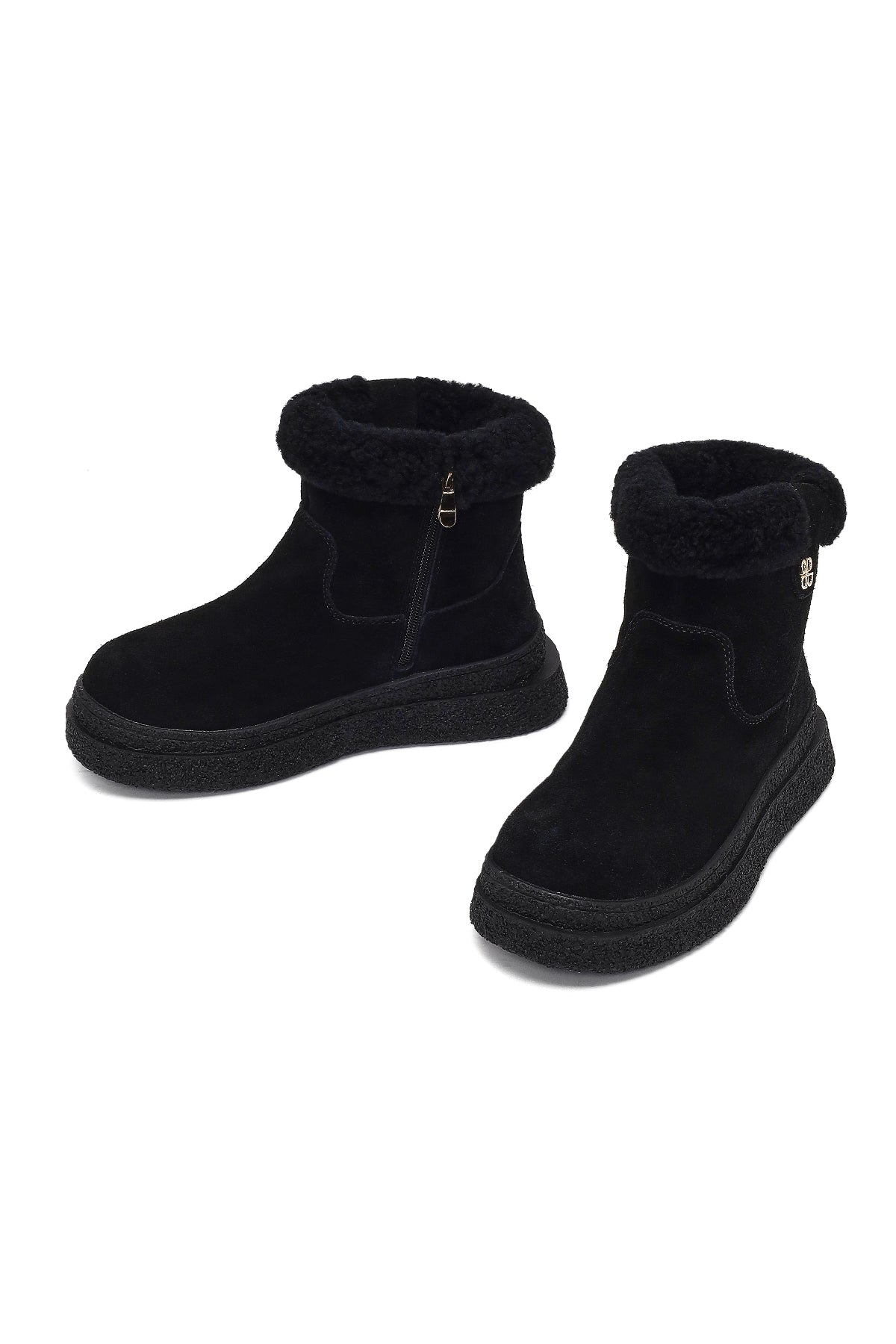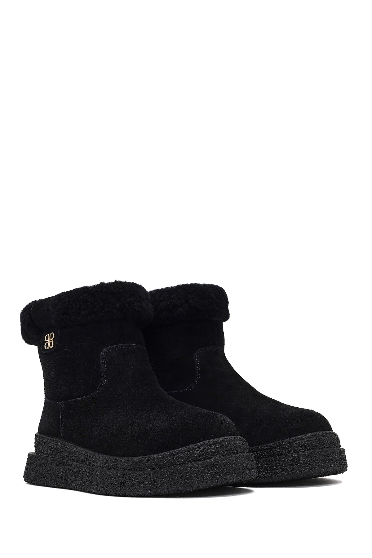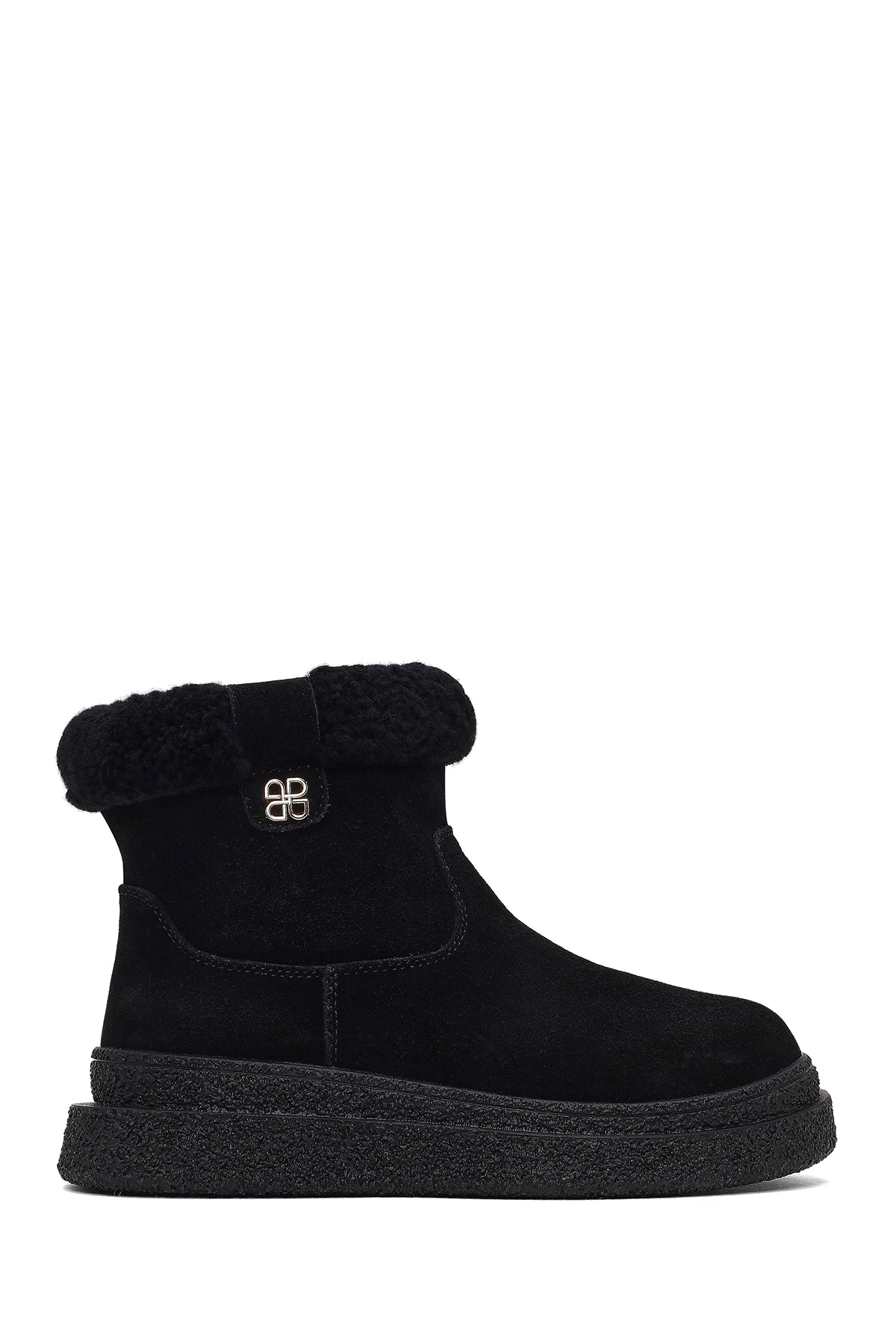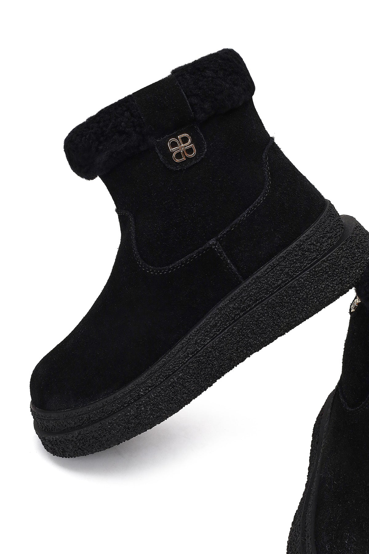 Kadın Siyah Fermuarlı Kalın Tabanlı Süet Deri Teddy Bot