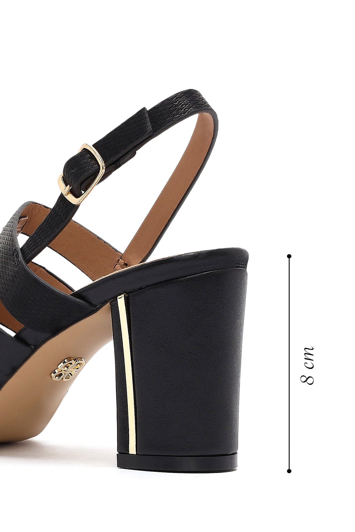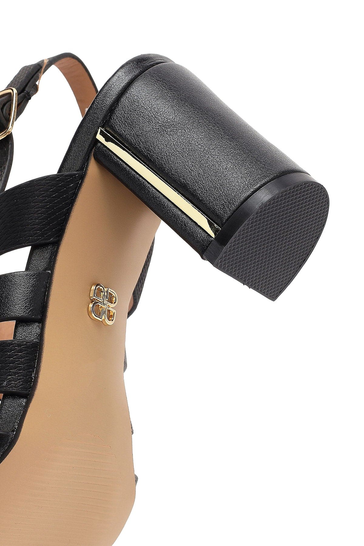 Kadın Siyah Bilekten Tokalı Kalın Topuklu Sandalet