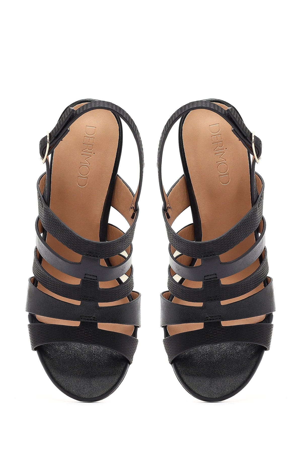 صندل زنانه مشکی پاشنهضخیم بنددار دری مد