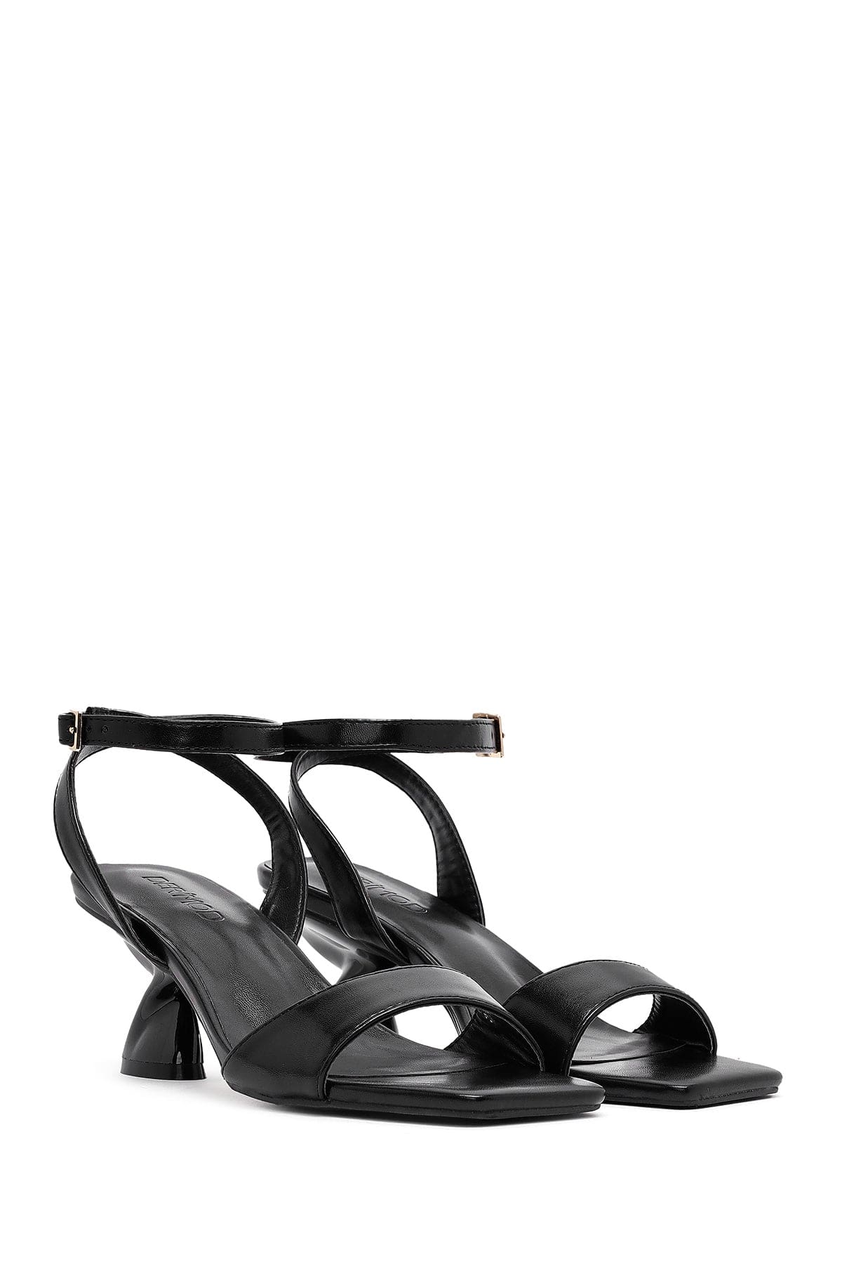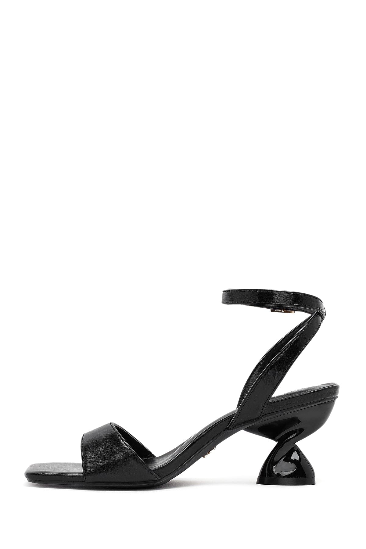 Kadın Siyah Bilekten Tokalı Kalın Topuklu Sandalet